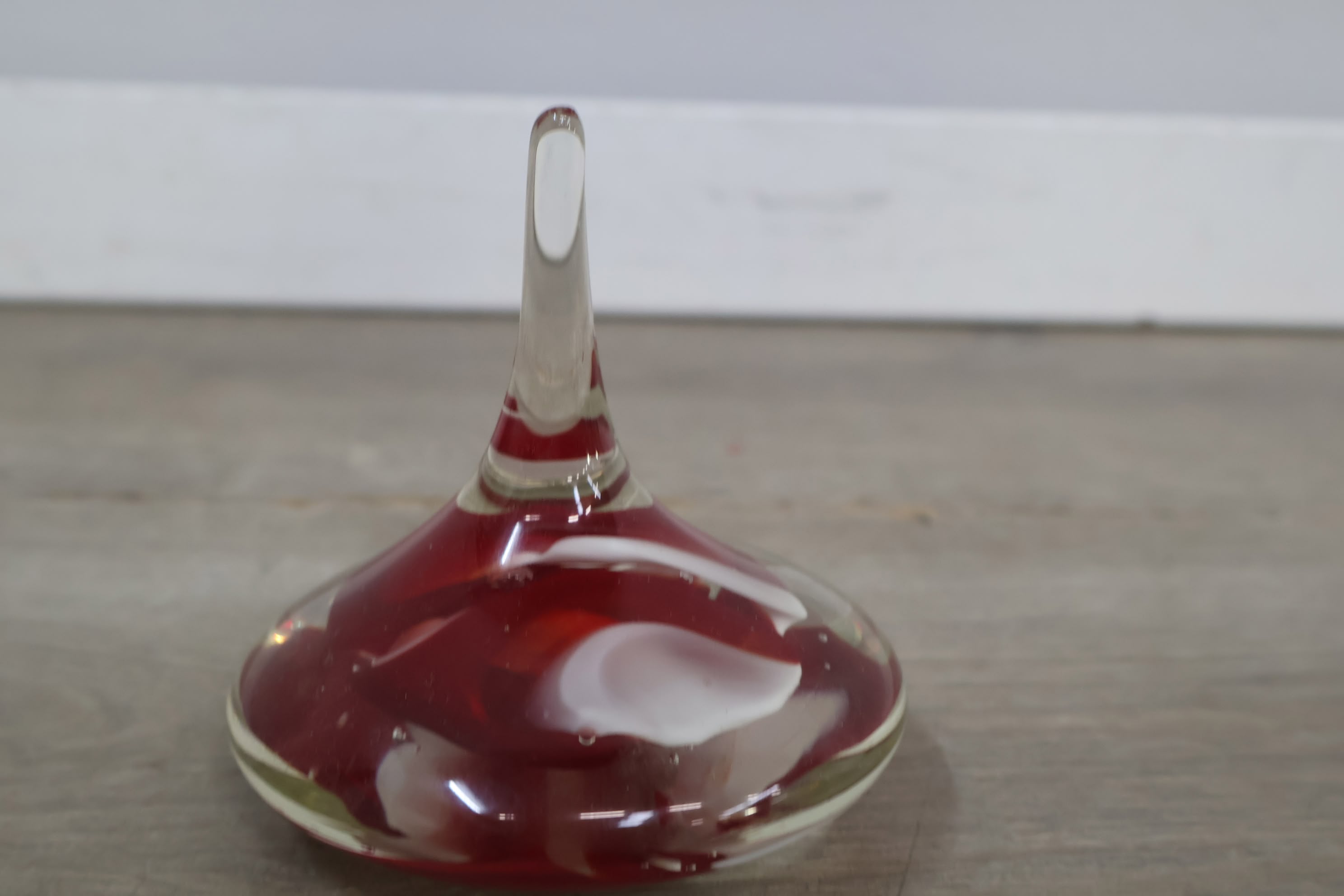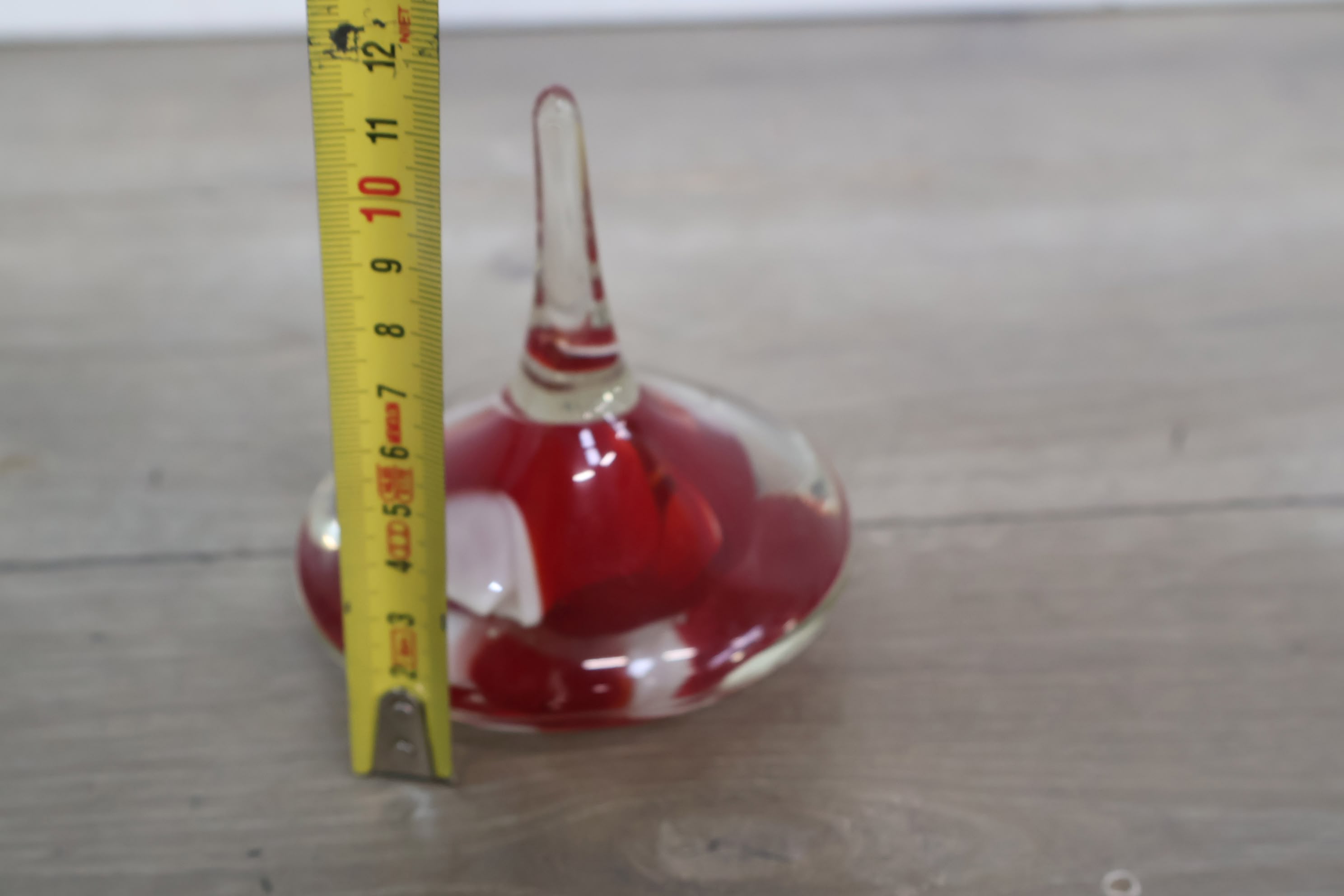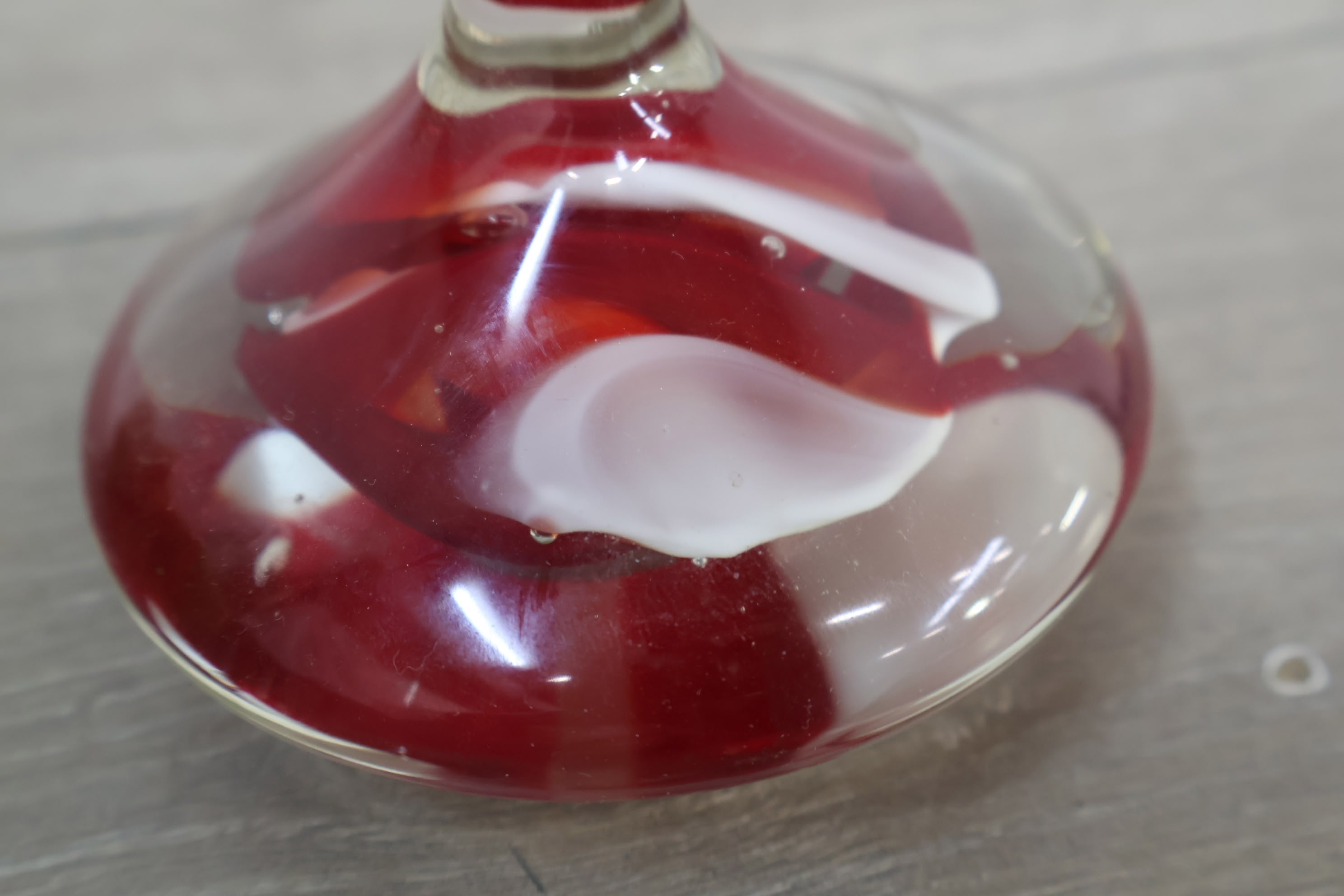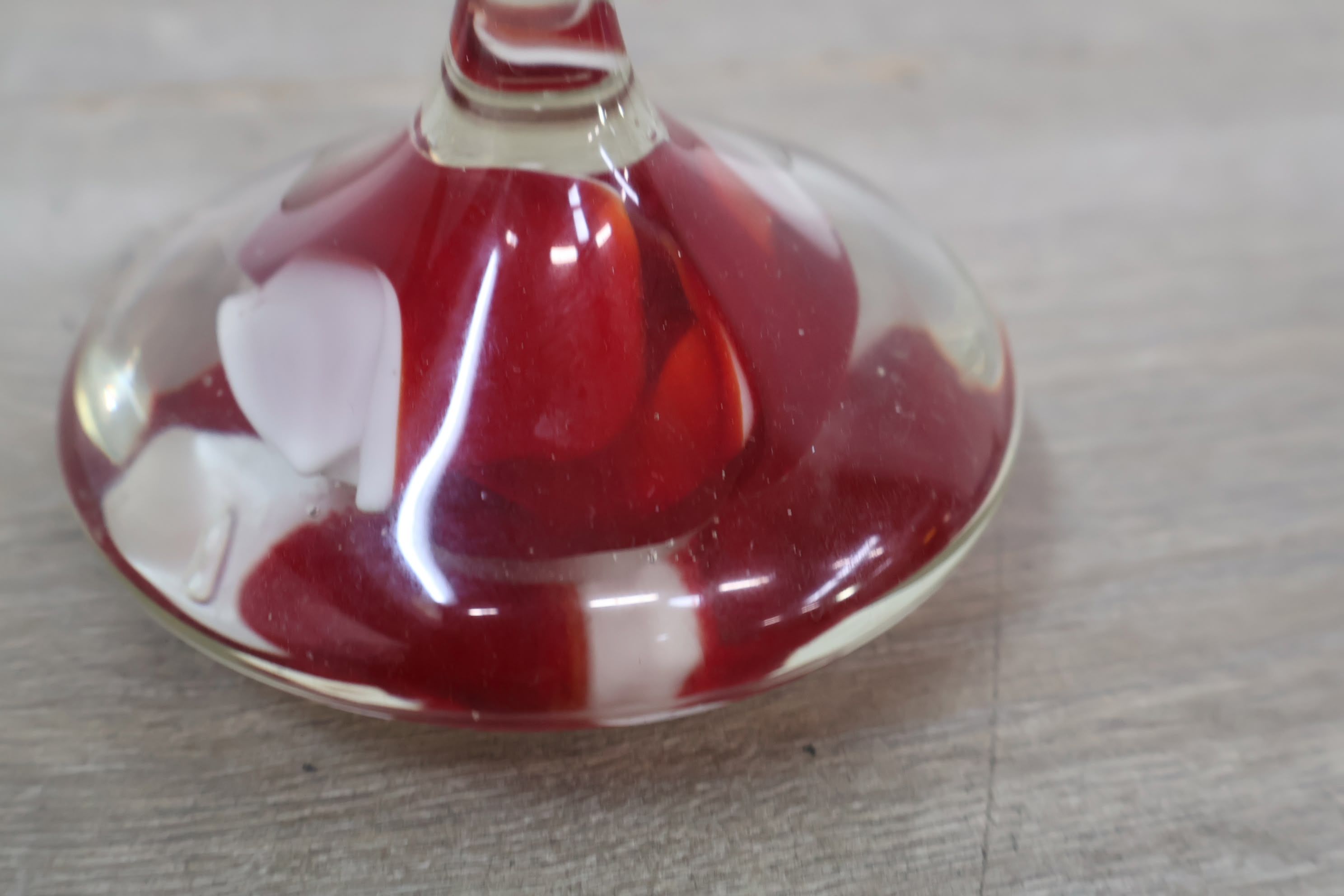 Vintage Glazen Presse-Papier met Rood/Witte Tinten