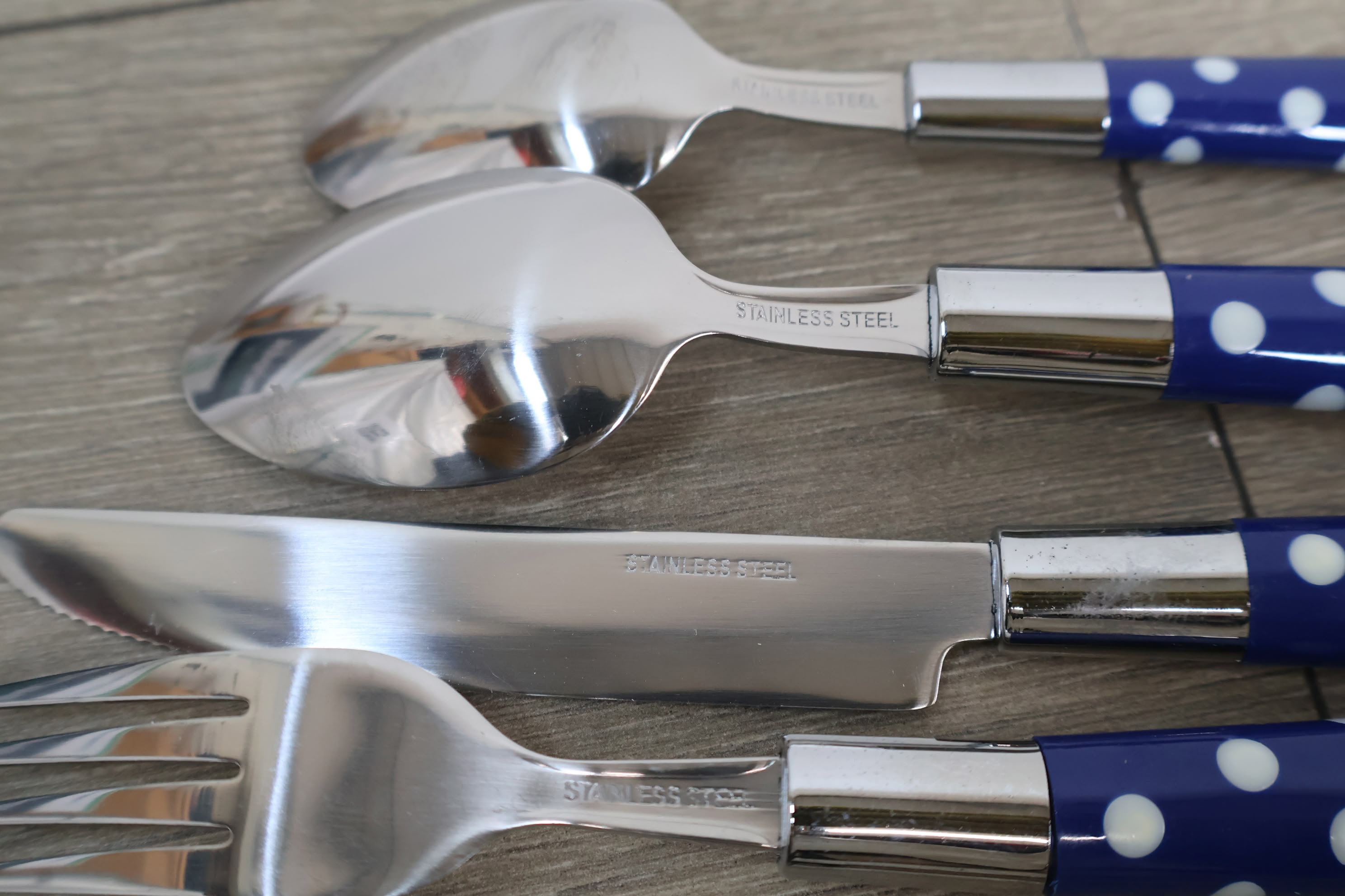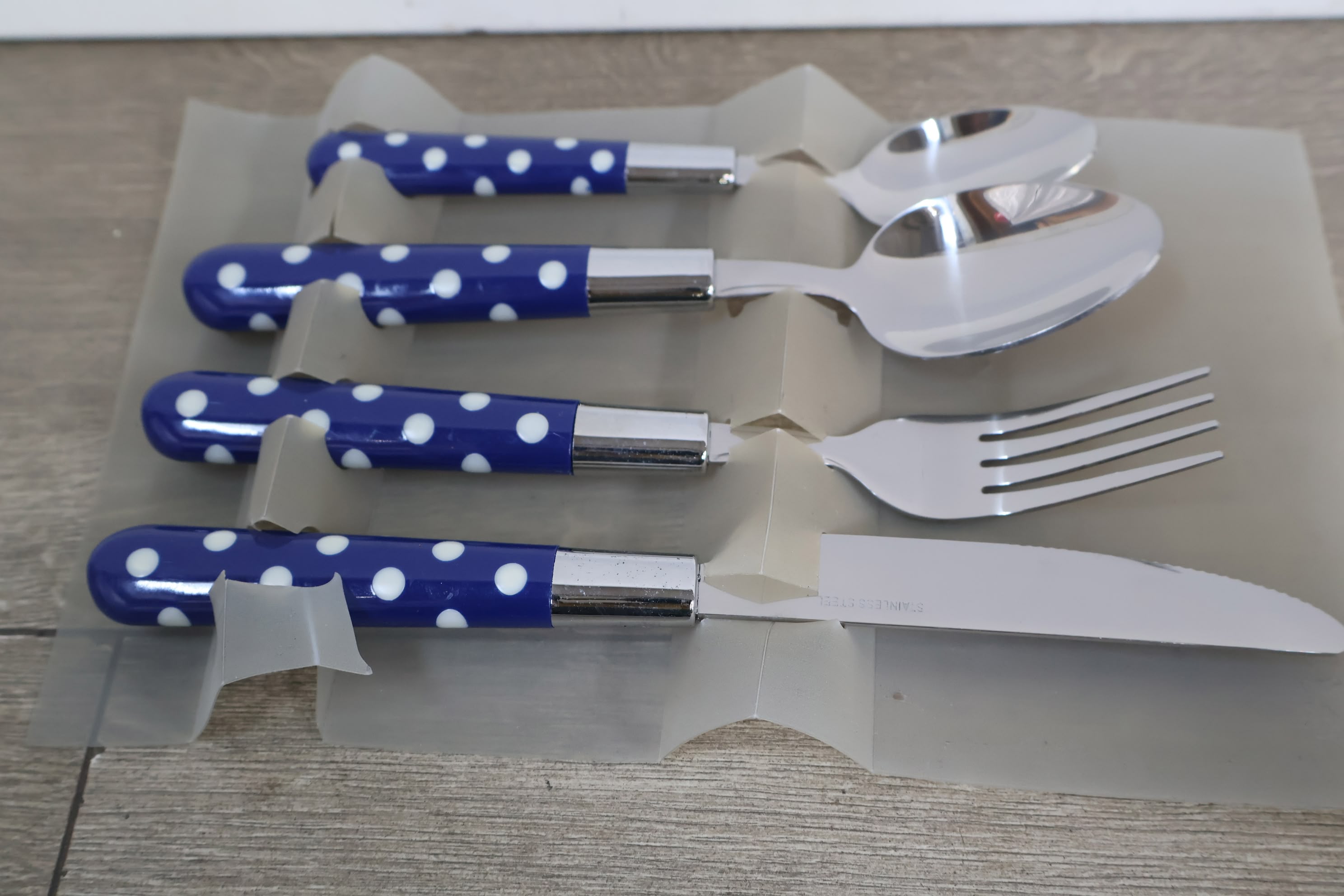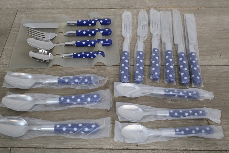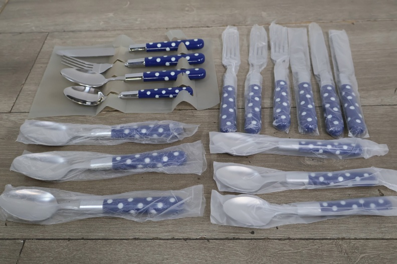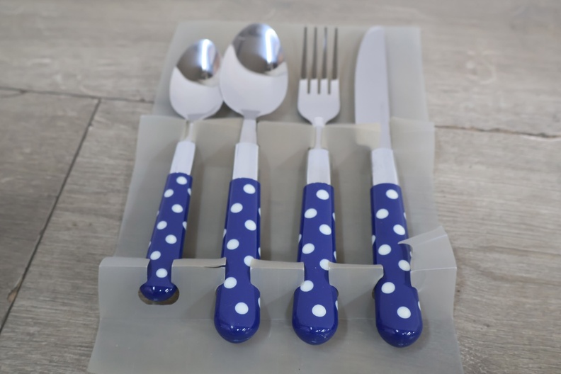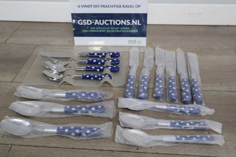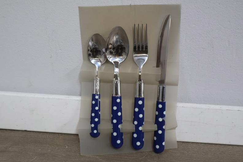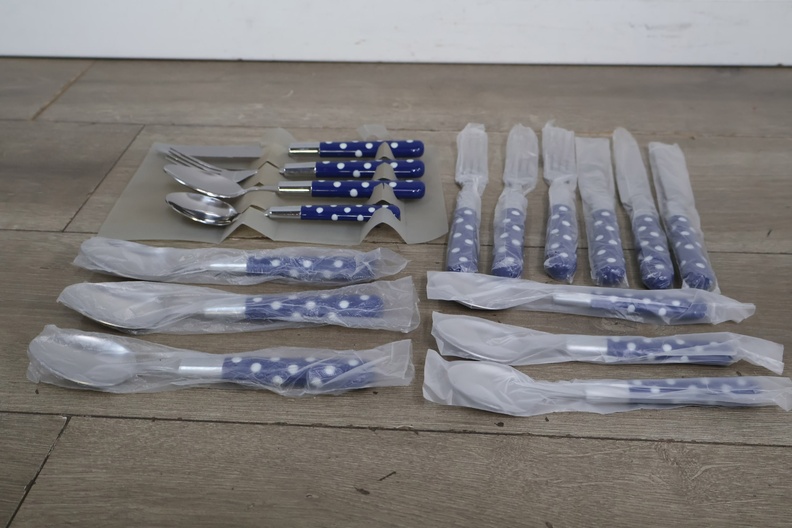 16-Delig Roestvrijstalen Bestek-set met Blauw/Wit Handvat