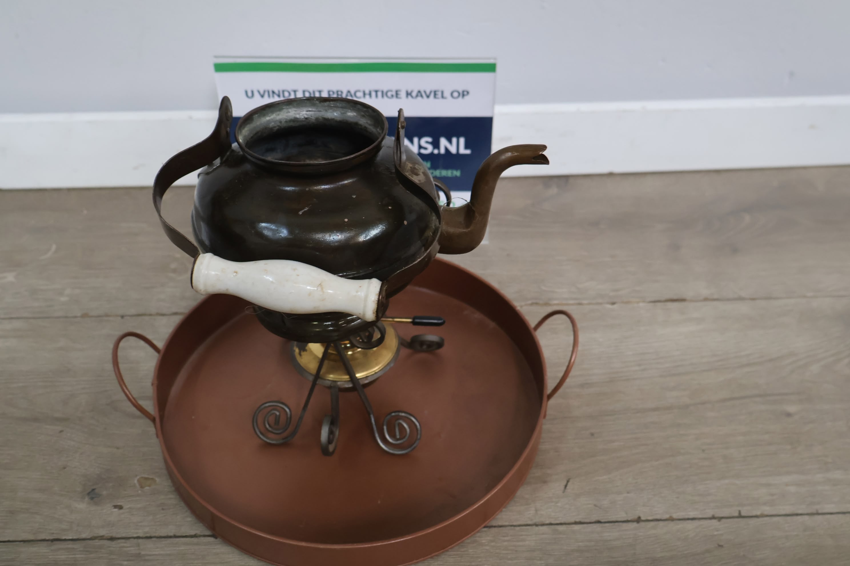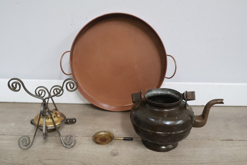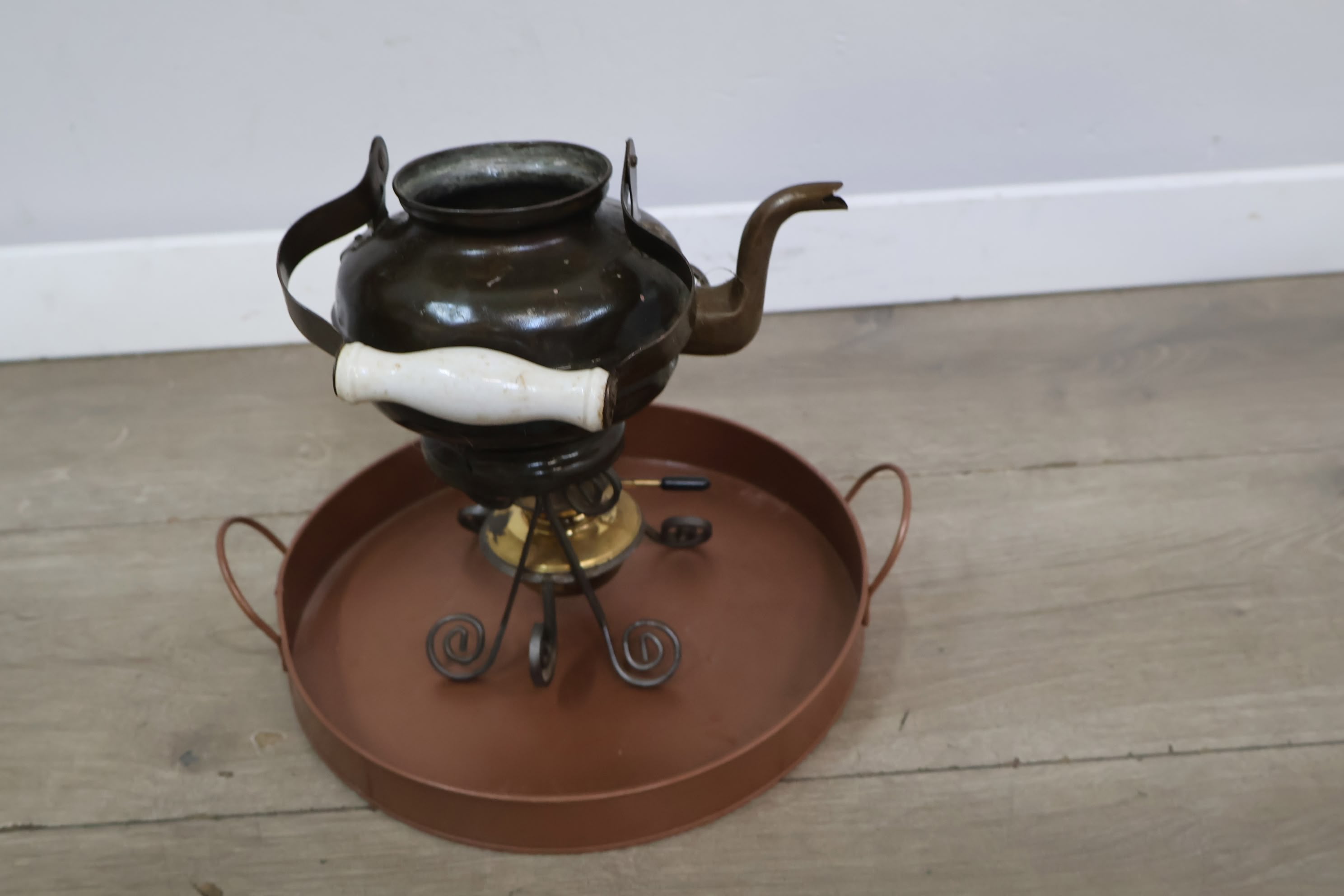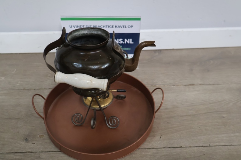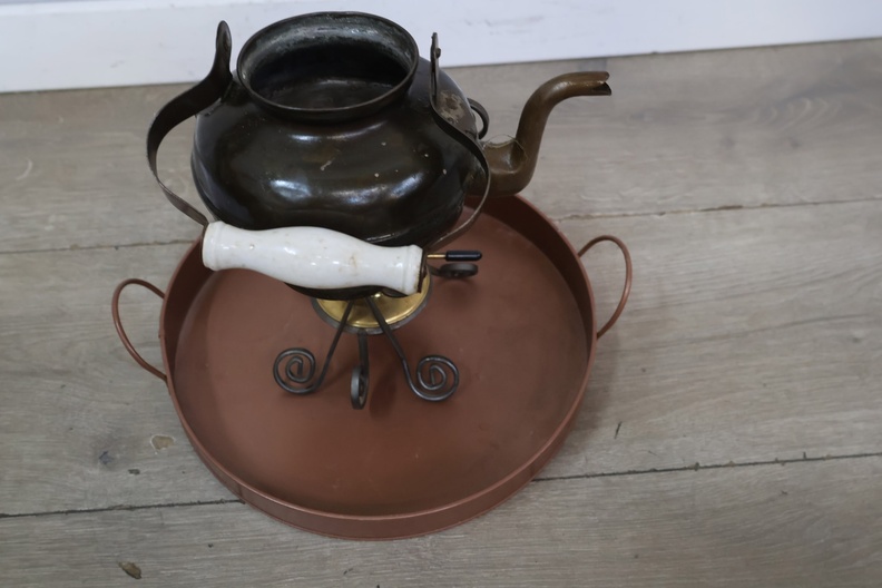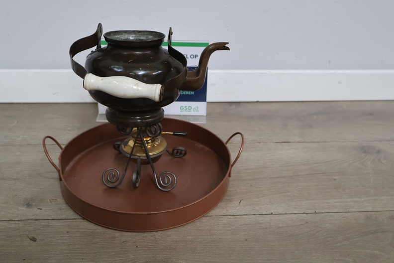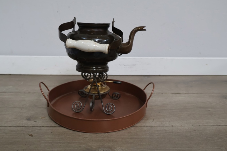 Brocante Theepot met Brander & Dienblad