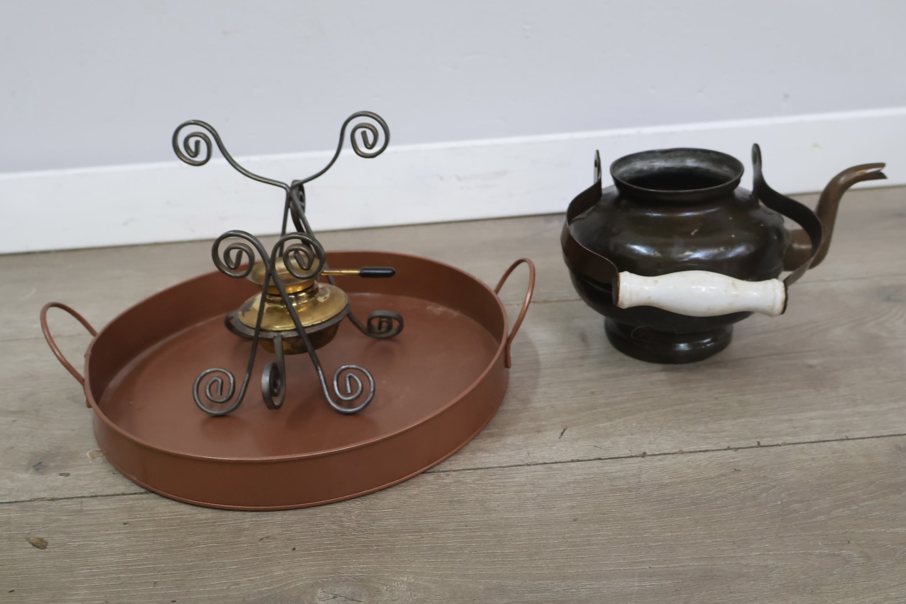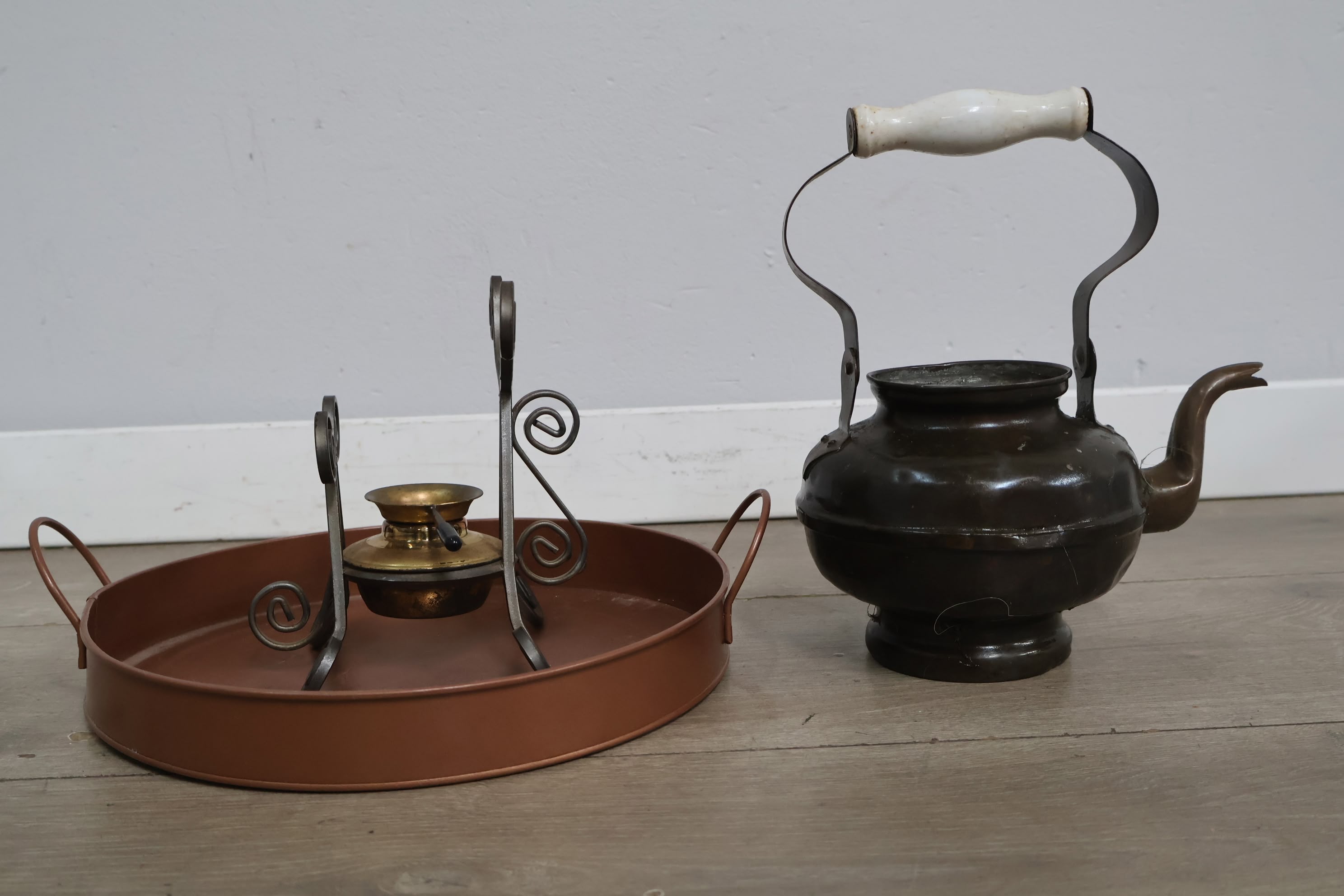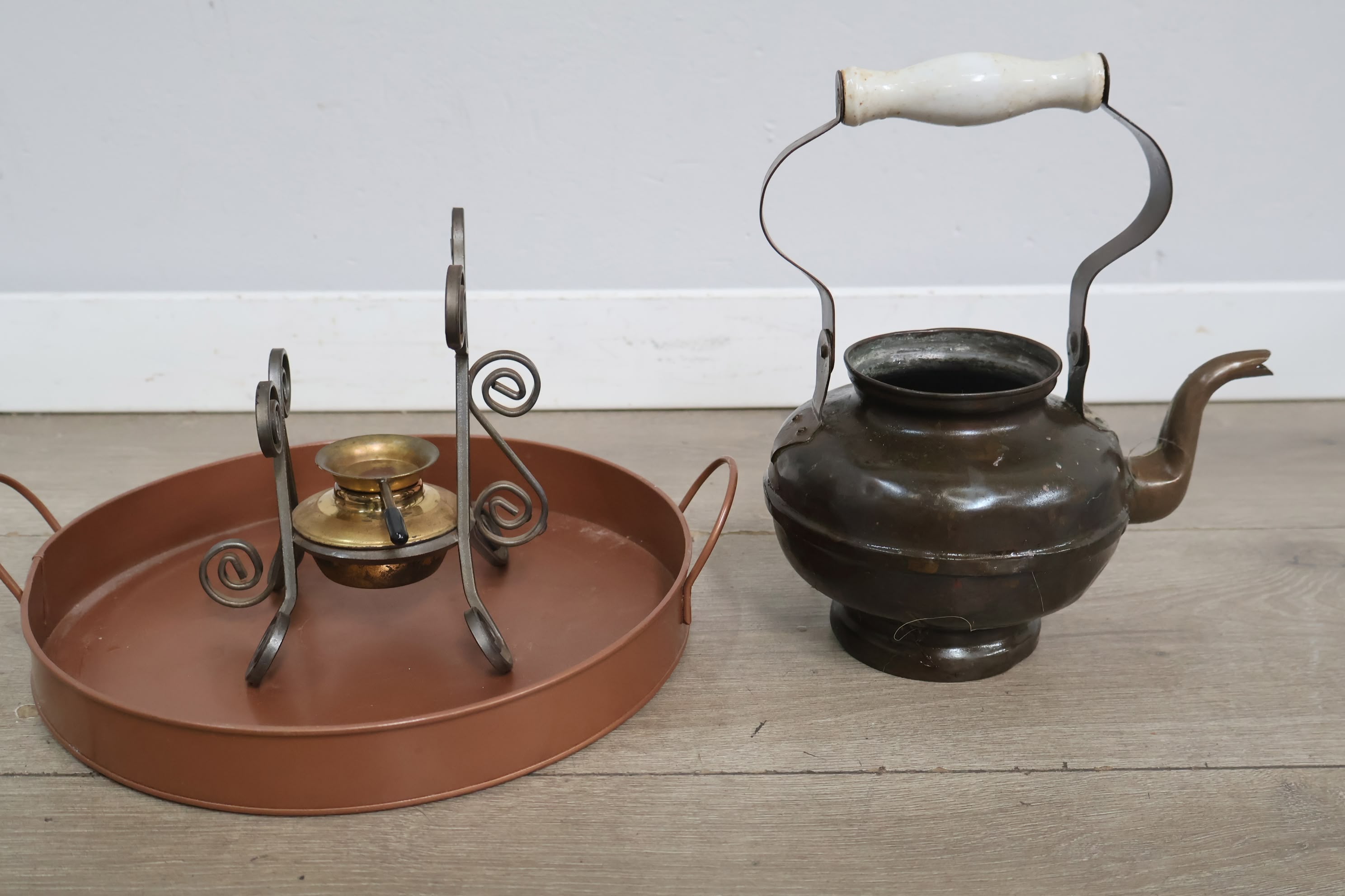 Brocante Theepot met Brander & Dienblad
