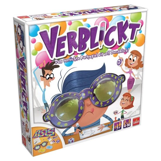 Bei diesem Partyspiel blickt keiner richtig durch: Die Spieler tragen hier eine verrückte Brille, die den Blick total verzerrt. Nun müssen sie Begriffe zeichnen die Motive unfall- und lachfrei aufs Papier zu bringen, ist dabei fast unmöglich. Ein Würfelwurf entscheidet, welcher Begriff auf der Aufgabenkarte gemalt wird. Die Karte zeigt auch, welche der drei Brillenstärken der Spieler beim Zeichnen tragen muss. Grün, Gelb oder Blau mit jeder Farbe steigt der Verzerrungsgrad..