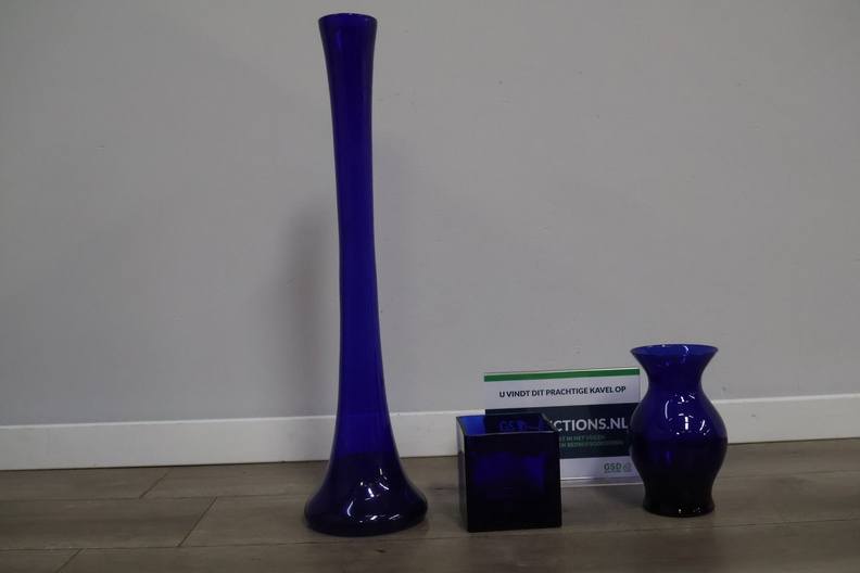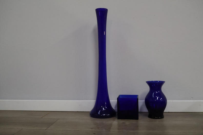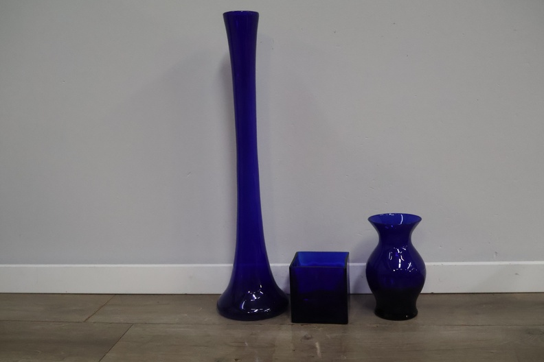 Kobaltblauwe glazen vazen 3 stuks'