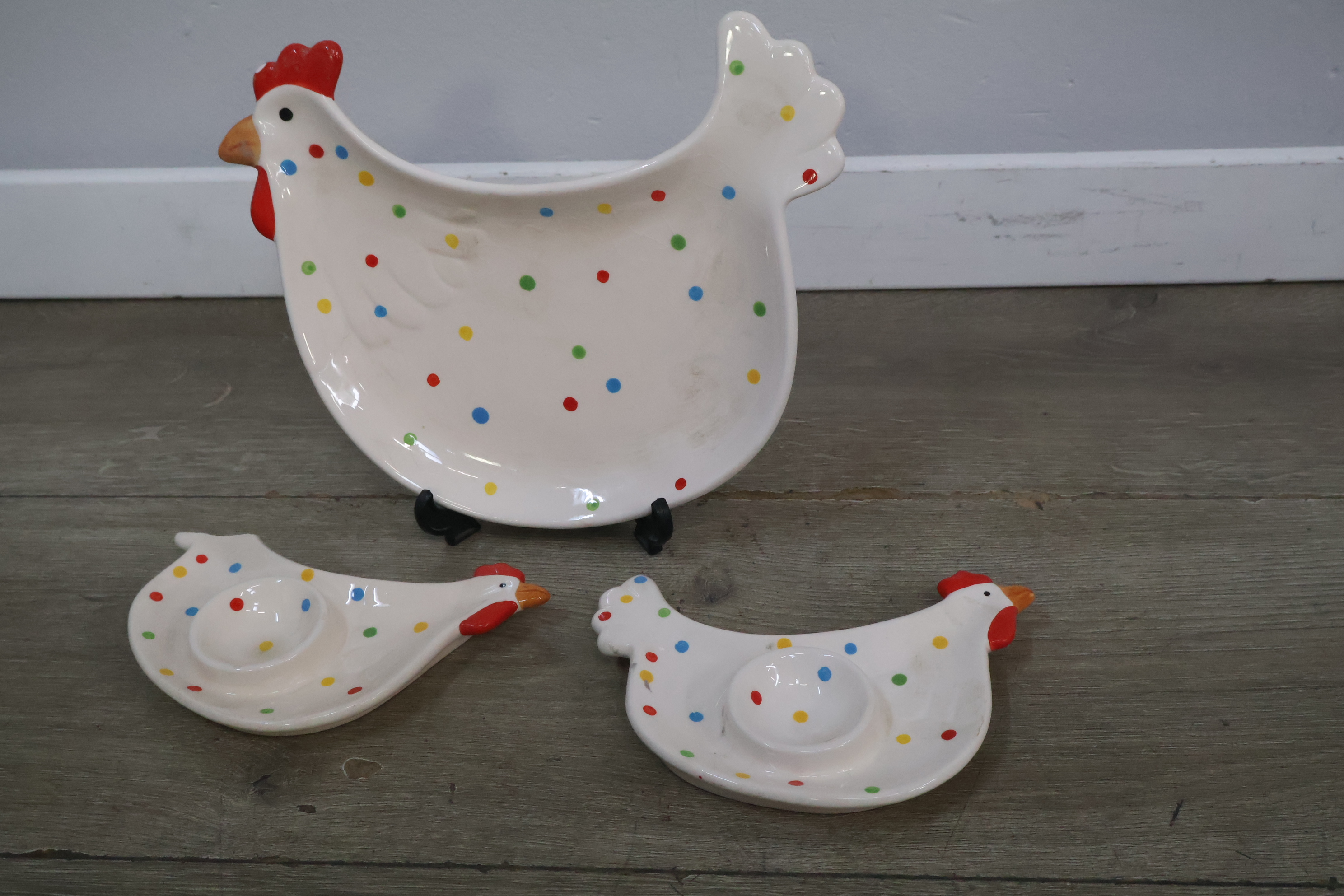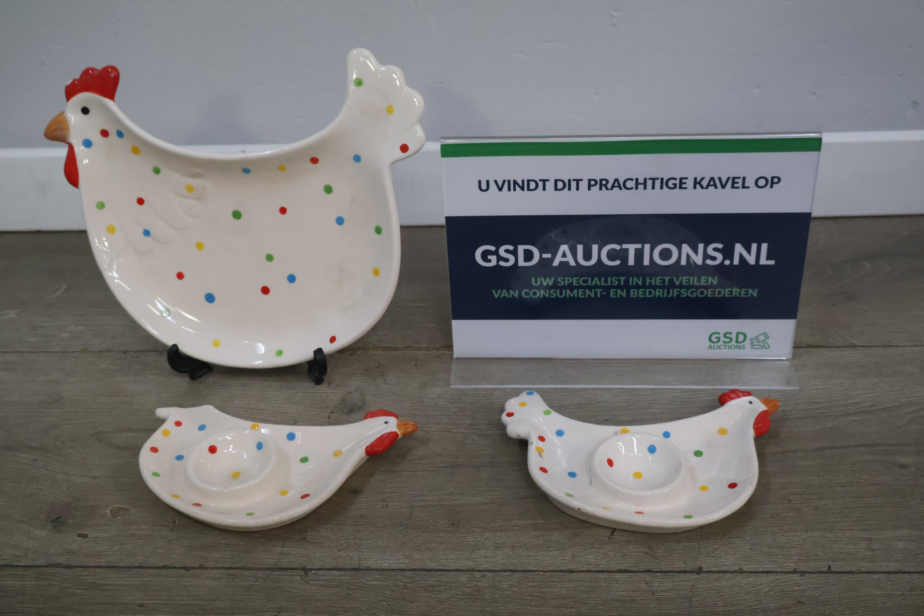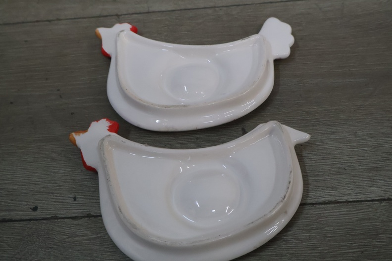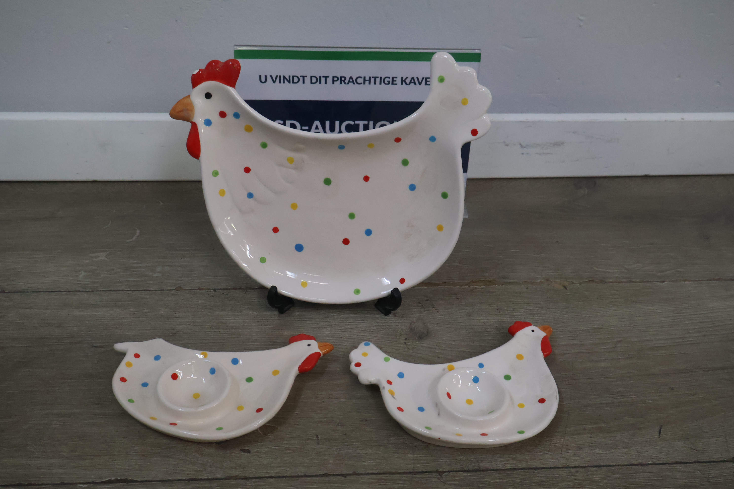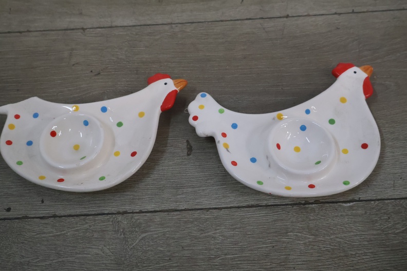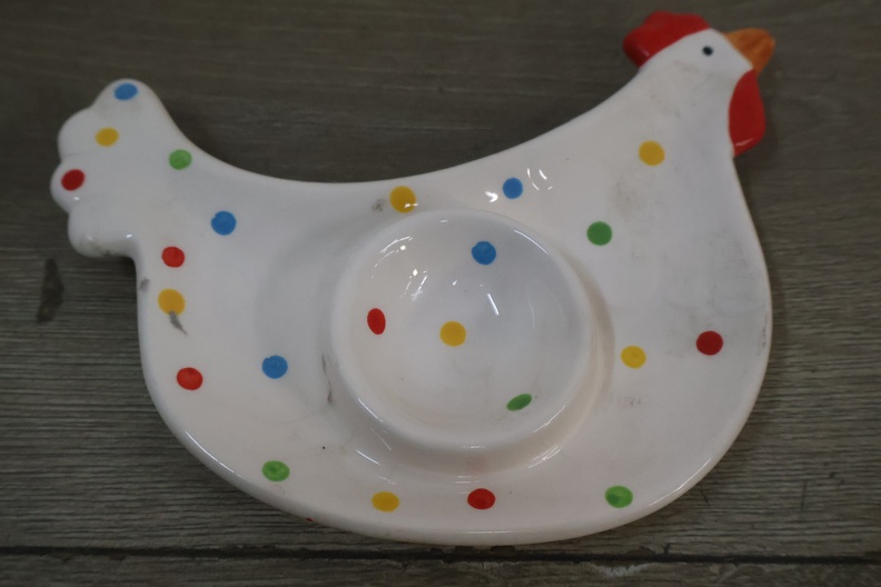 Schaal in de vorm van een kip met 2 eierschaaltjes'