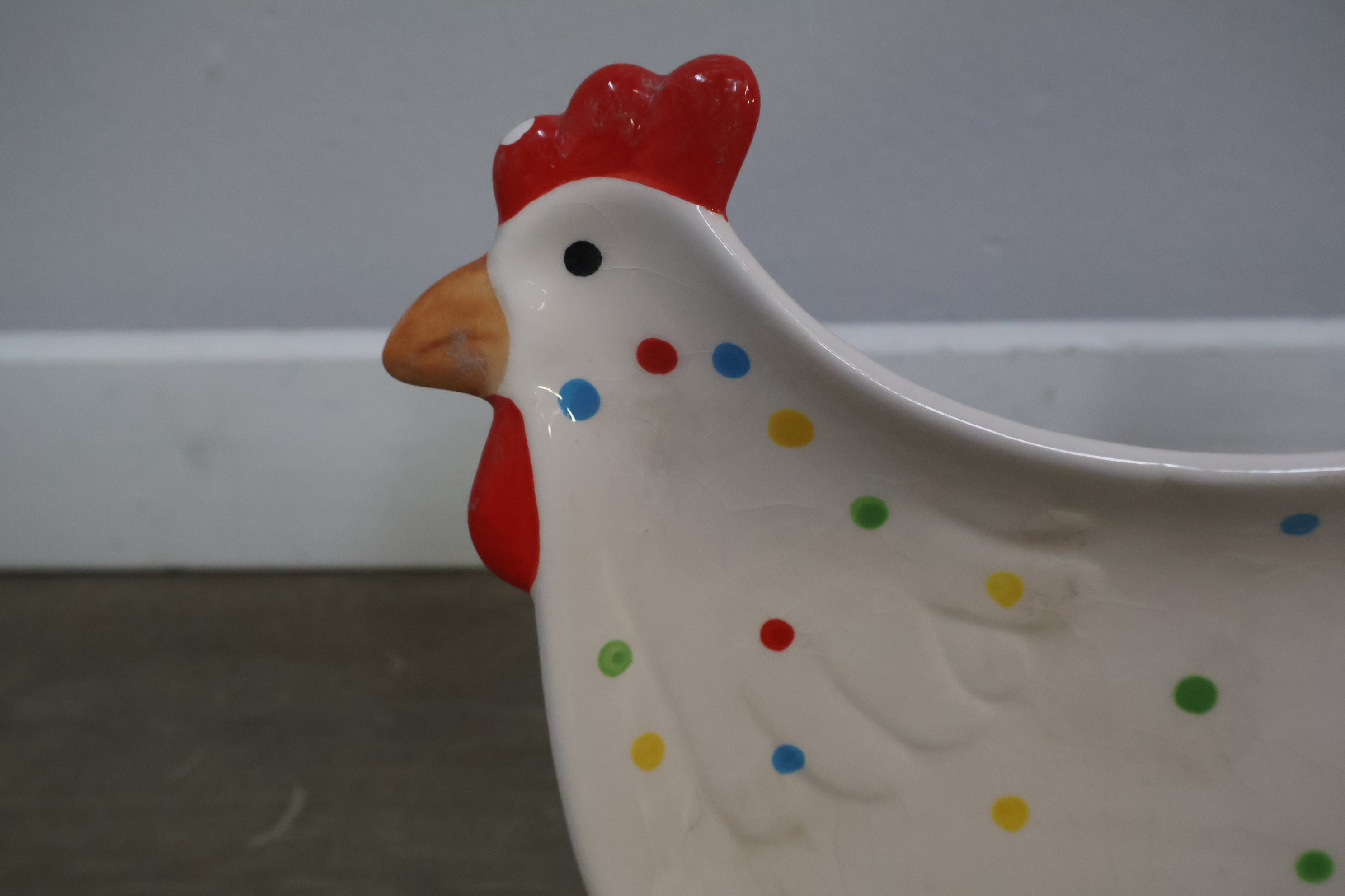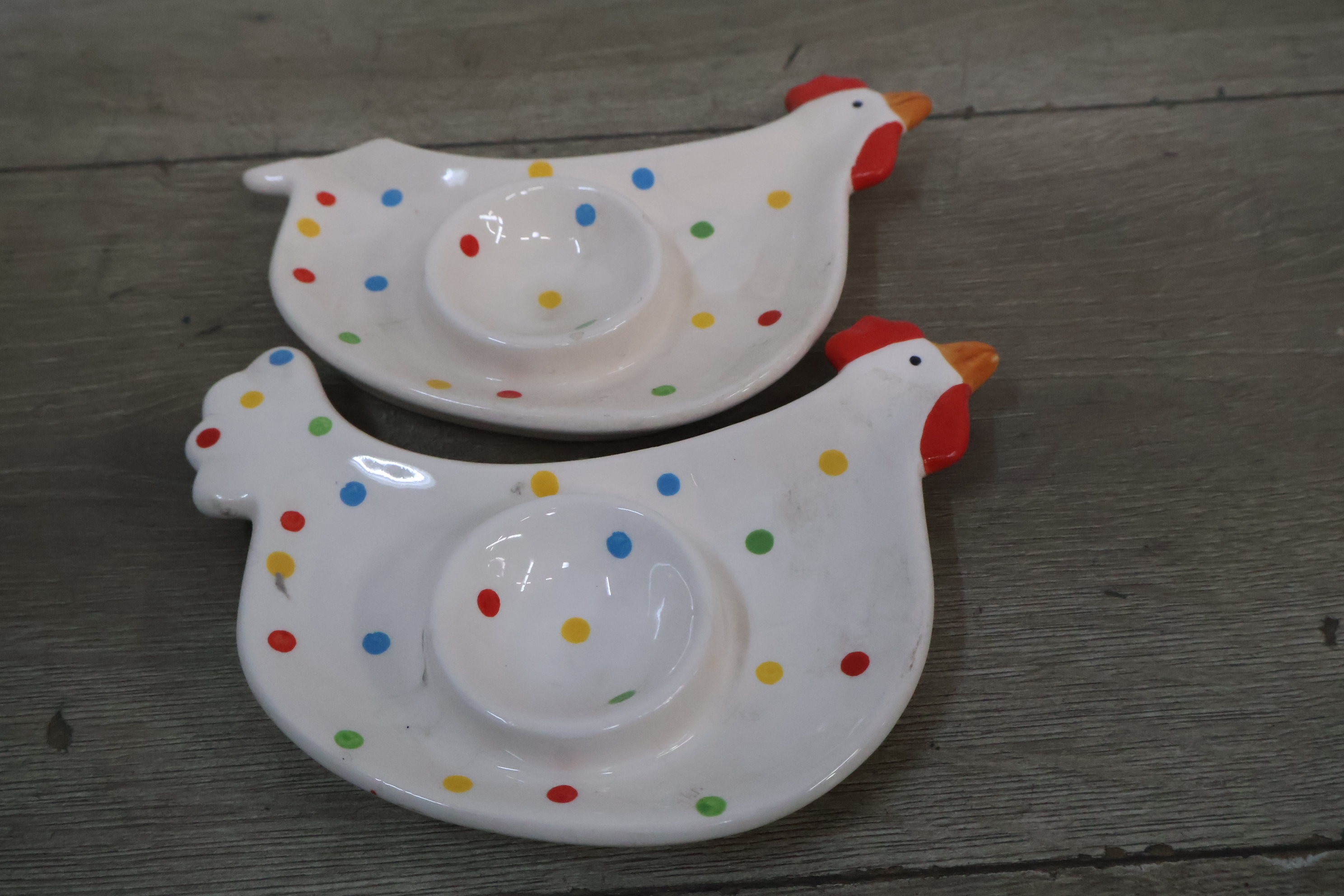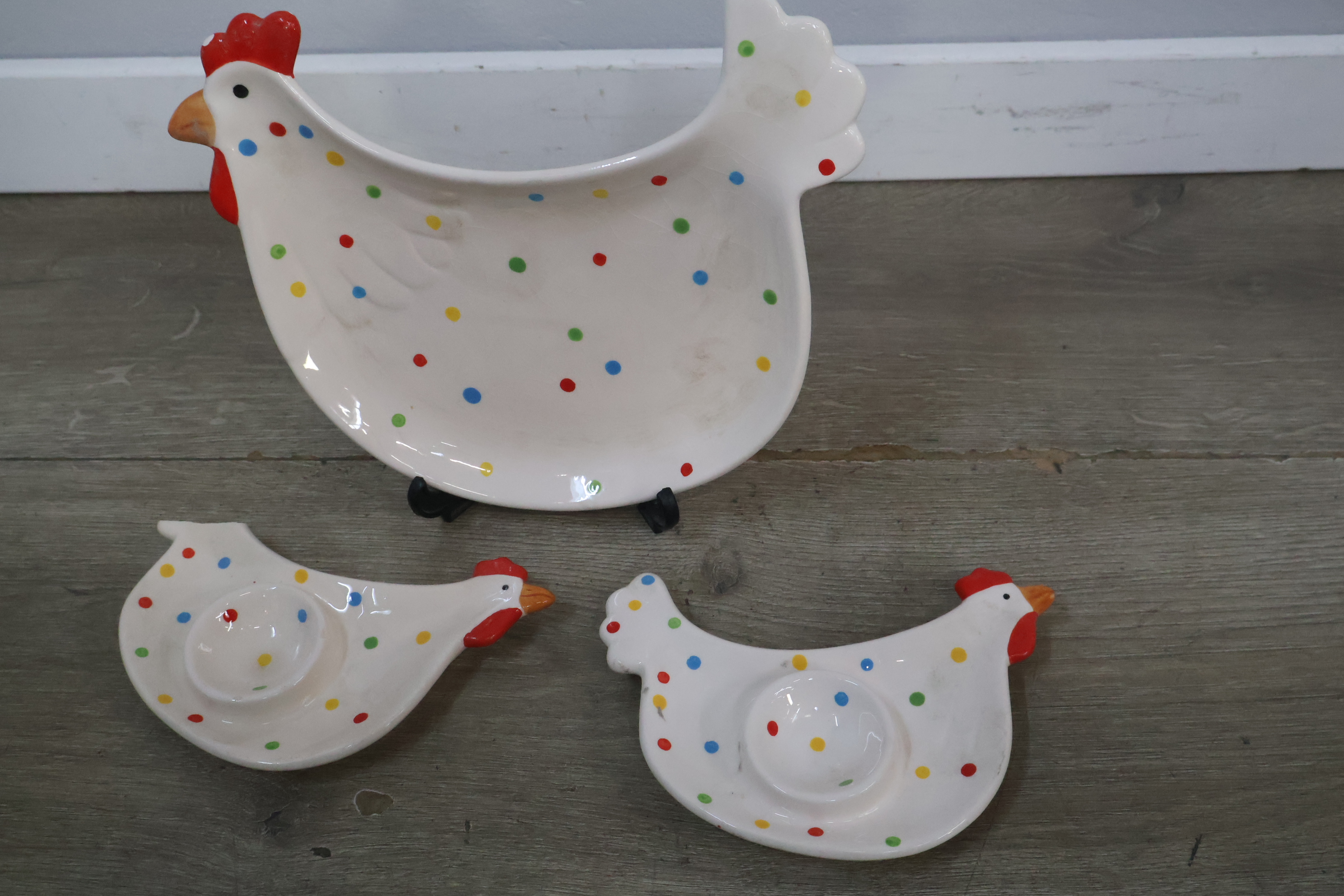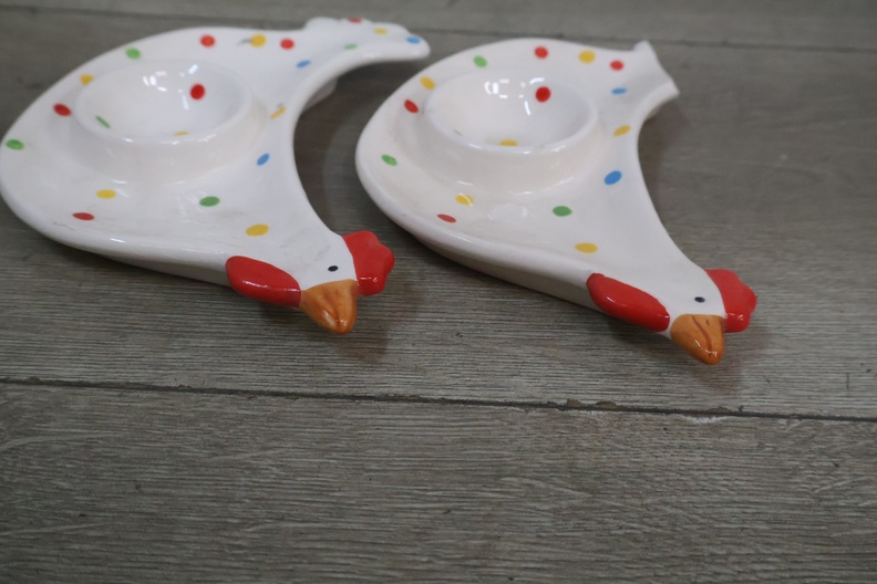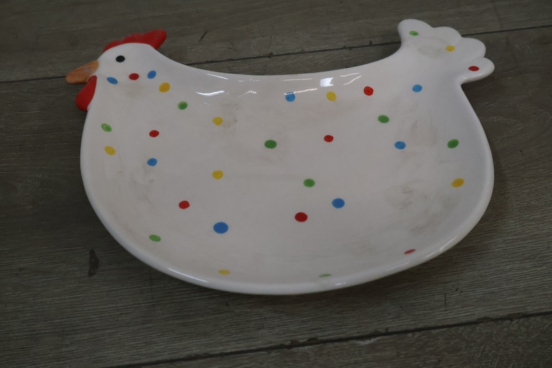 Schaal in de vorm van een kip met 2 eierschaaltjes'