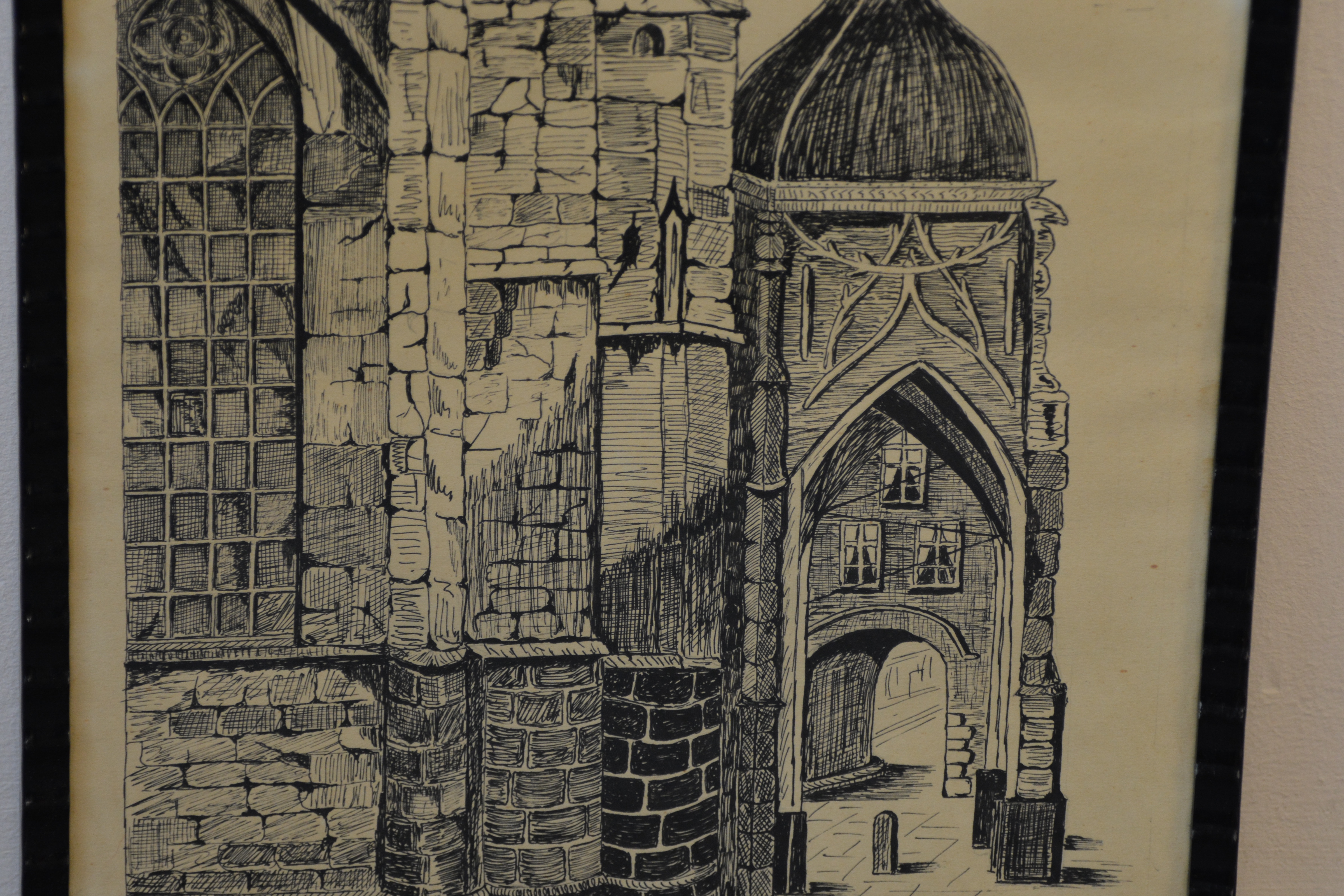 Het zuidportaal van de St. Stevenskerk te Nijmegen. Oud werk, dus wat vergeeld, verder ingelijst en in goede staat. Waarwchijnlijk gemaakt op 3-4-1931.