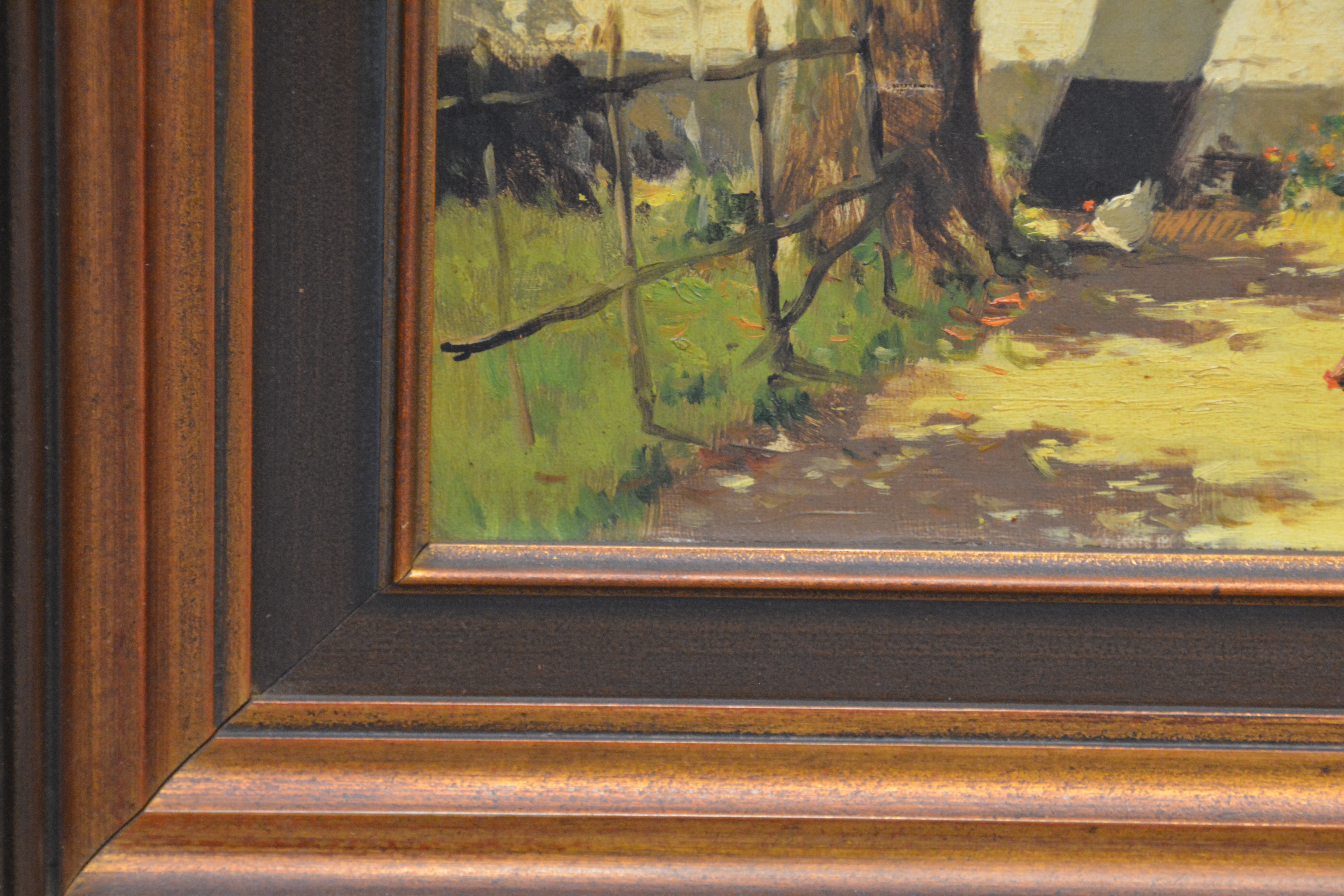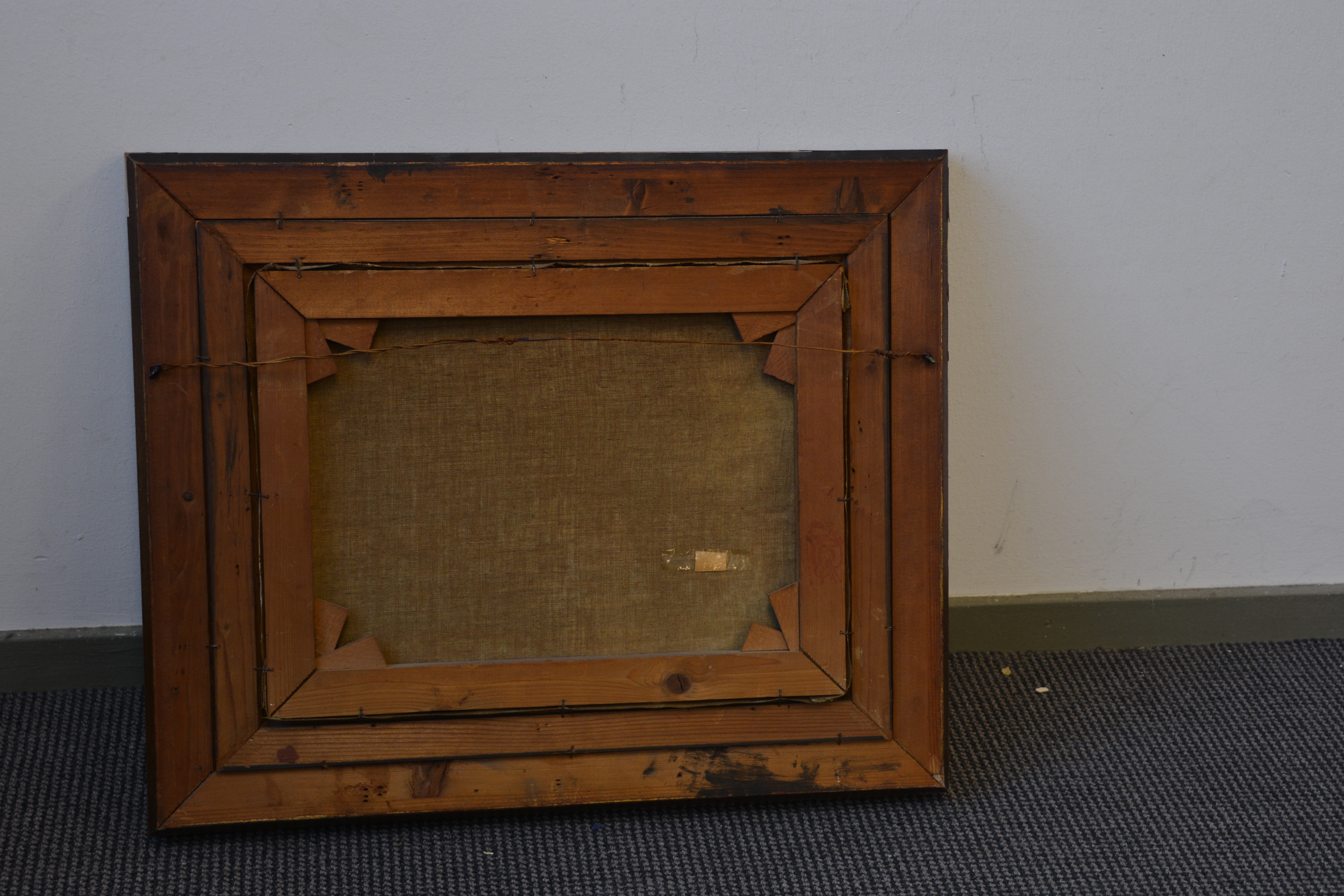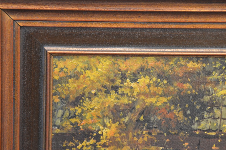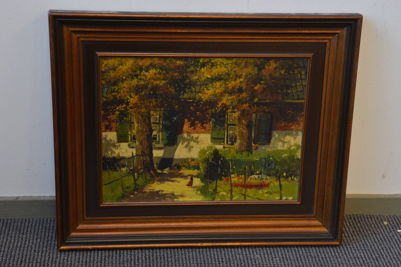 Ingelijst, klein deukje in doek. Verder in goede staat. Mooi geschilderd. Hollandse School.