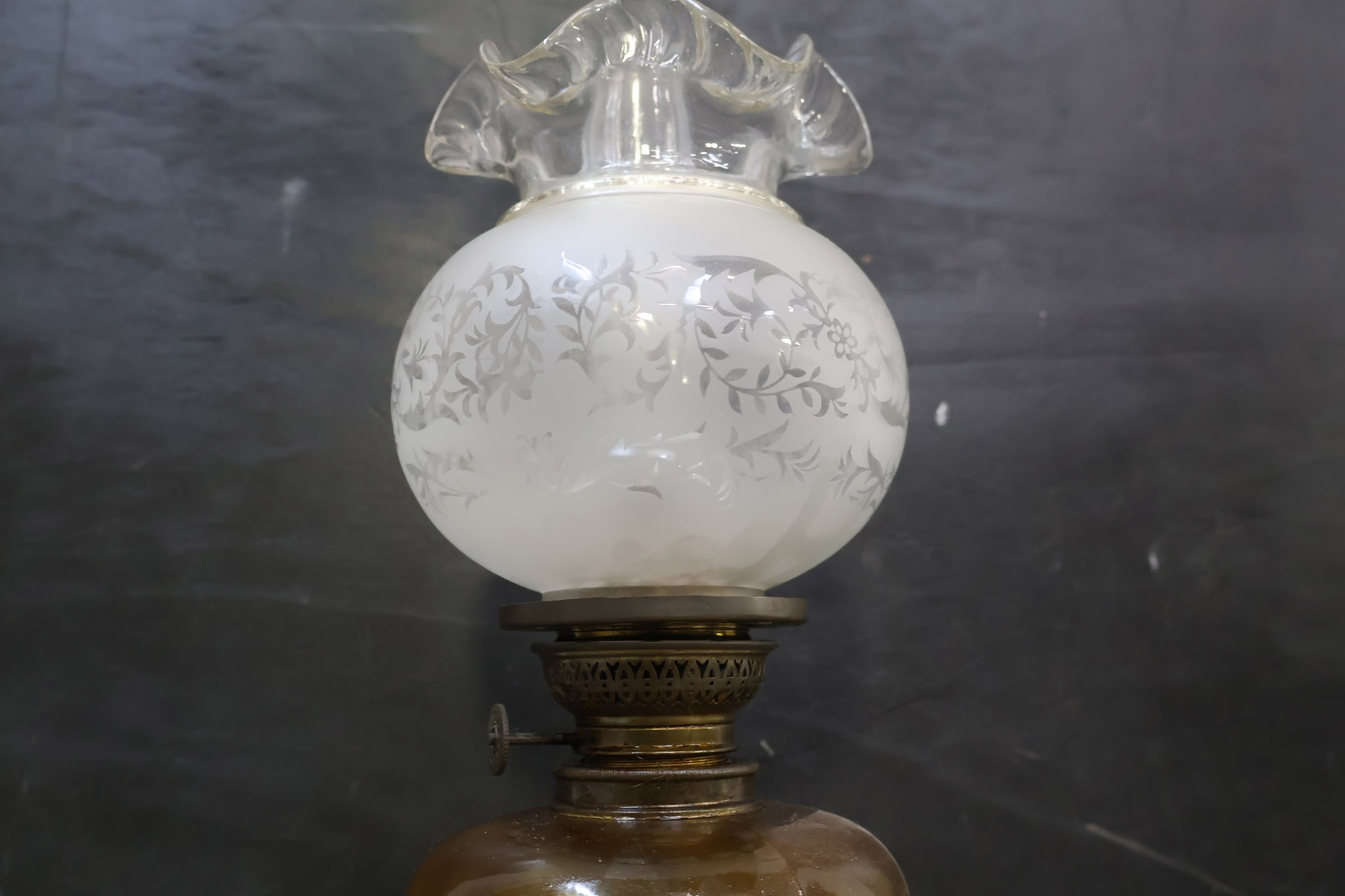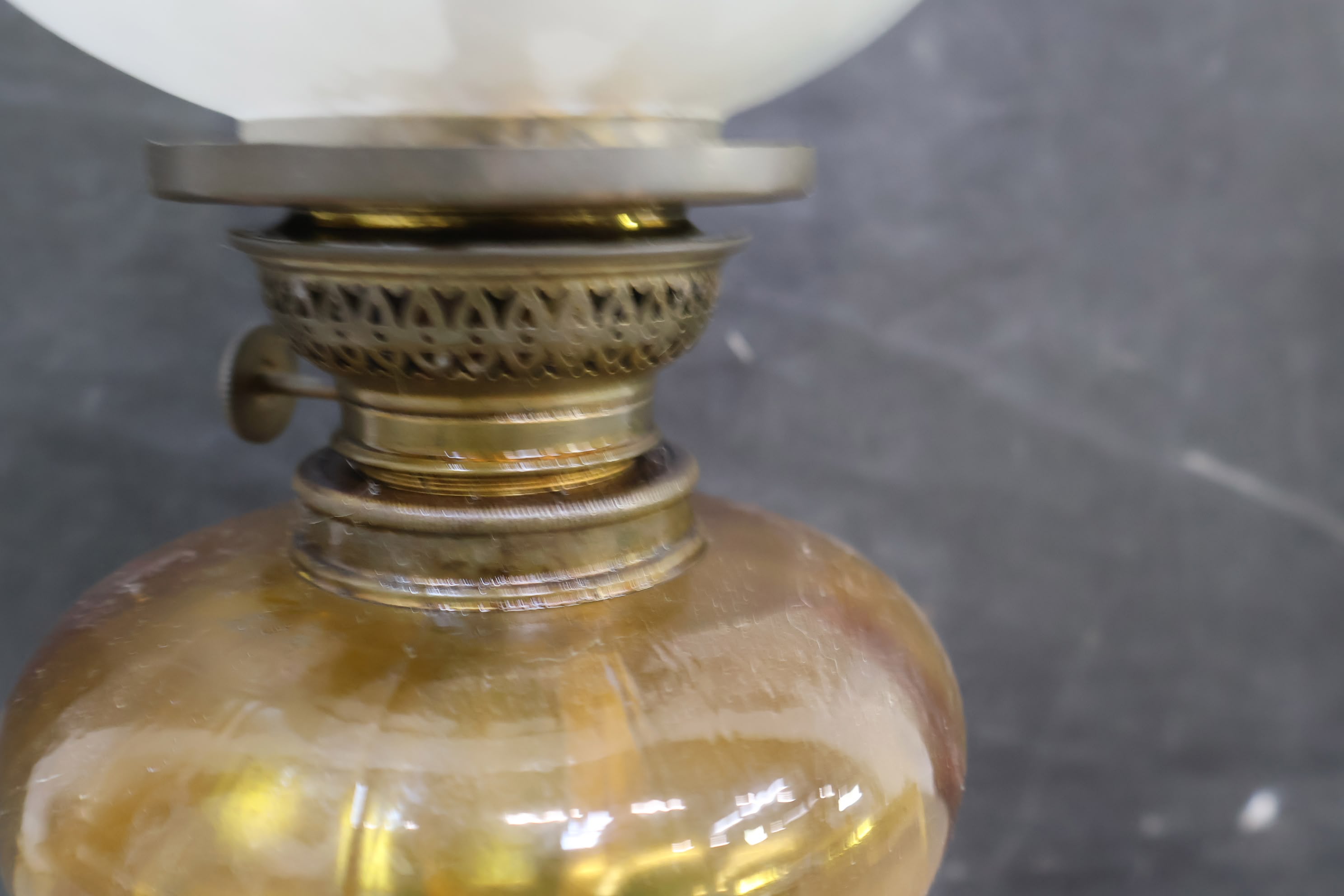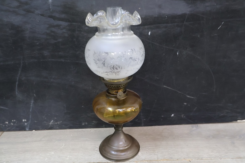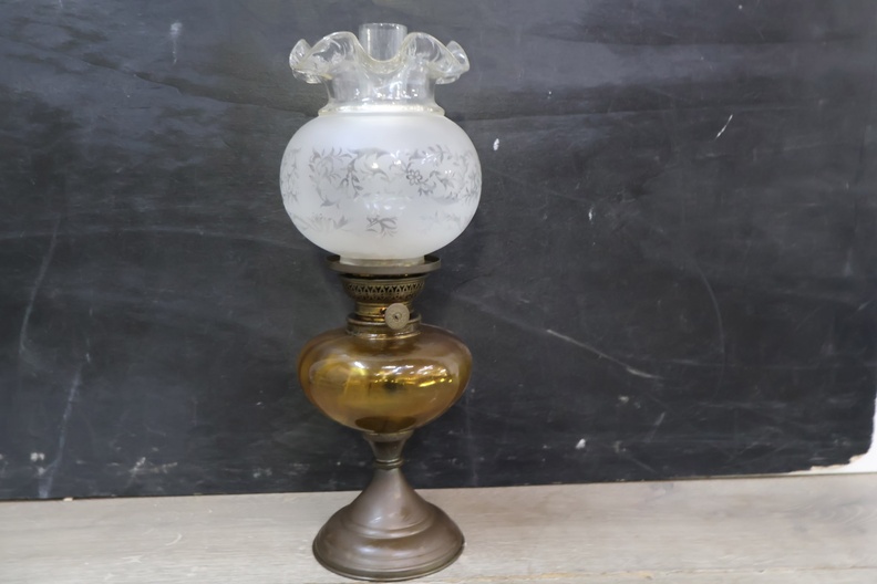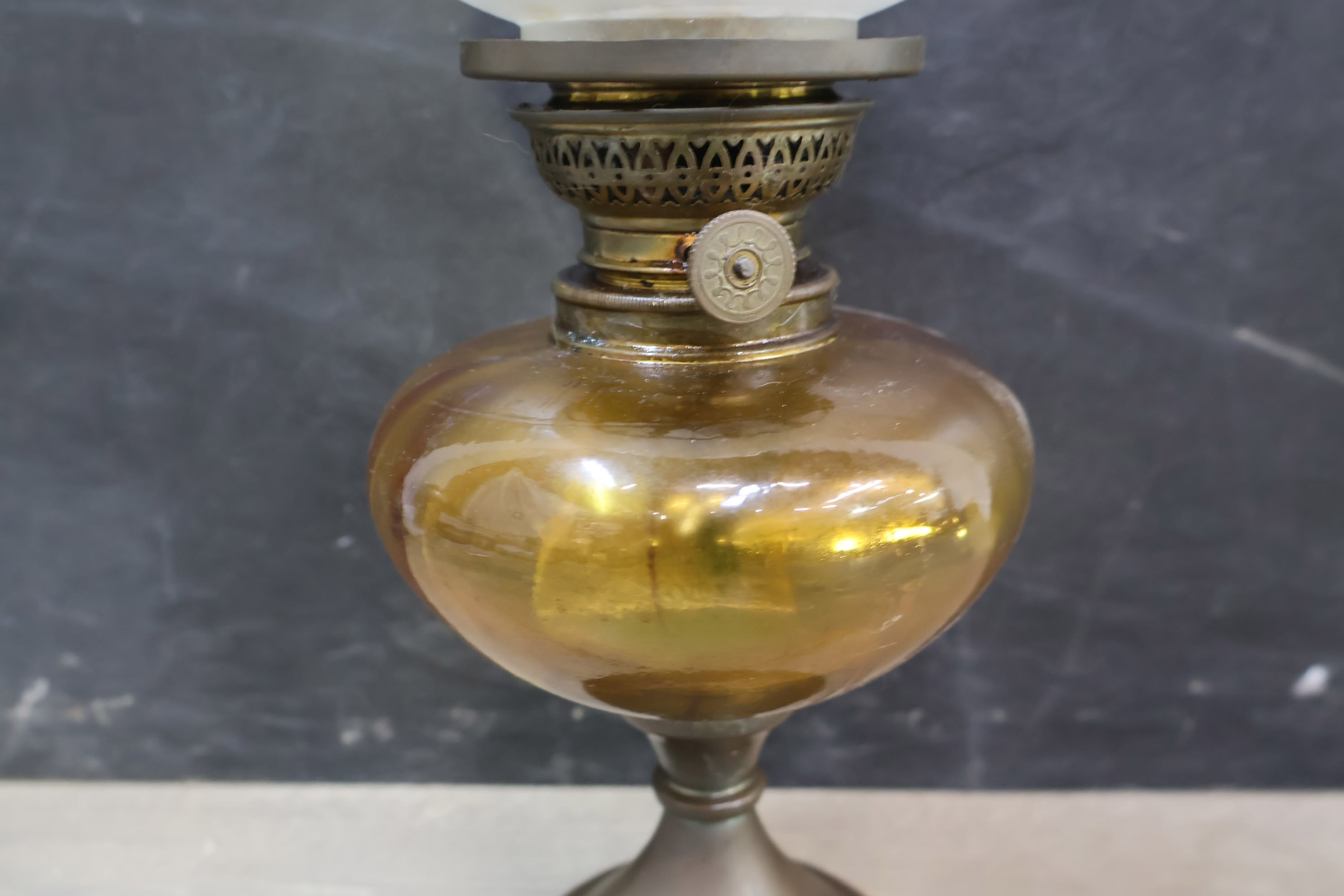 Antieke Messing Petroleum-Tafellamp