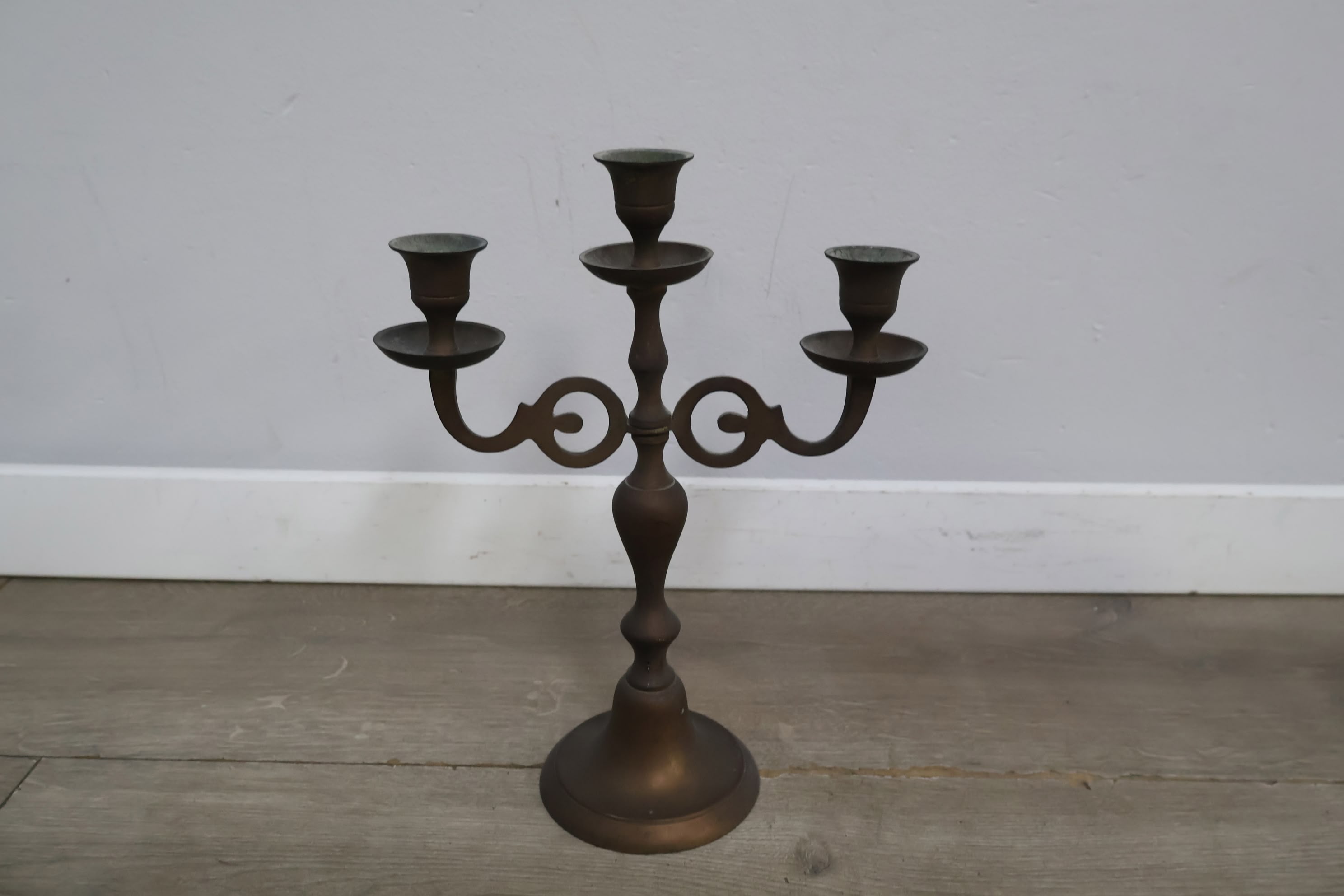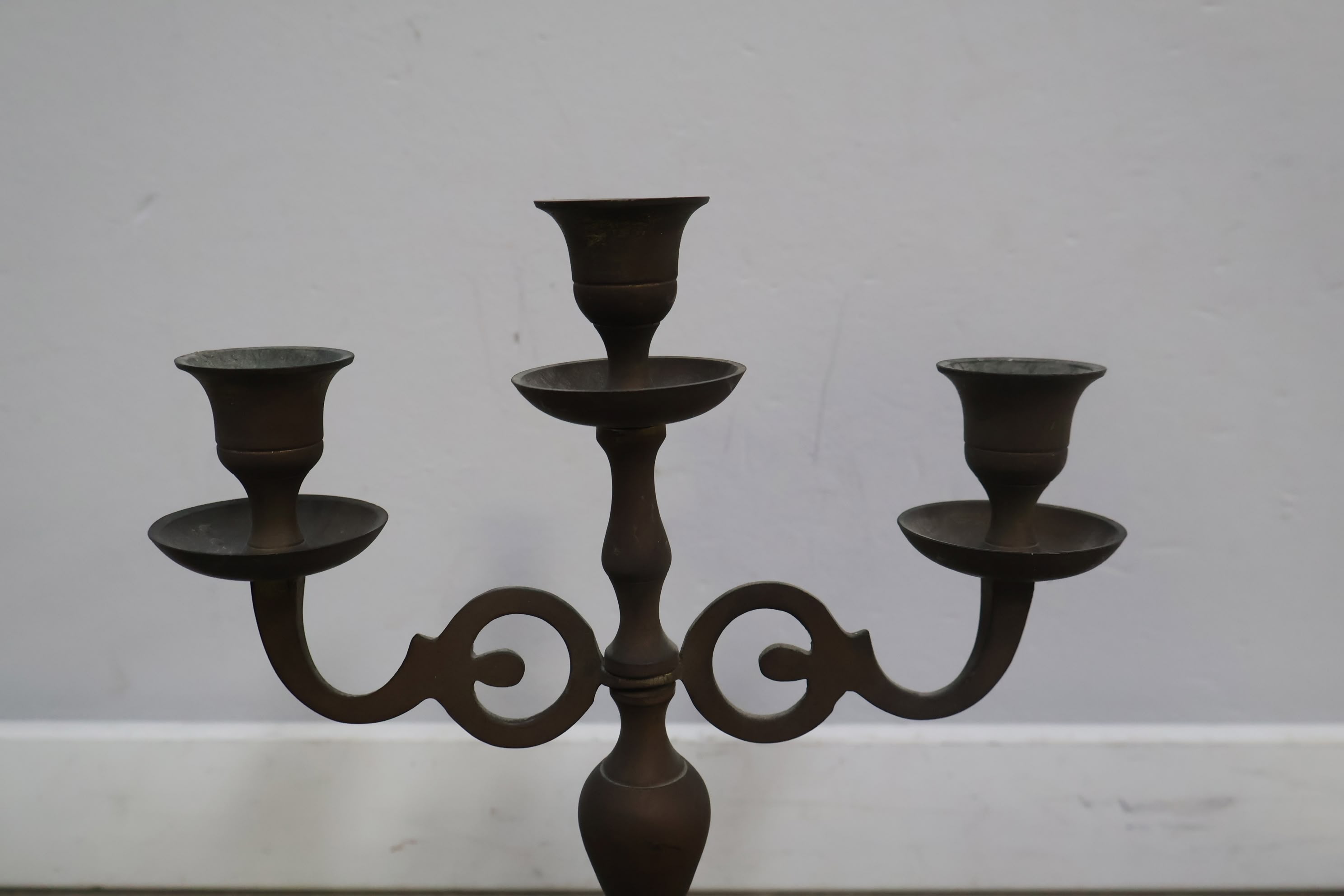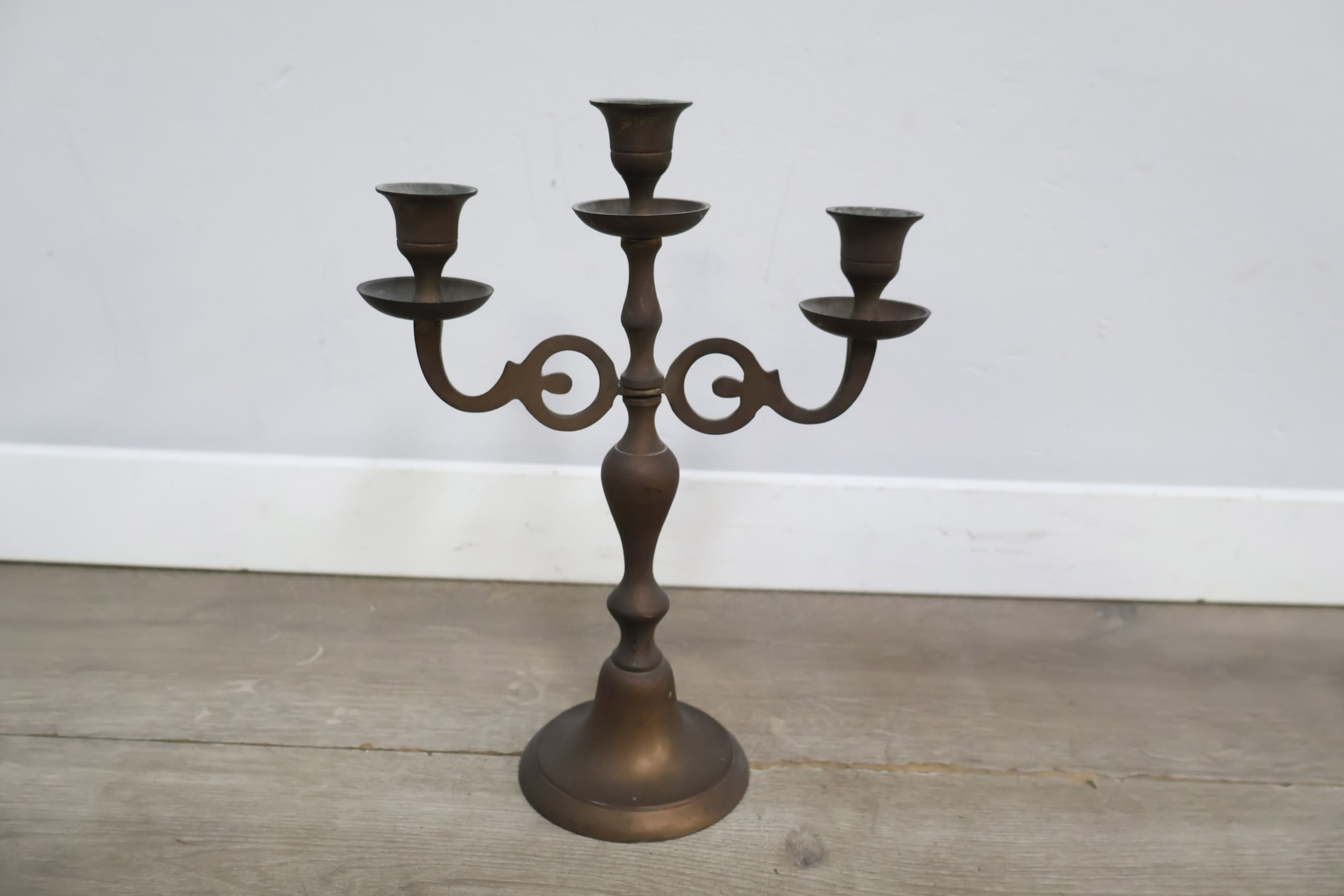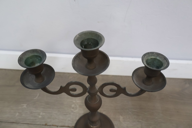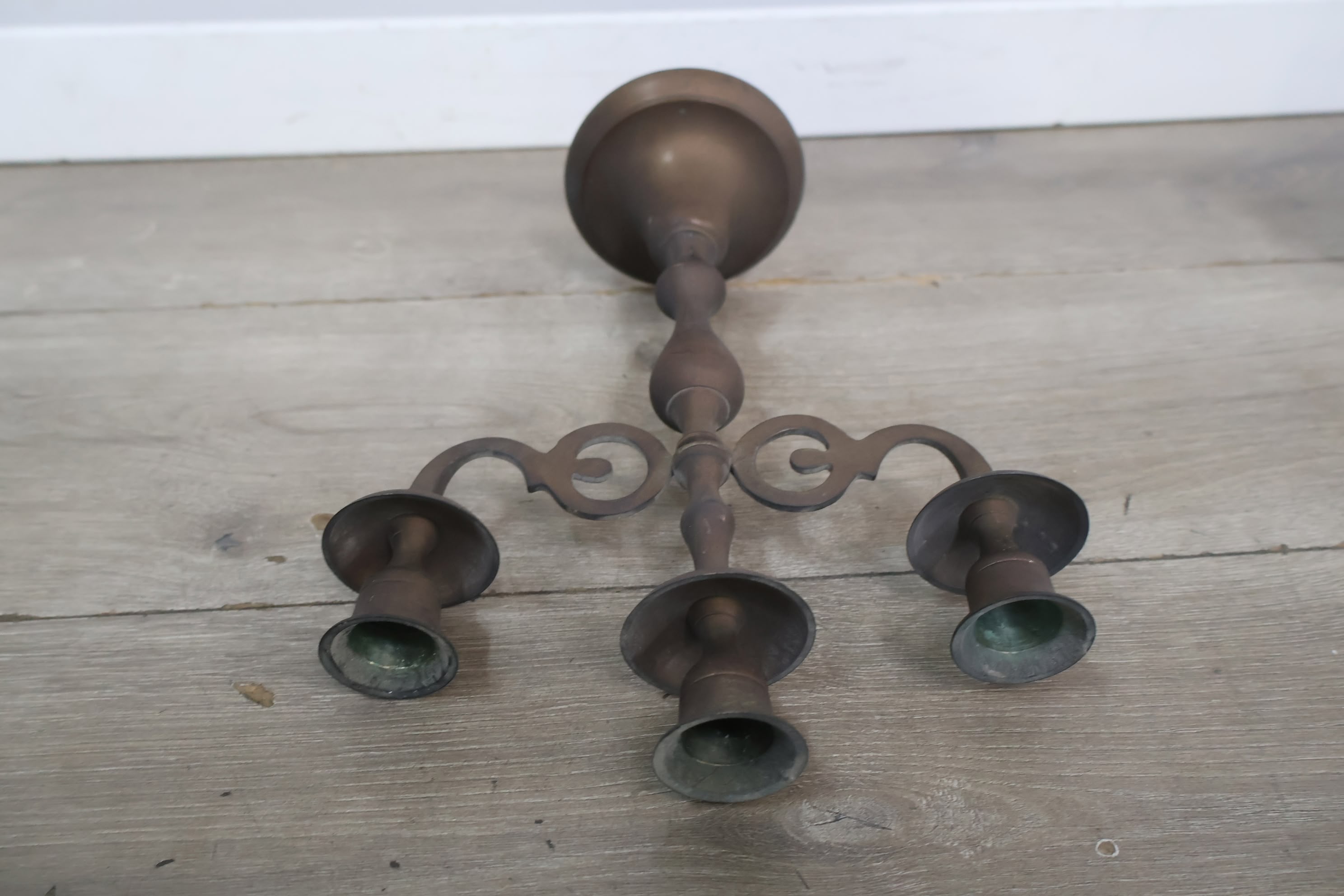 Antiek 3-Armige Kandelaar van Messing