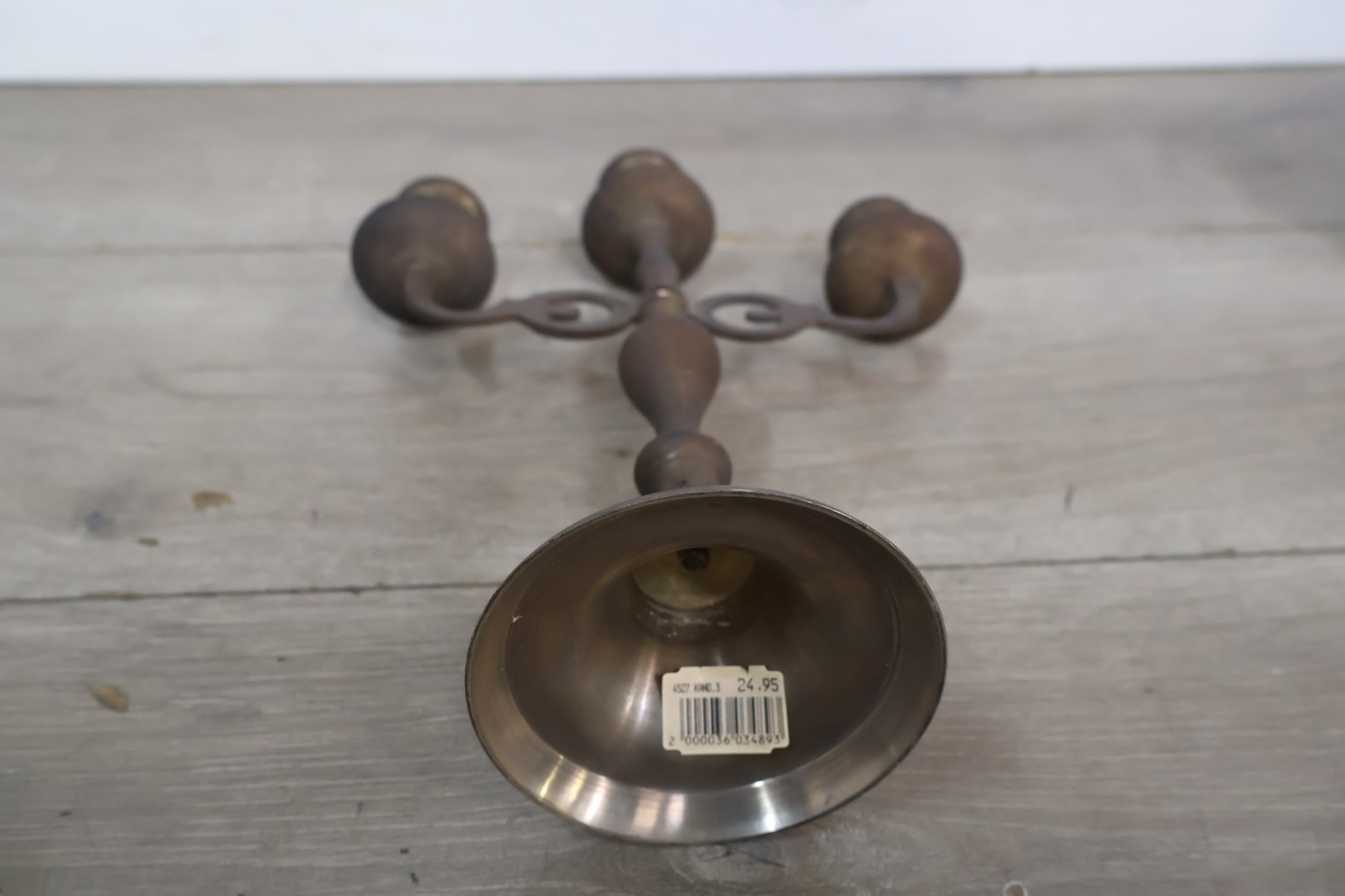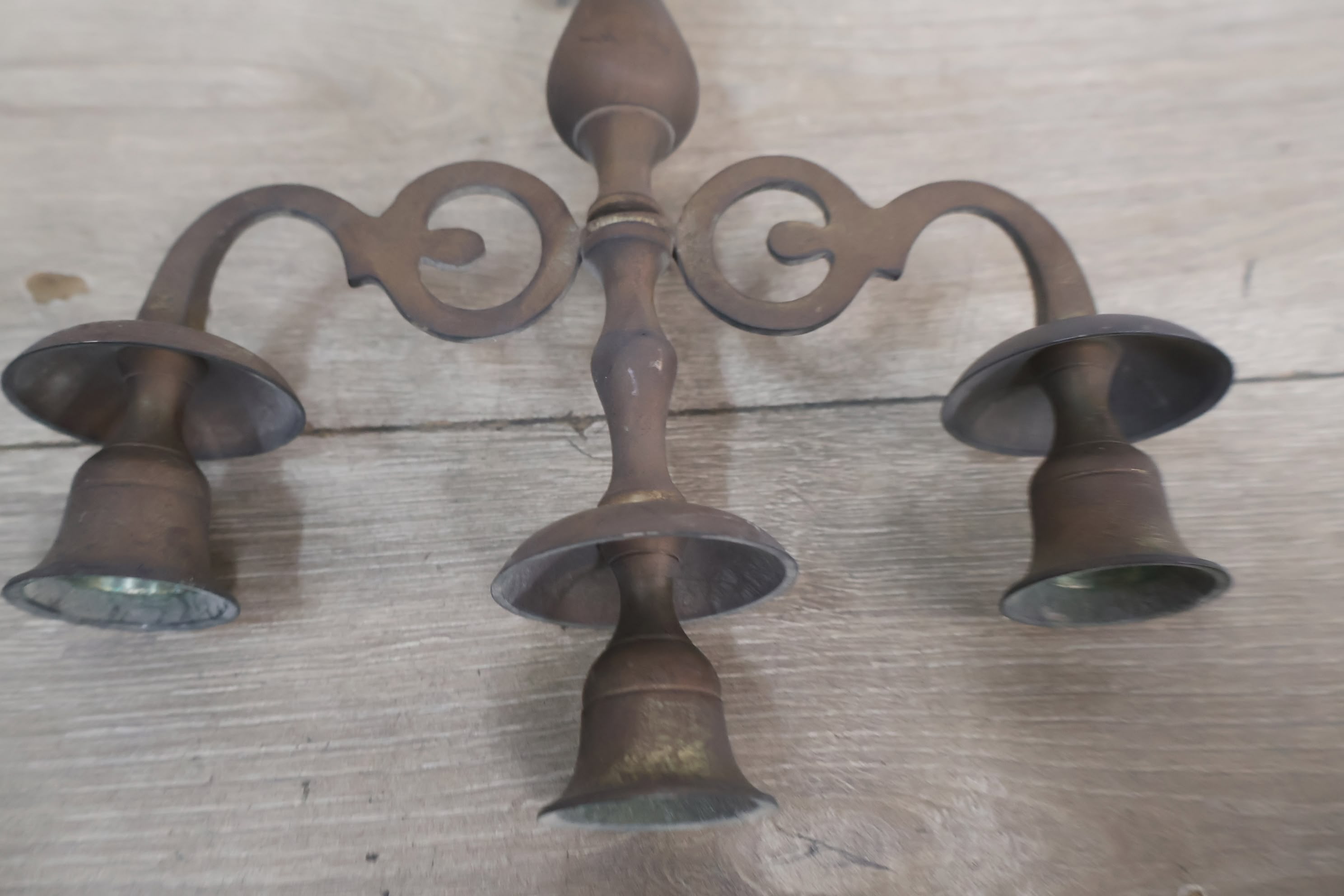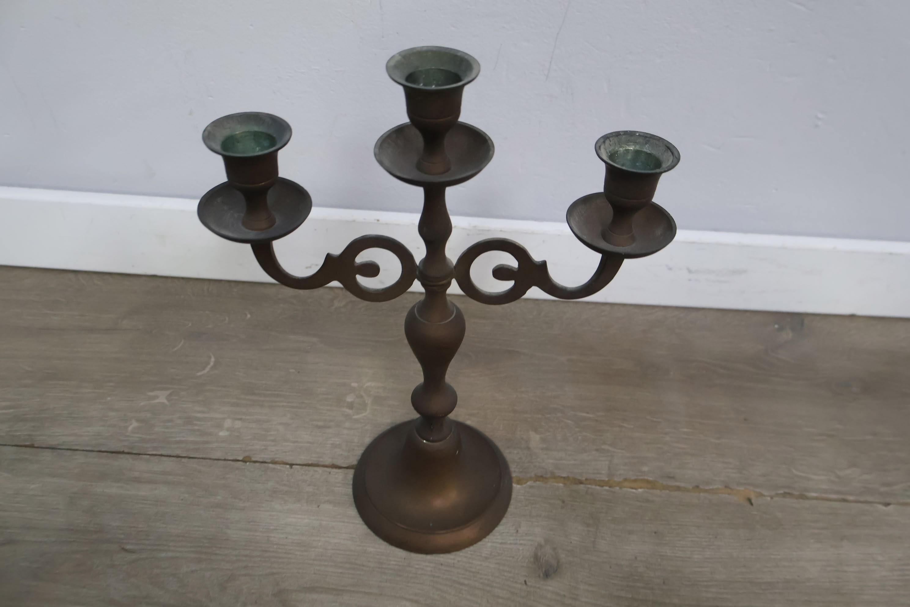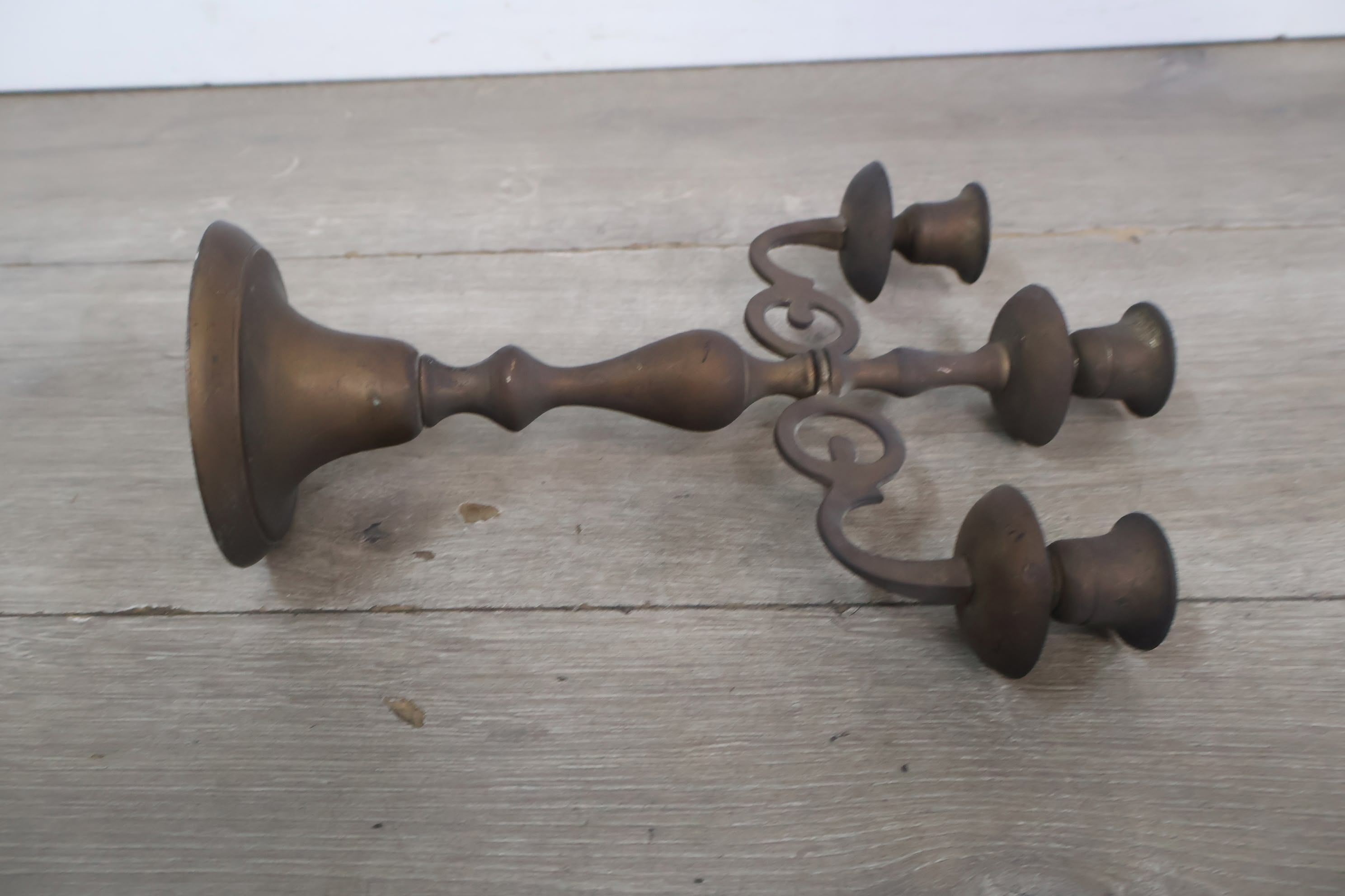 Antiek 3-Armige Kandelaar van Messing