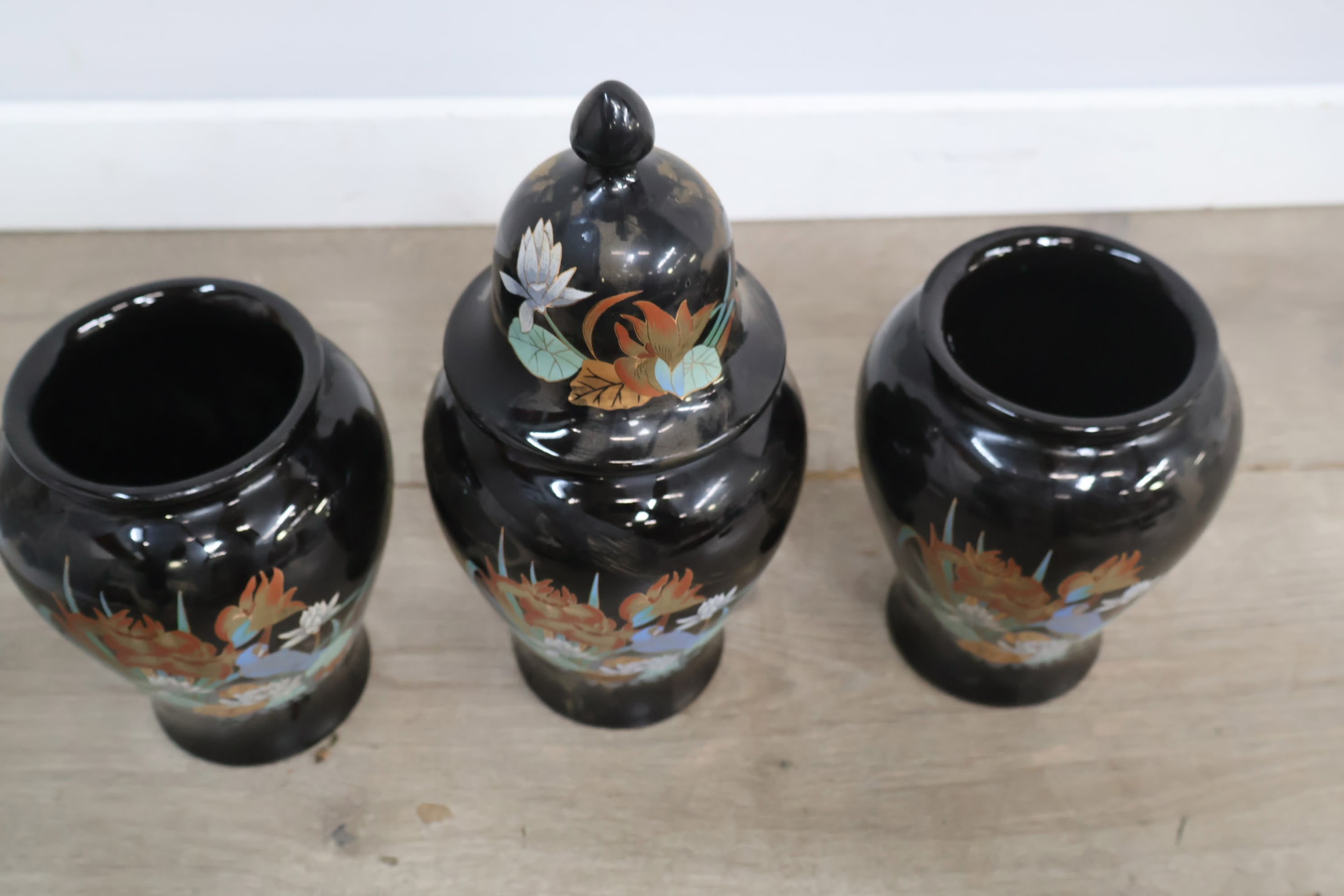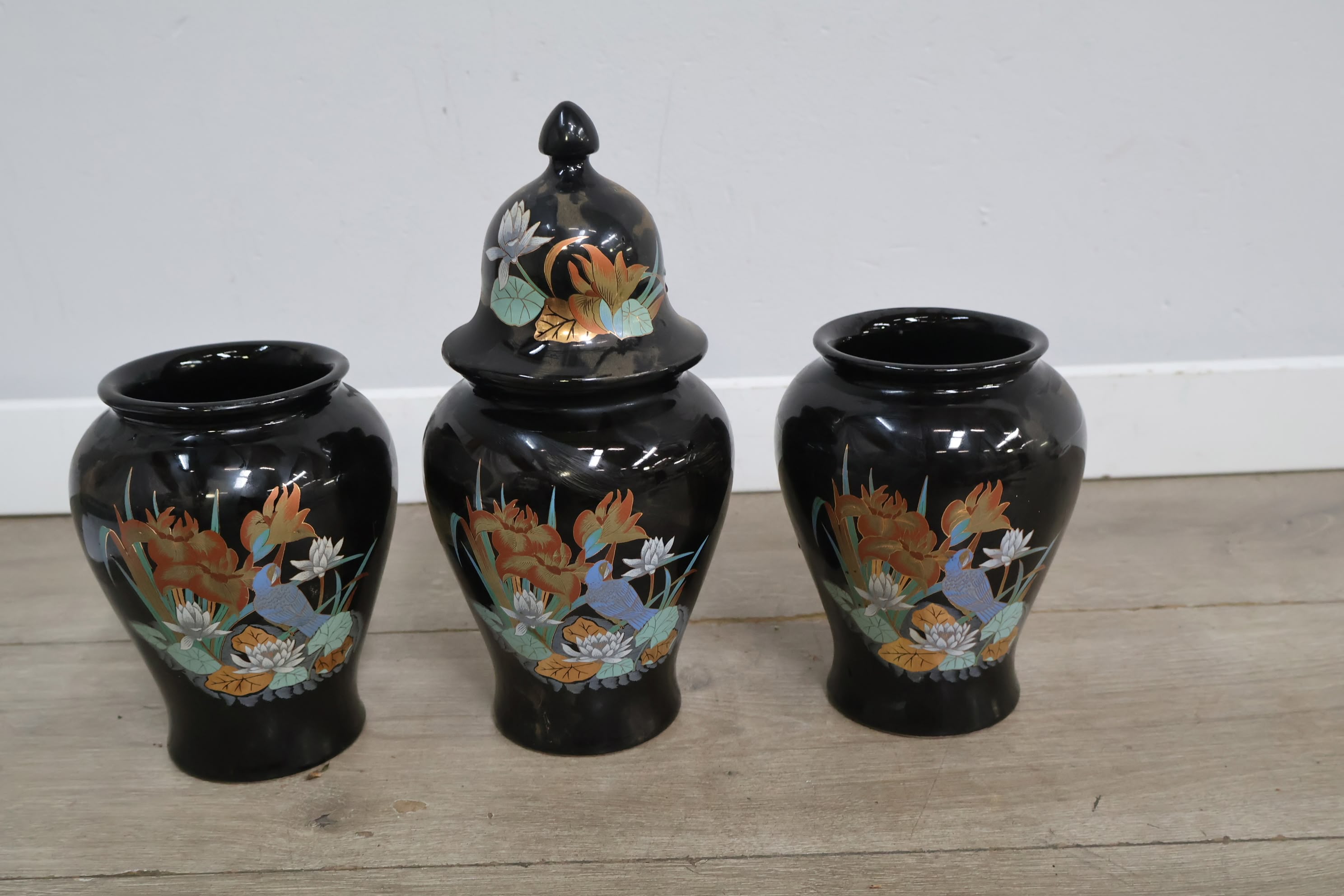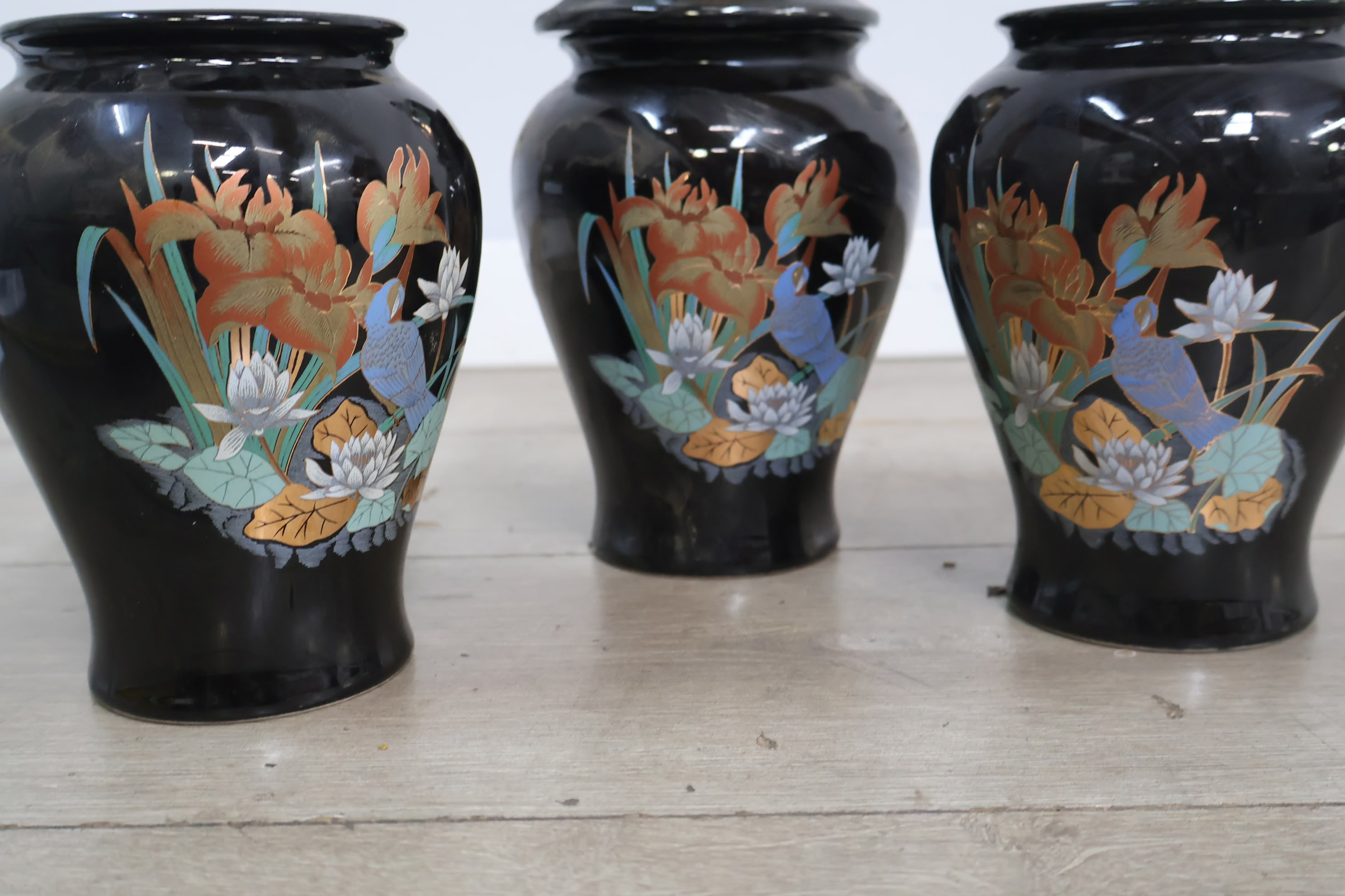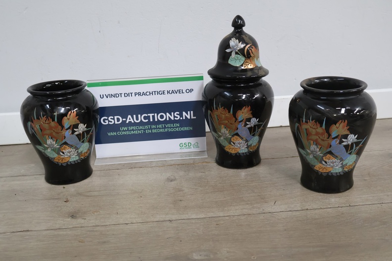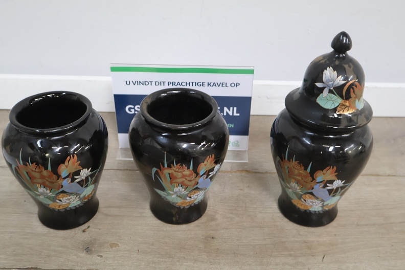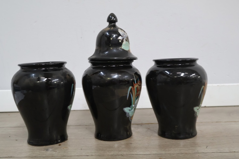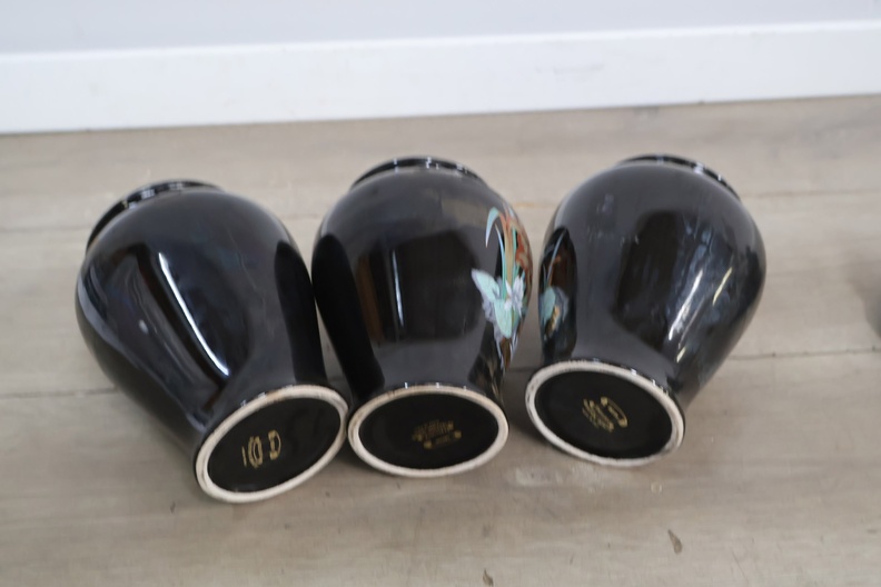 Set van 3 Zwart Geglazuurde Italiaanse Vazen