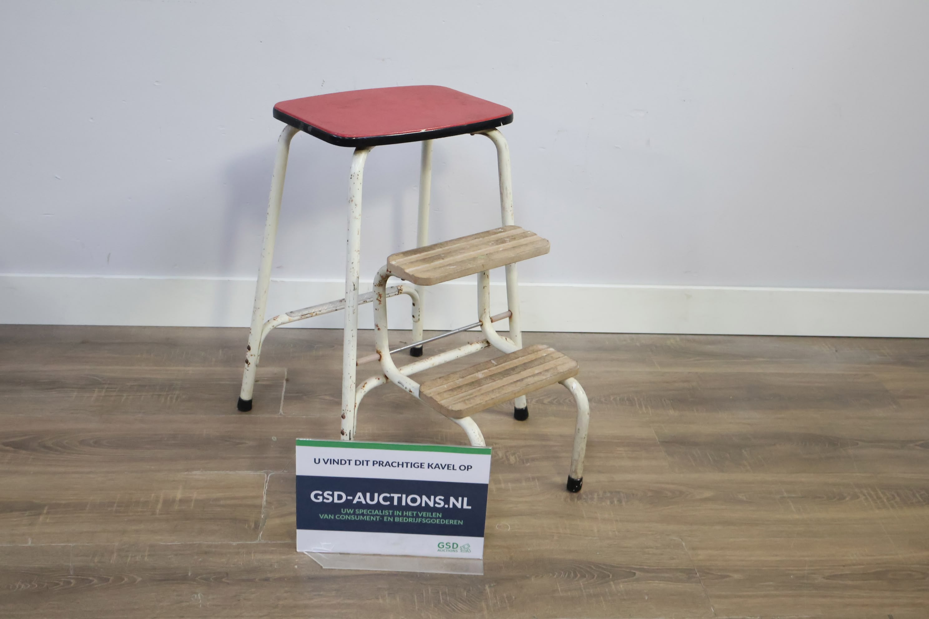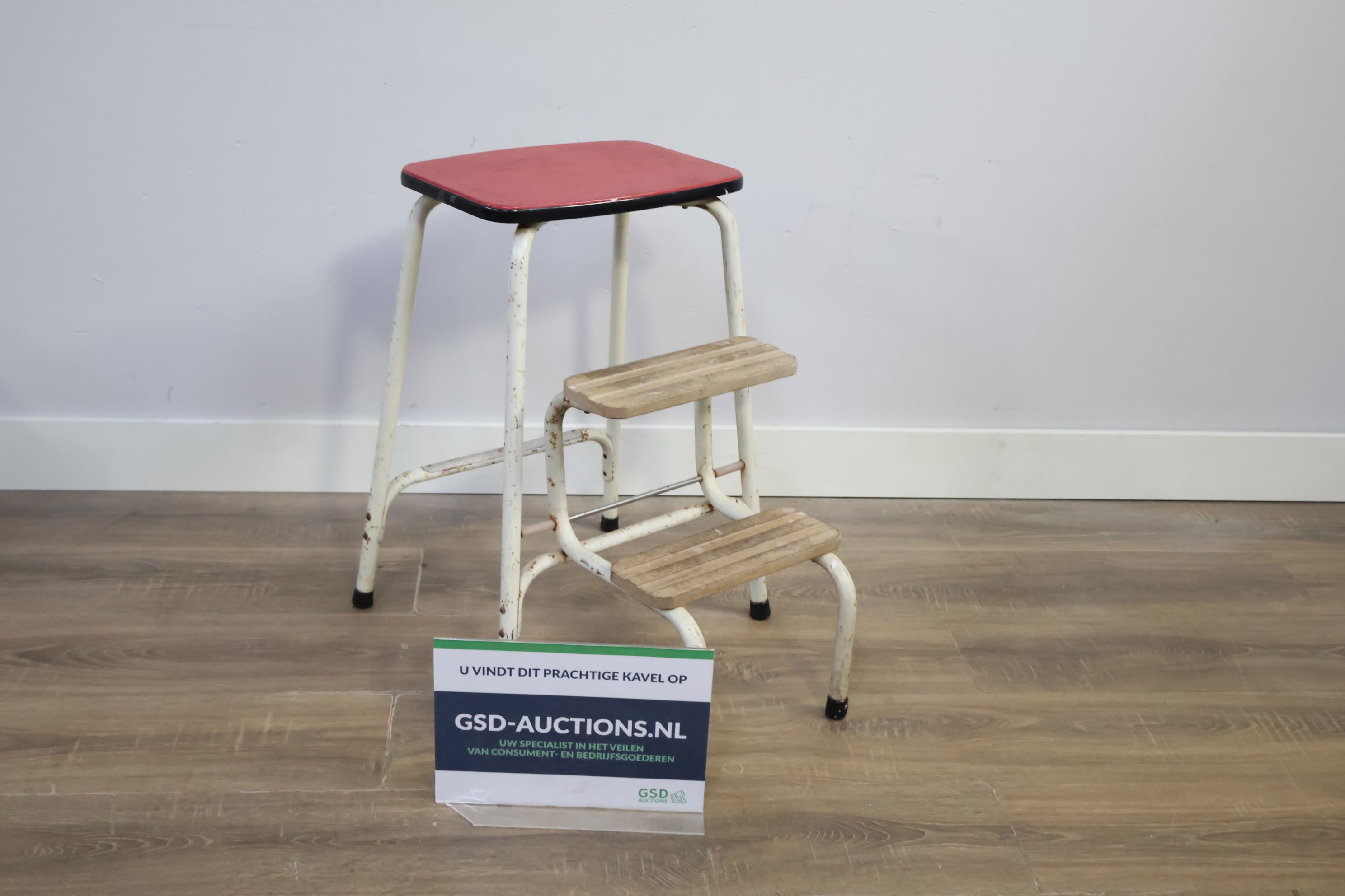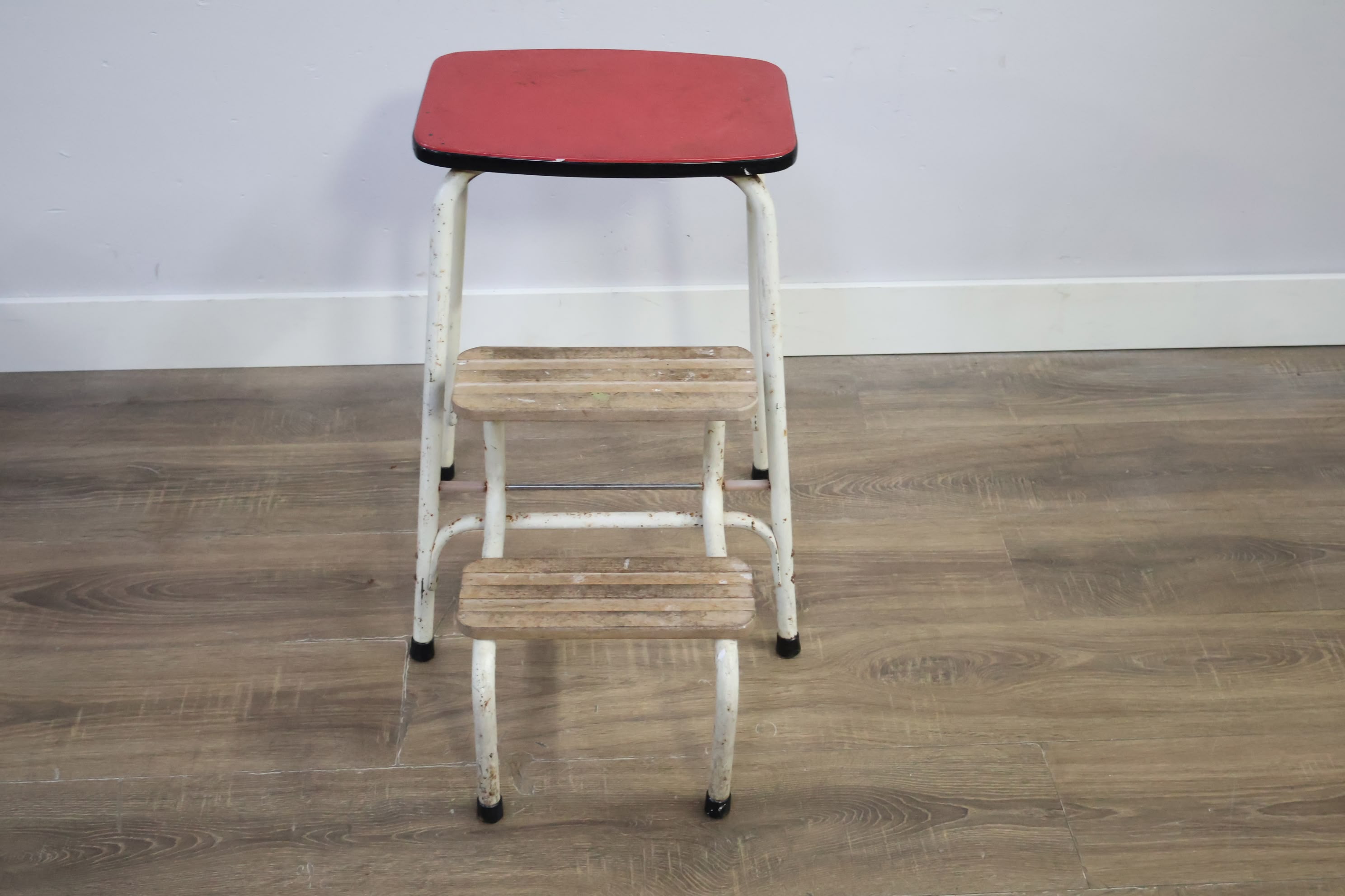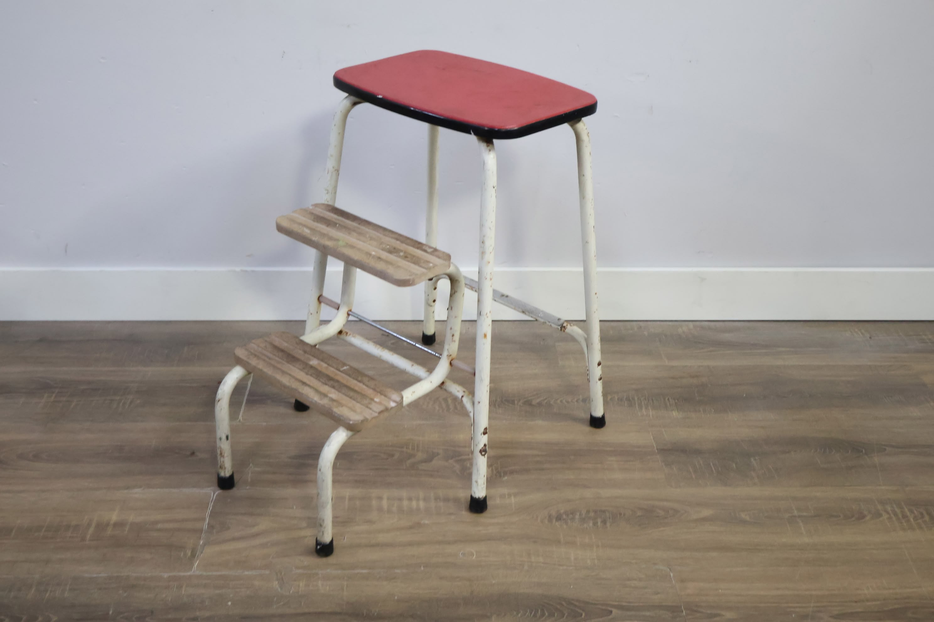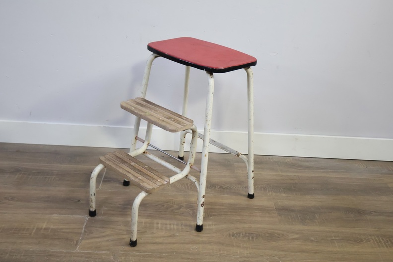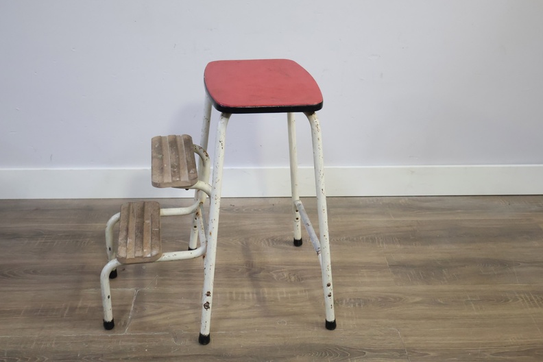 Vintage Uitklapbaar Wit Keukentrapje