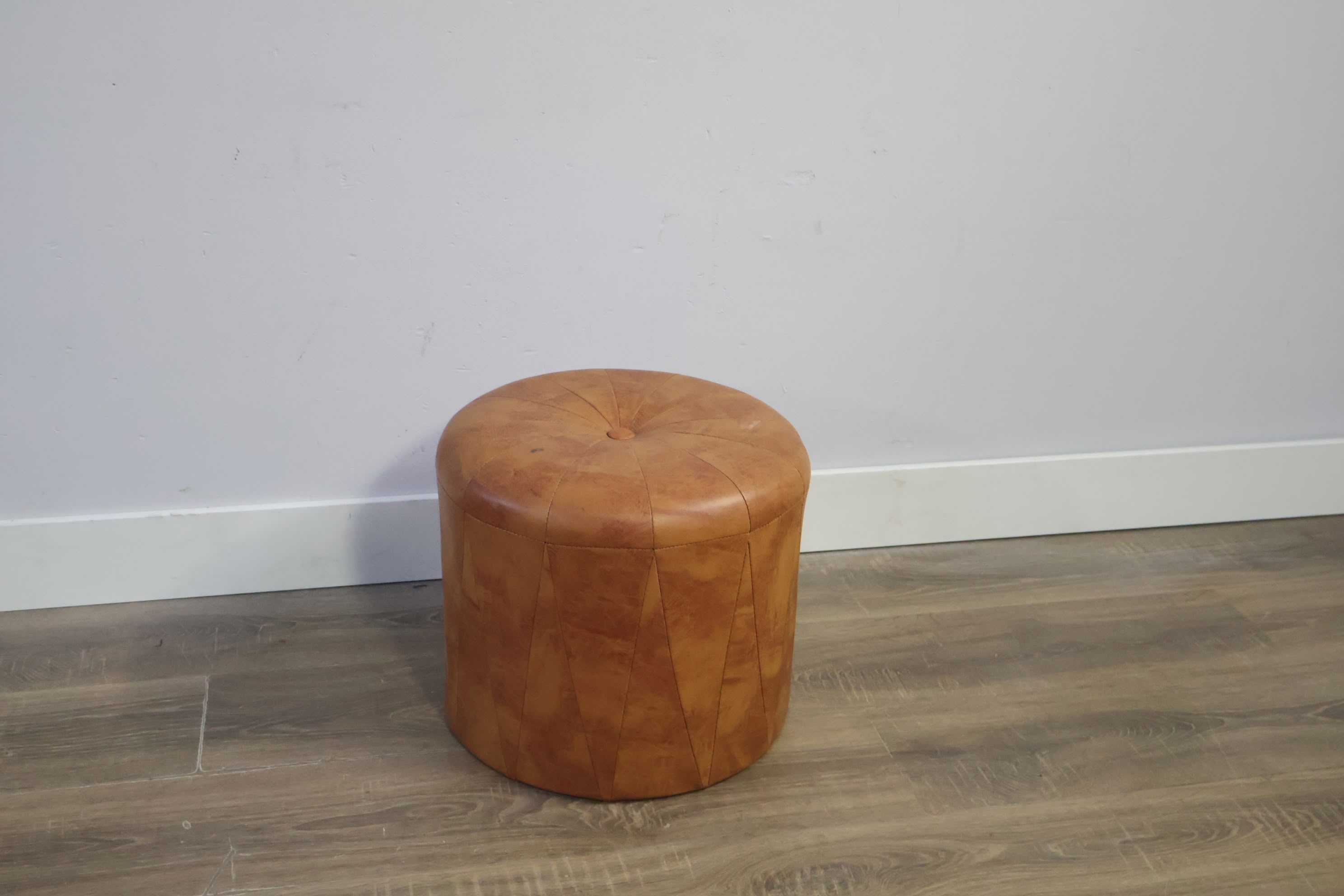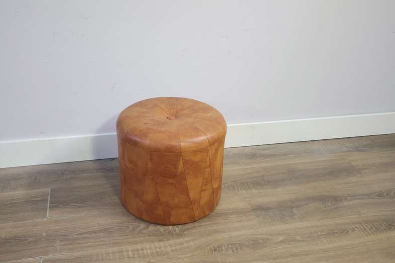 Ronde Cognacleren Poef