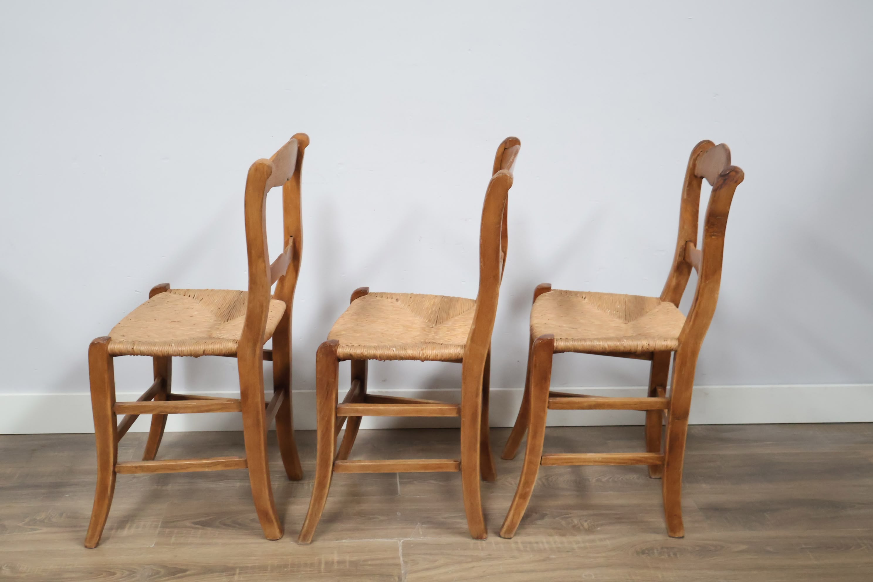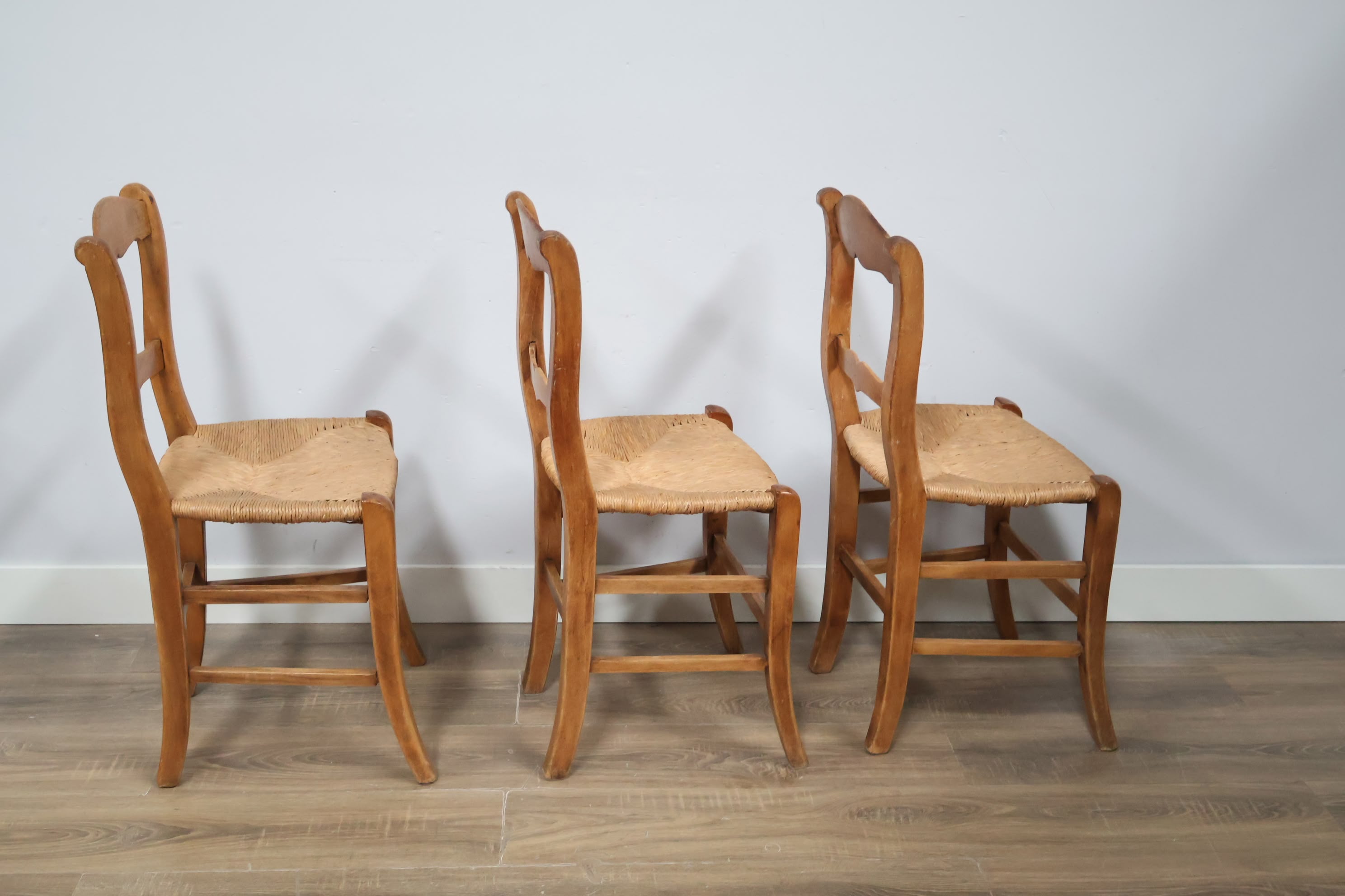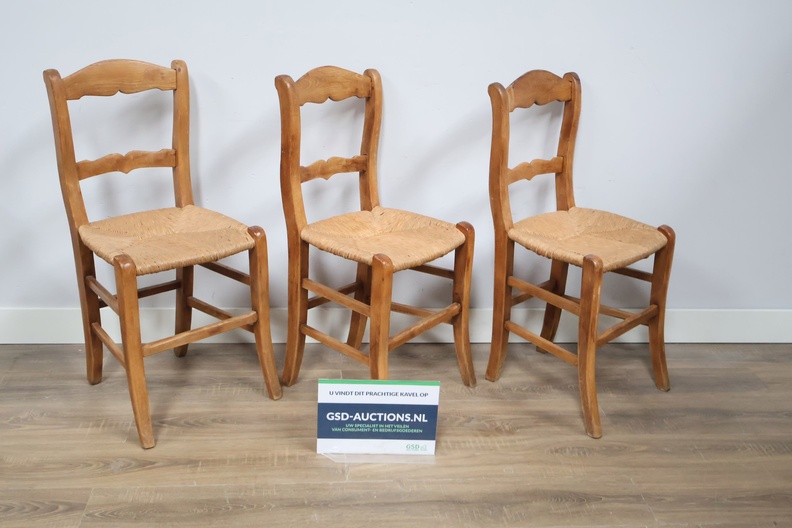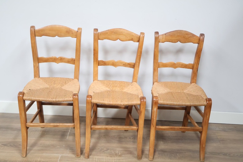 Set van 3 Vintage Eetkamerstoelen met Rieten Zitting