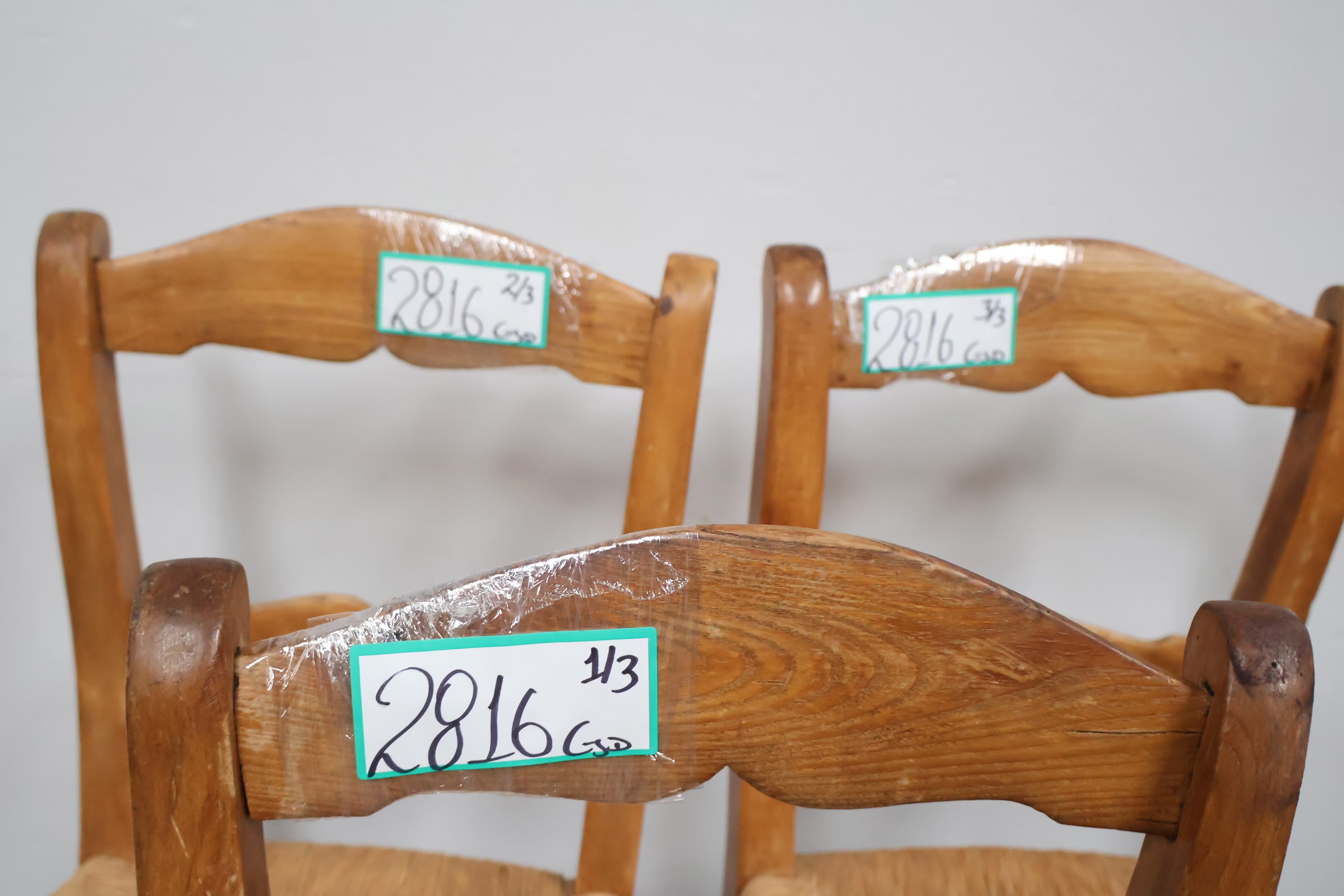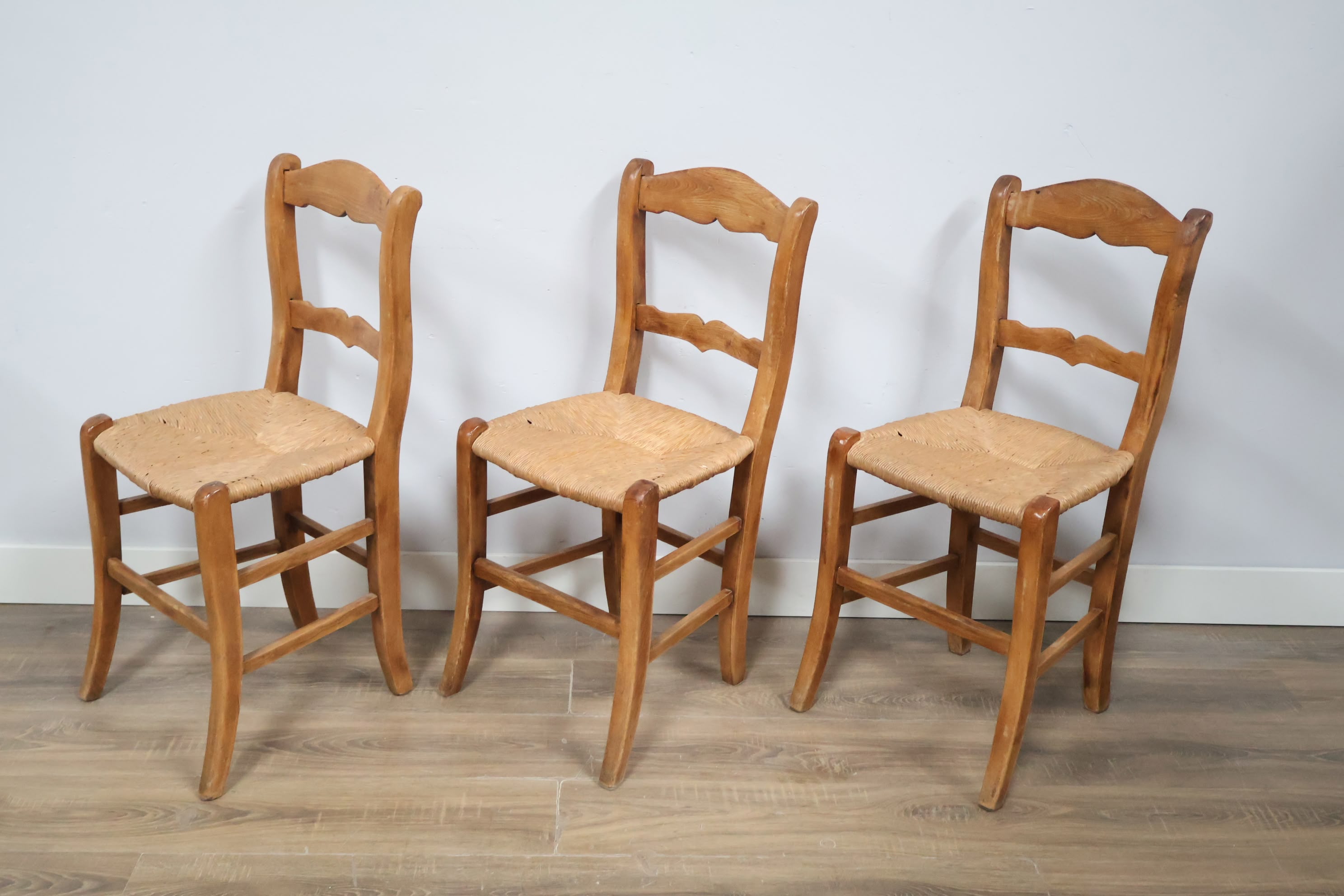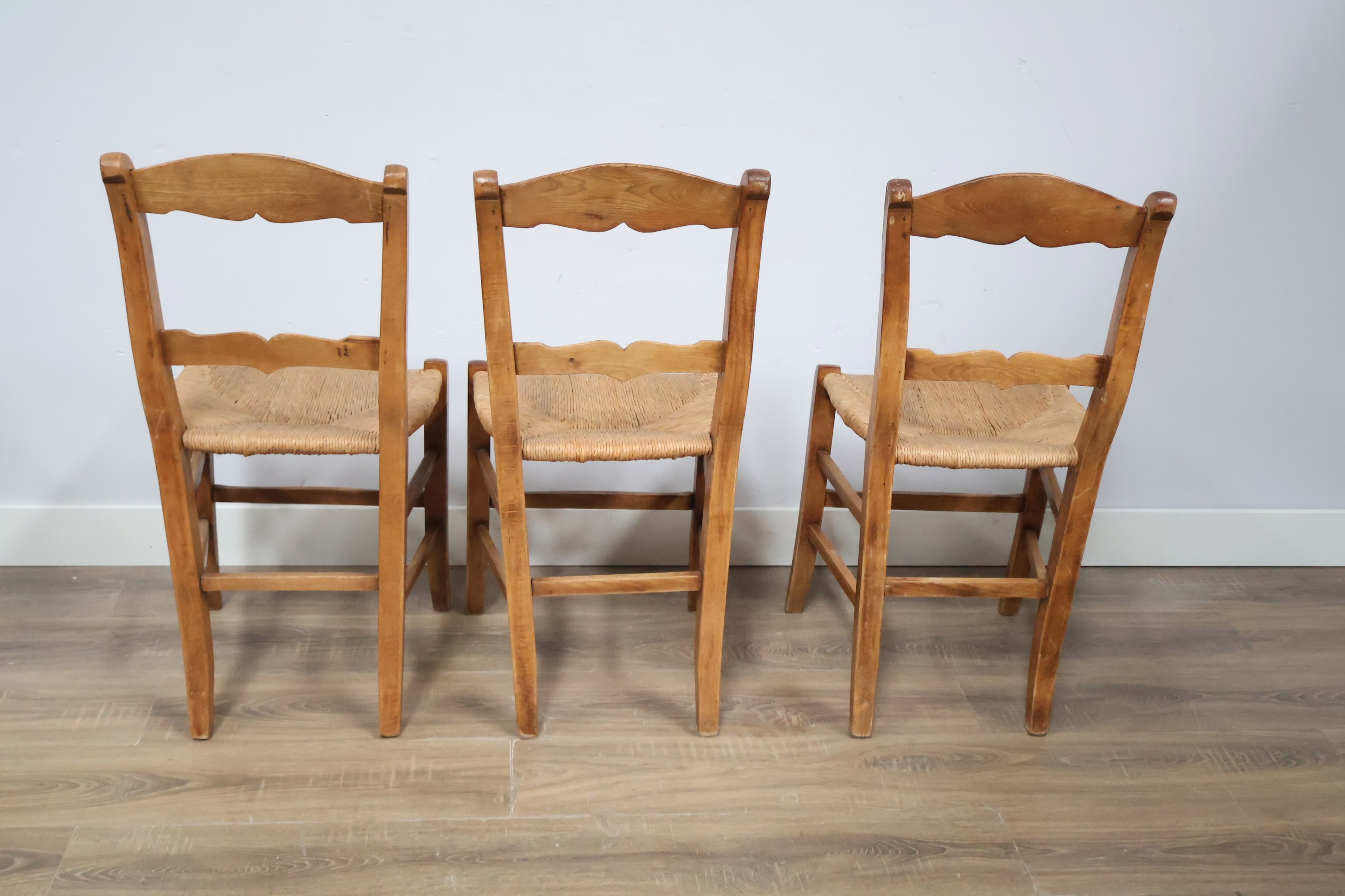 Set van 3 Vintage Eetkamerstoelen met Rieten Zitting