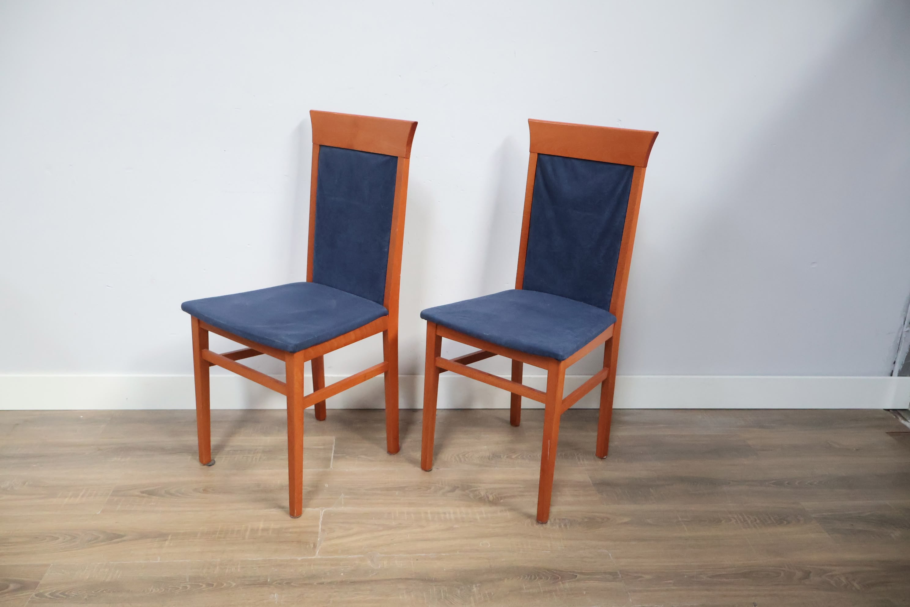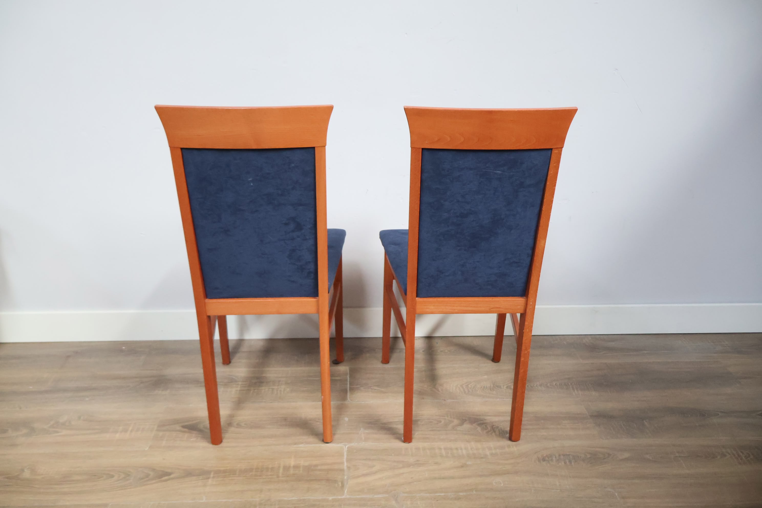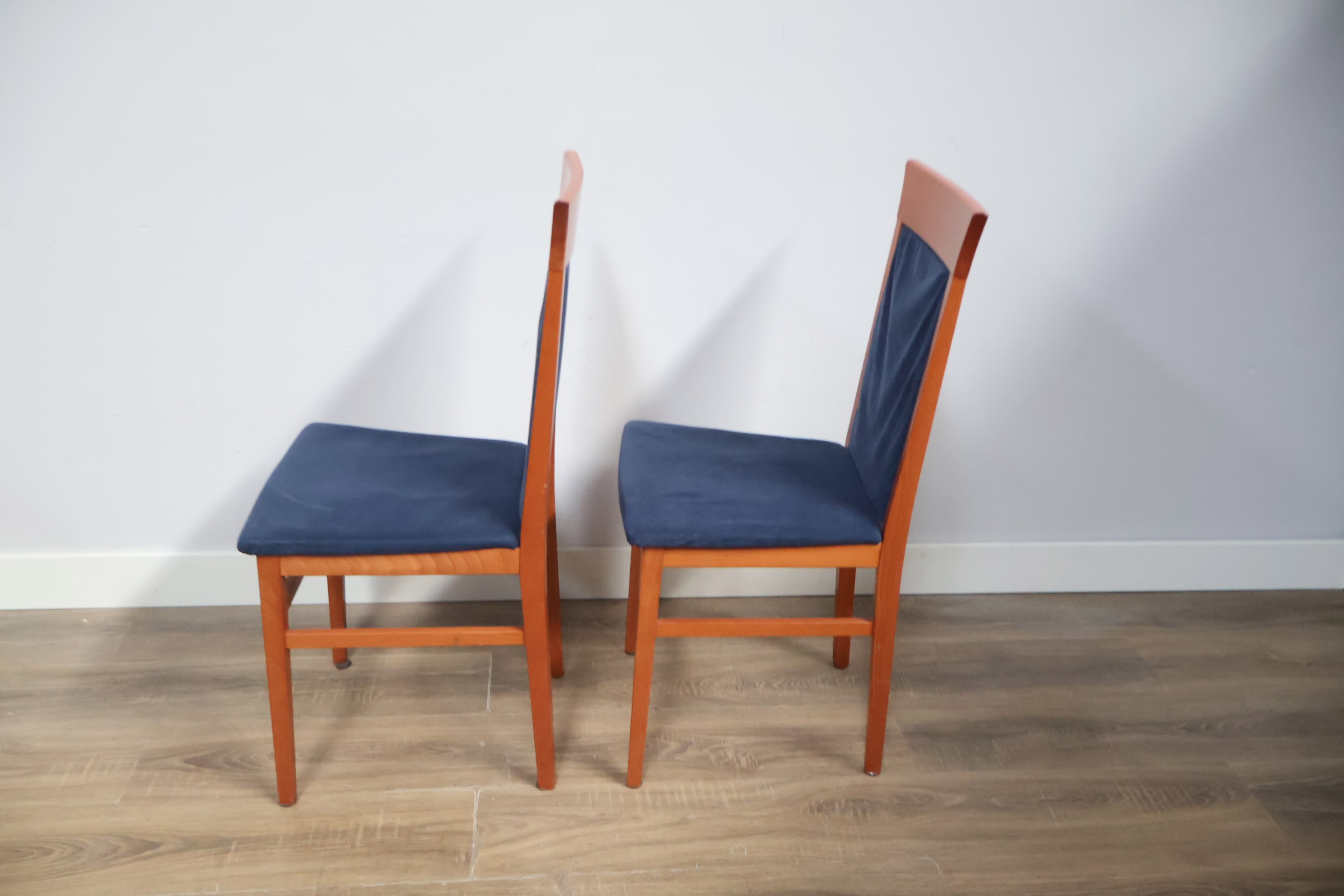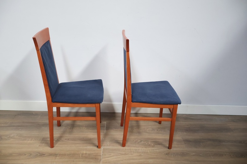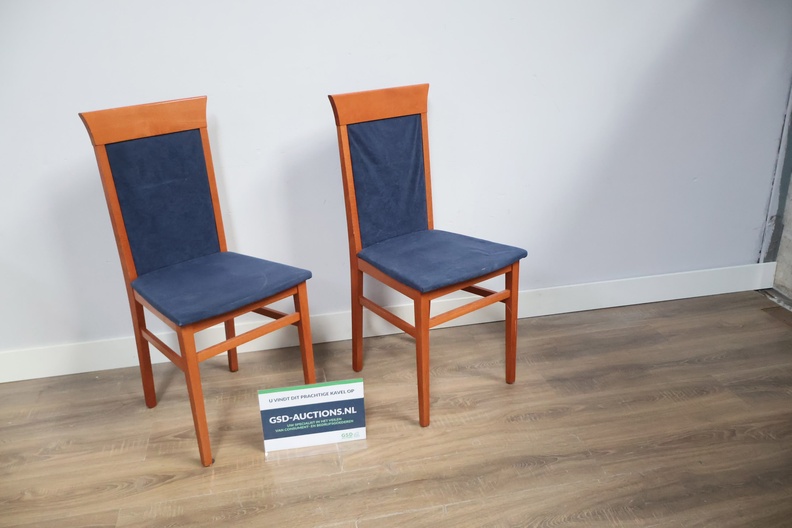 Set van 2 Houten Eetkamerstoelen met Blauwe Bekleding