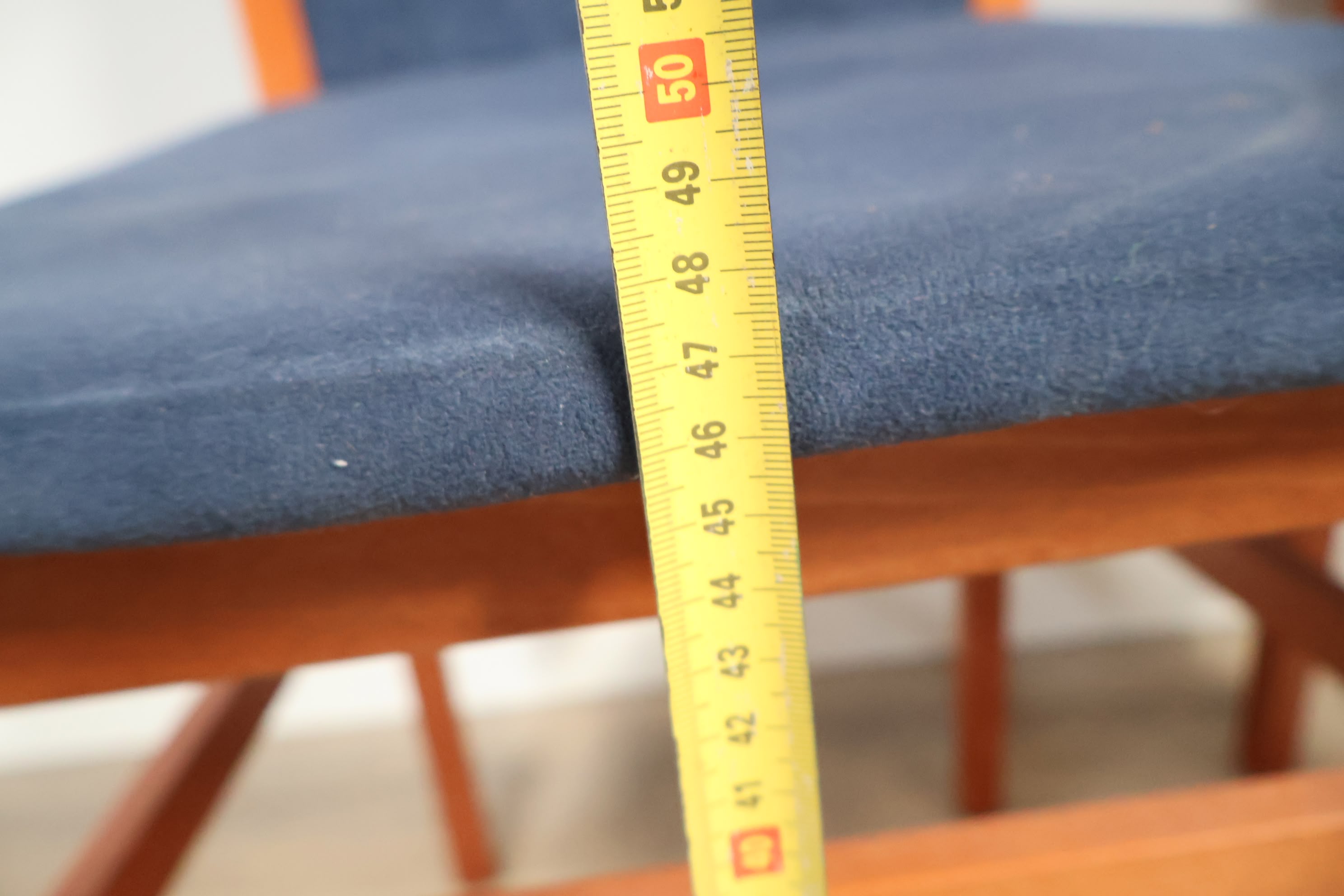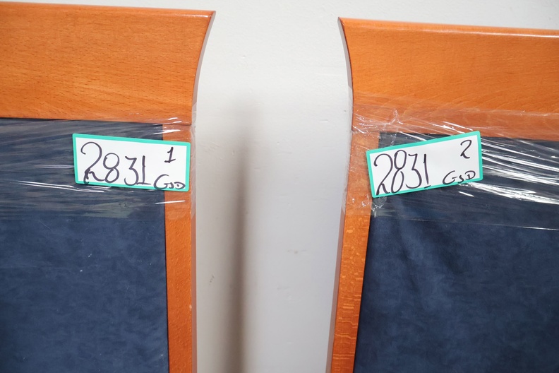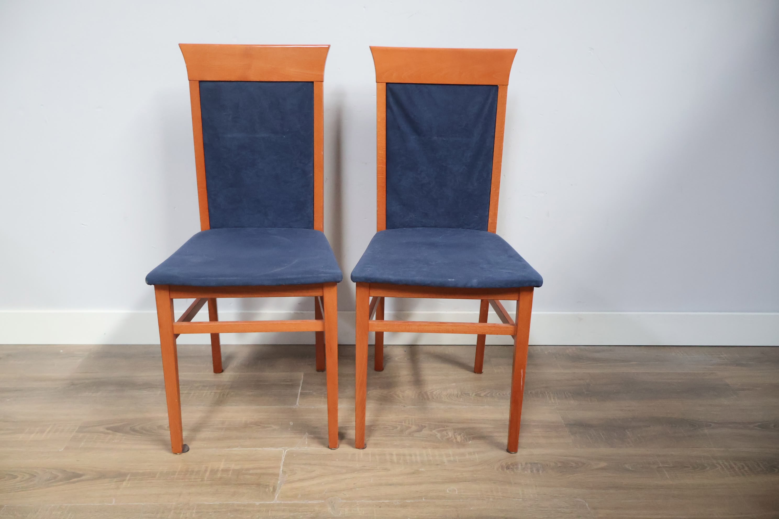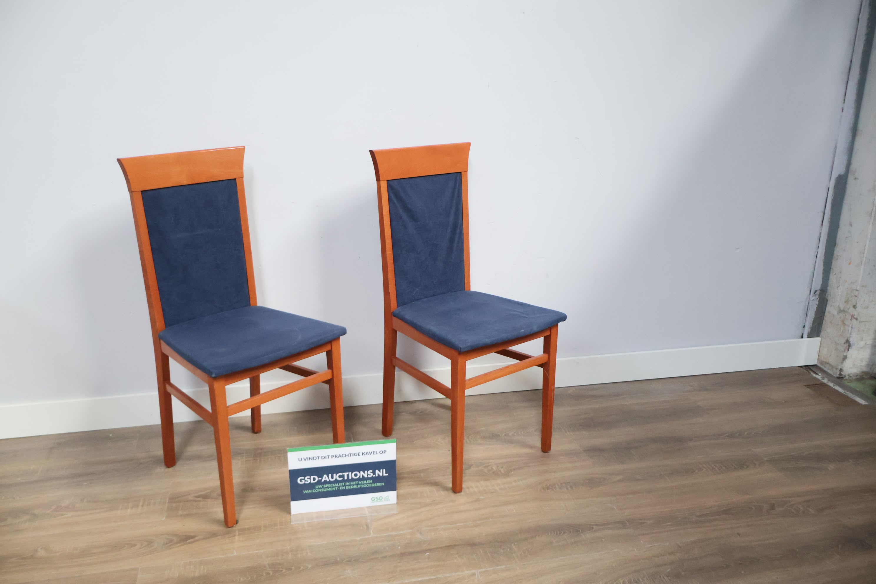 Set van 2 Houten Eetkamerstoelen met Blauwe Bekleding