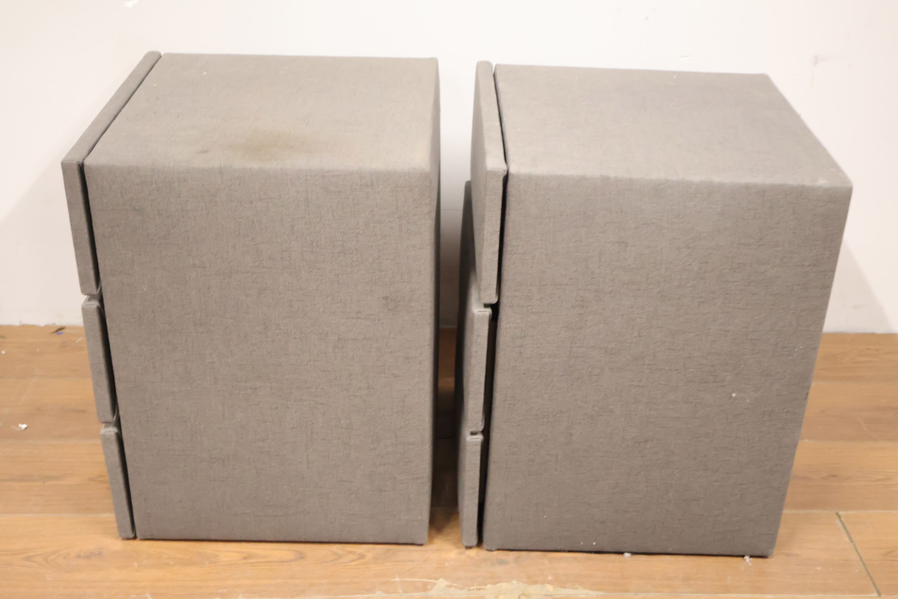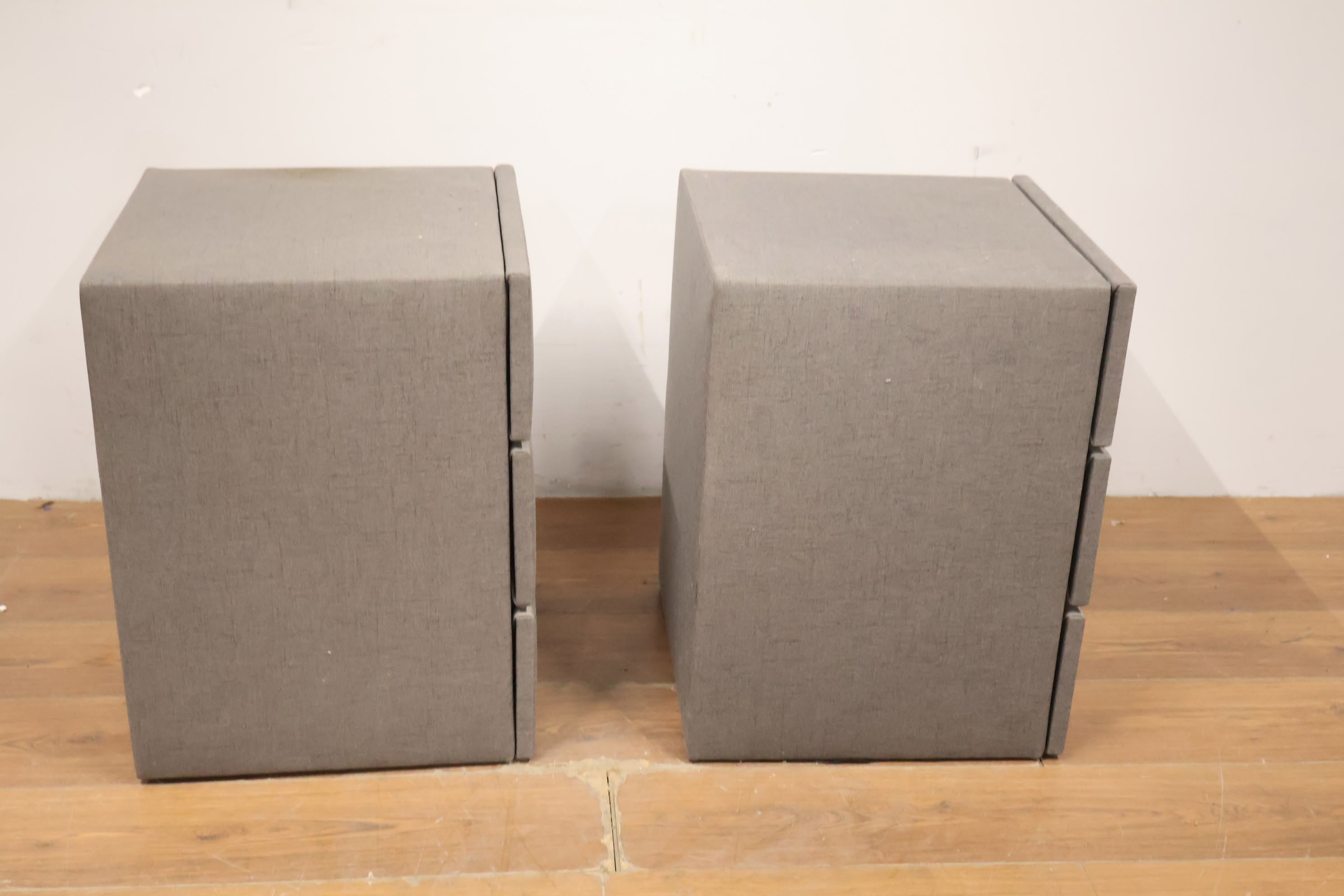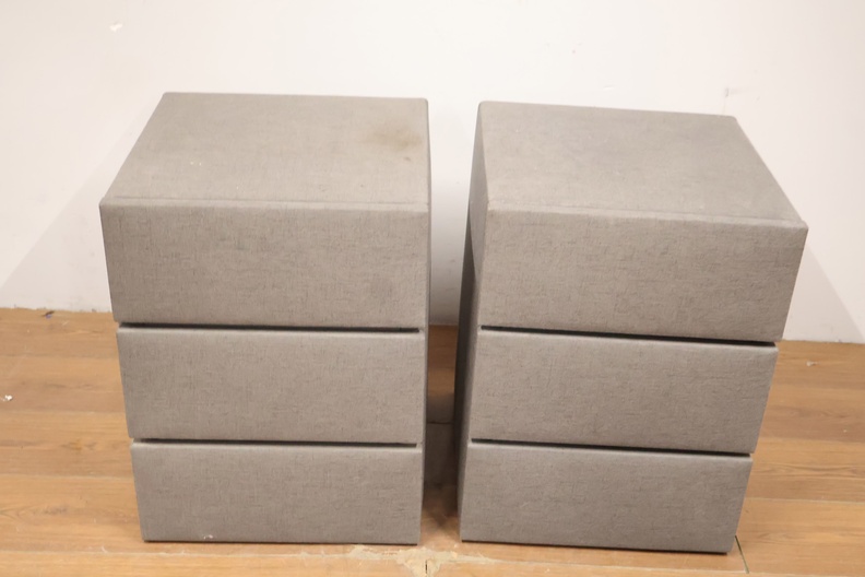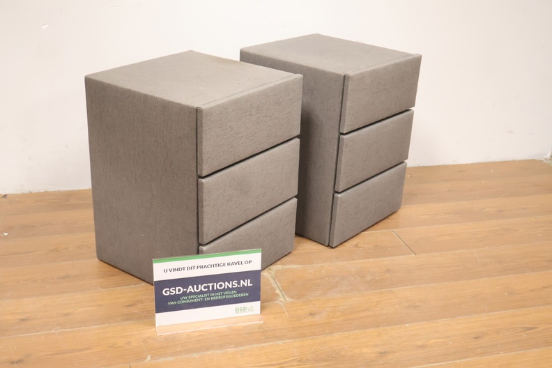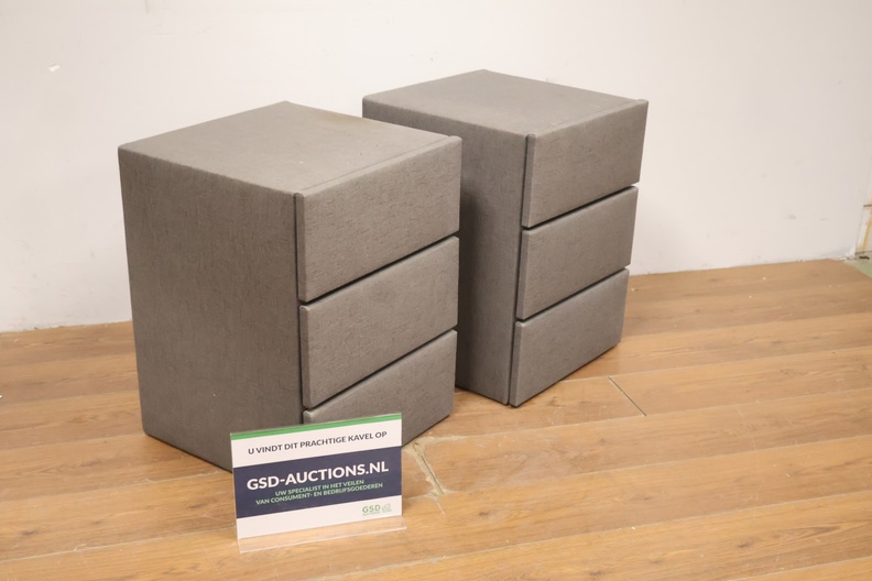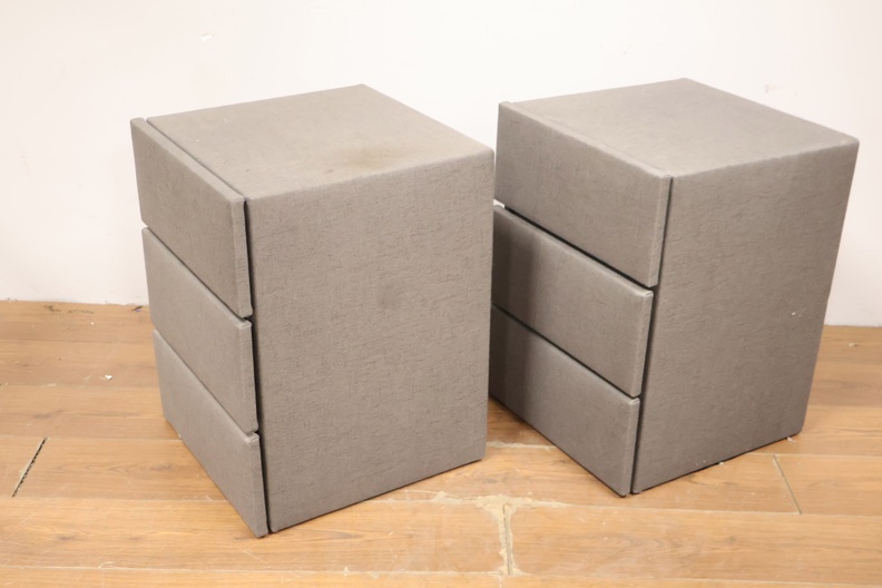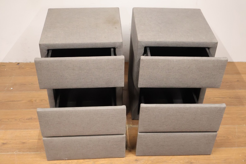 Set van 2 Grijs Gestoffeerde Nachtkasten met 3-Lades