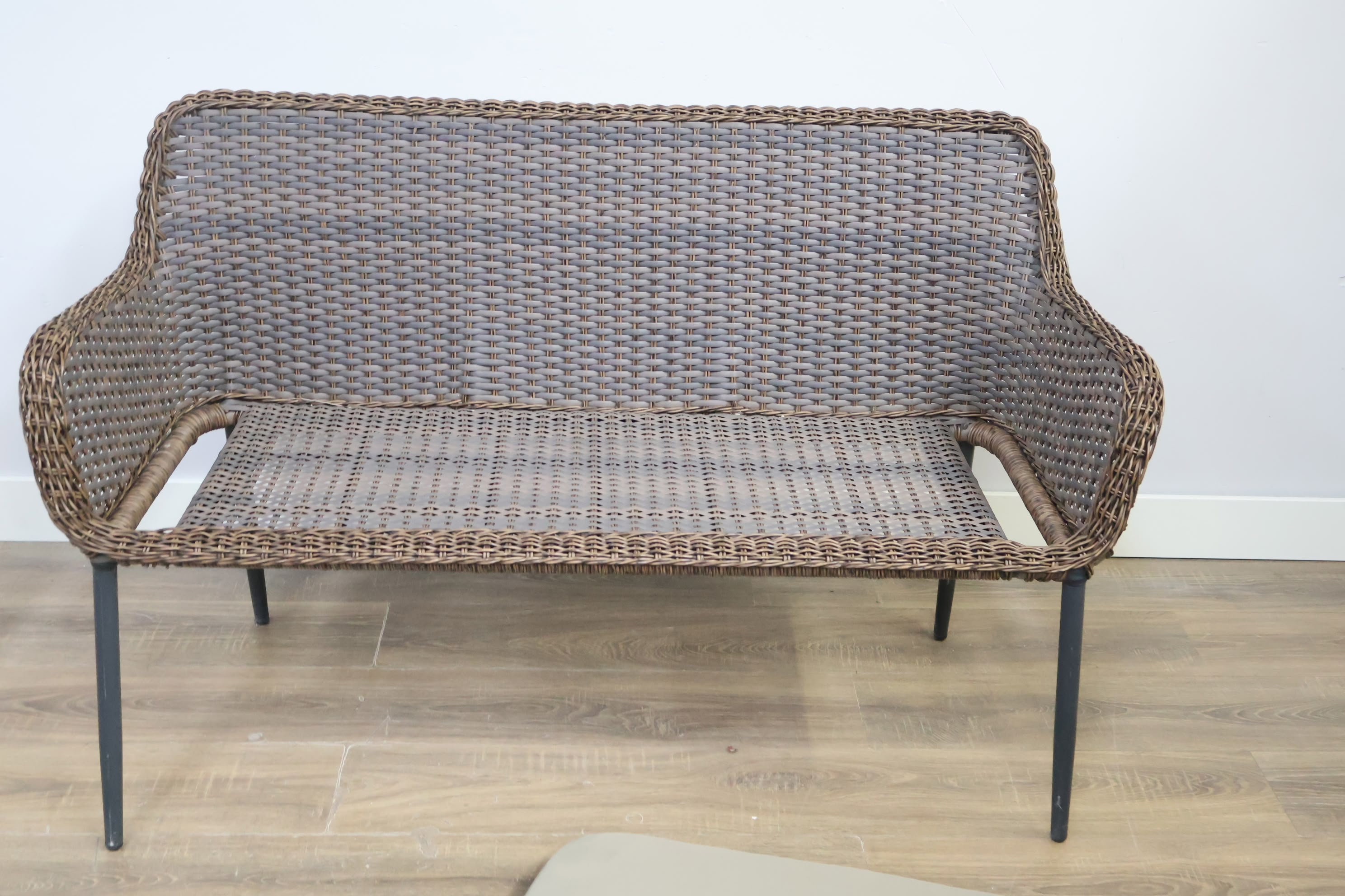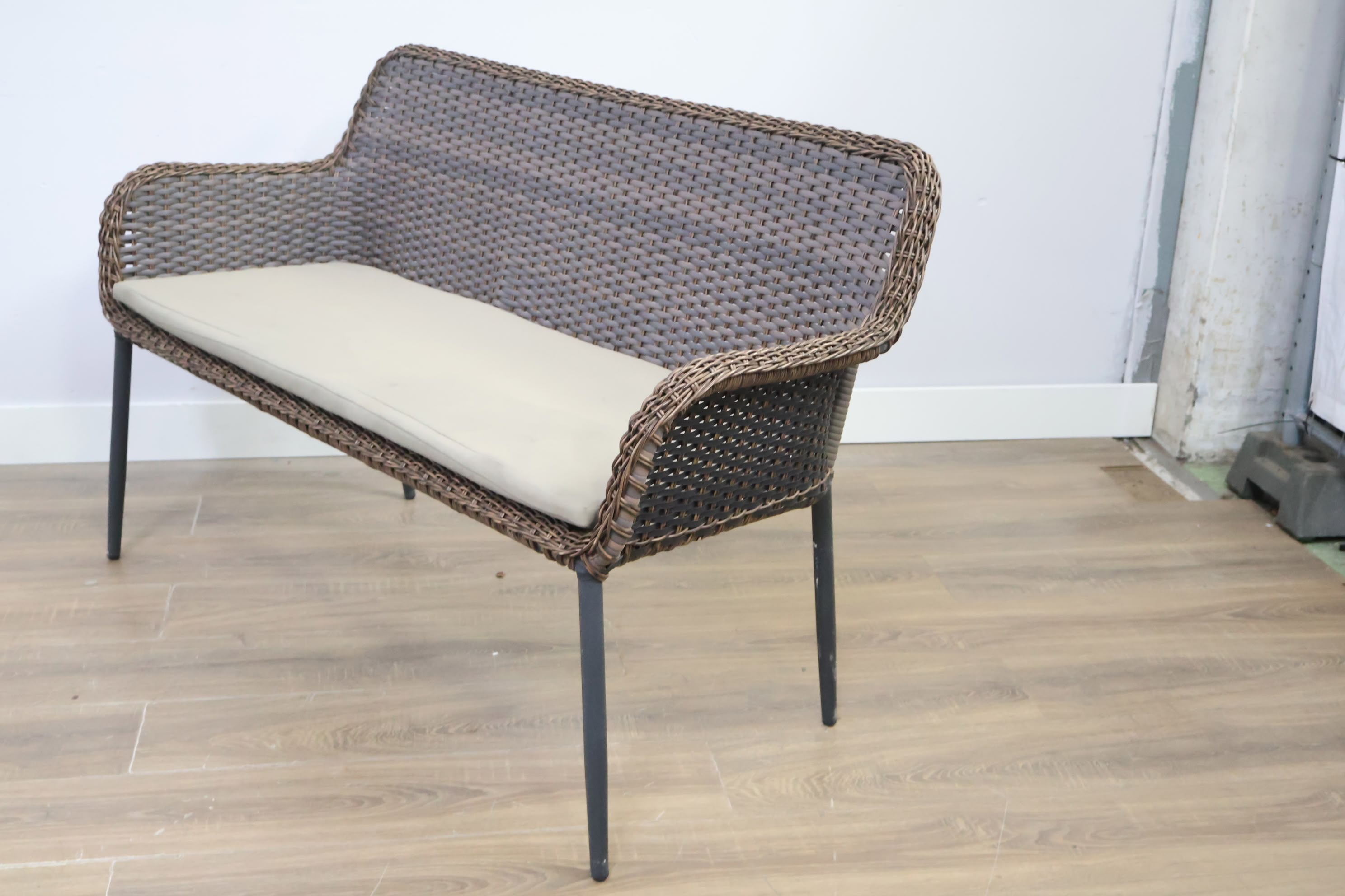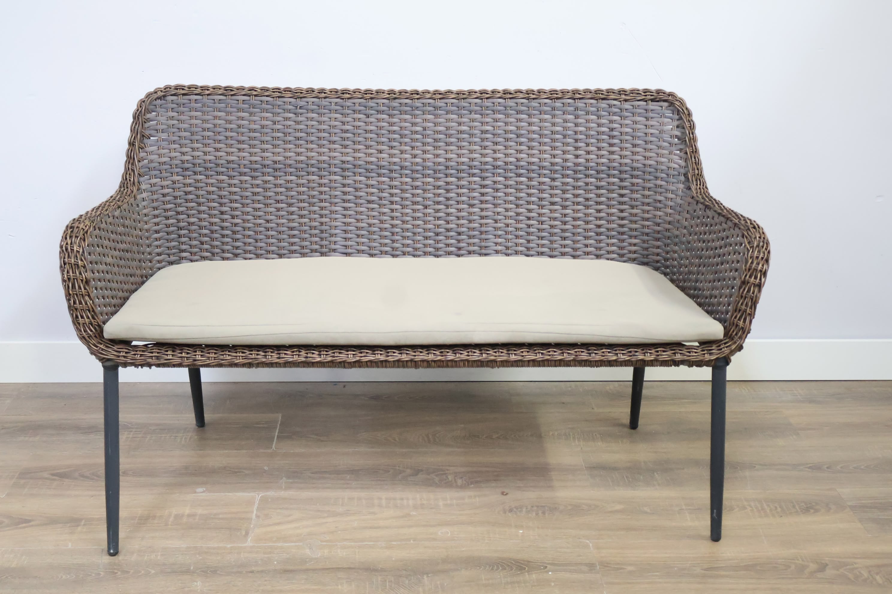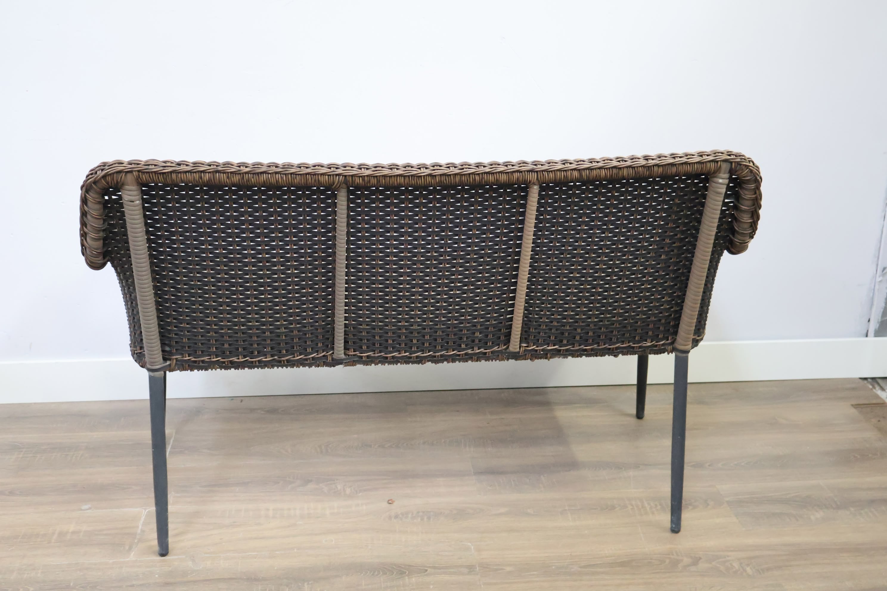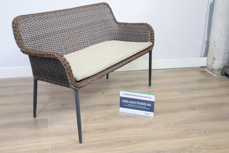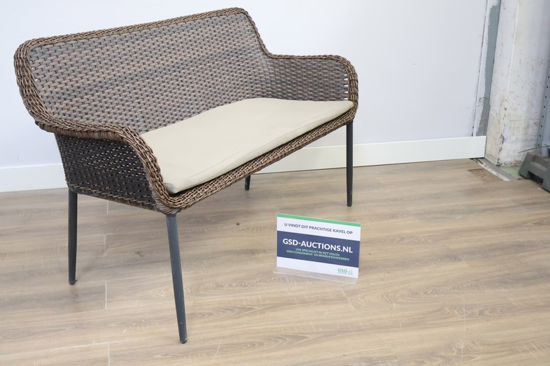 Rieten 2-Zits Tuinbank met Zwart Frame