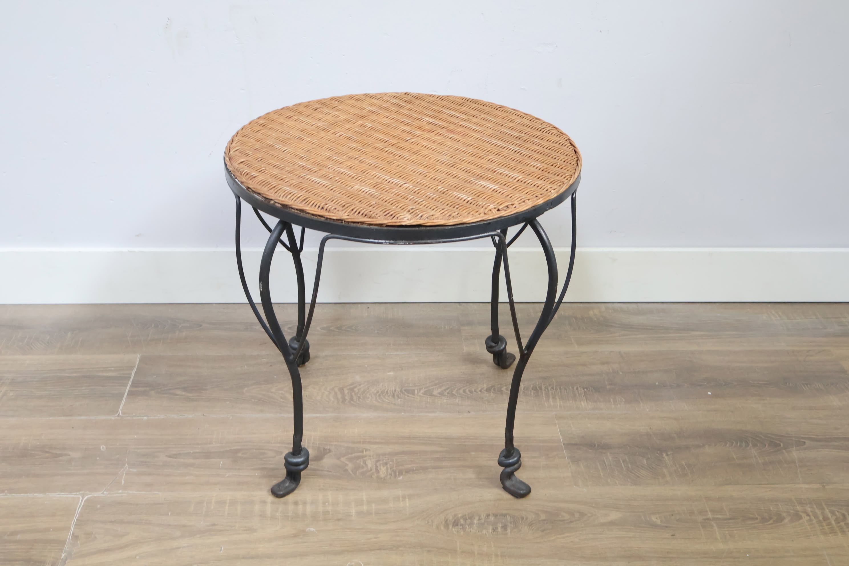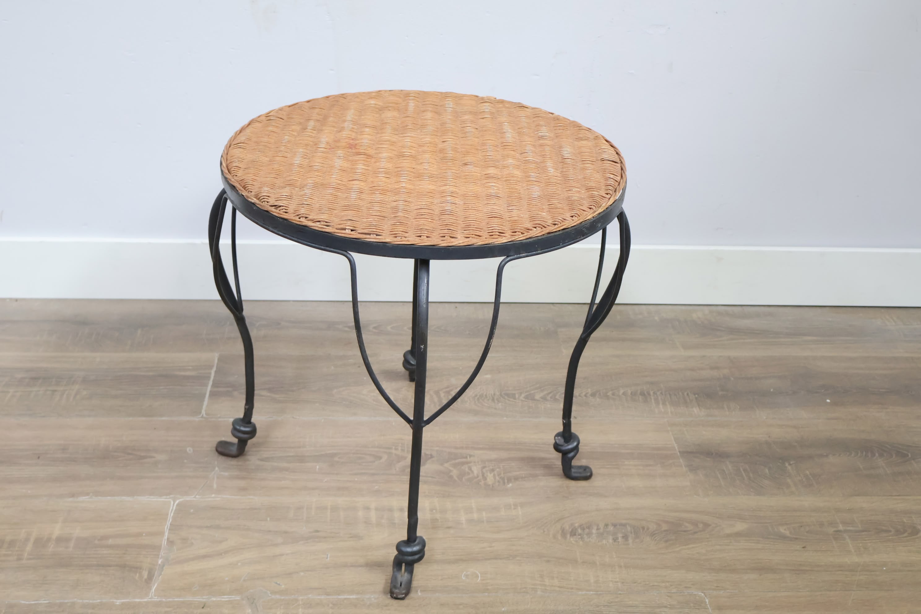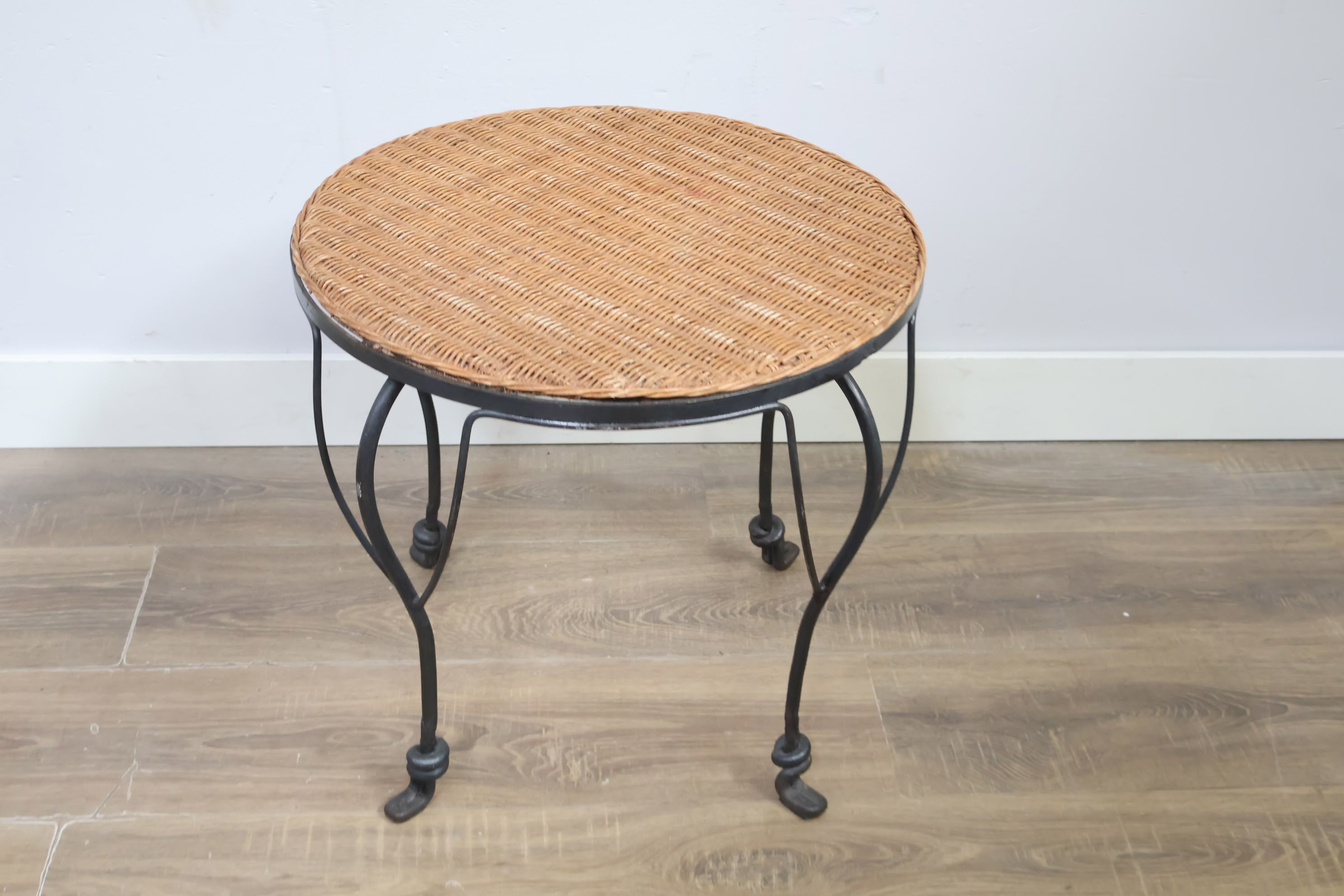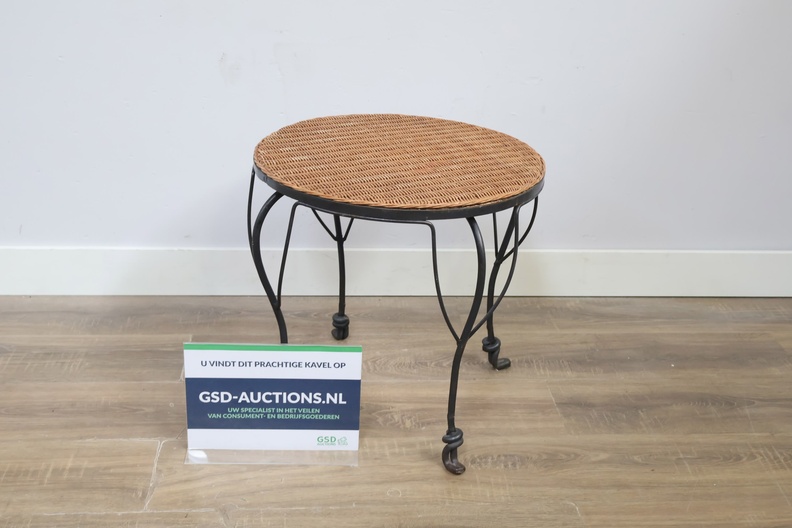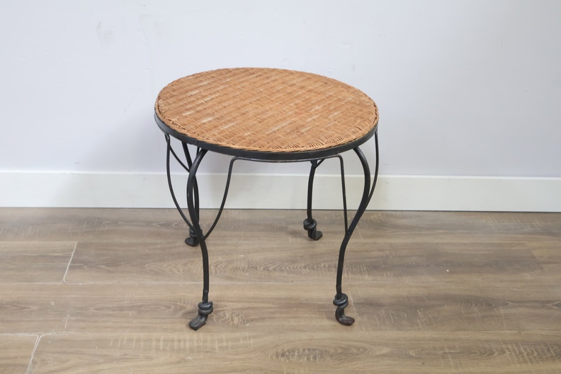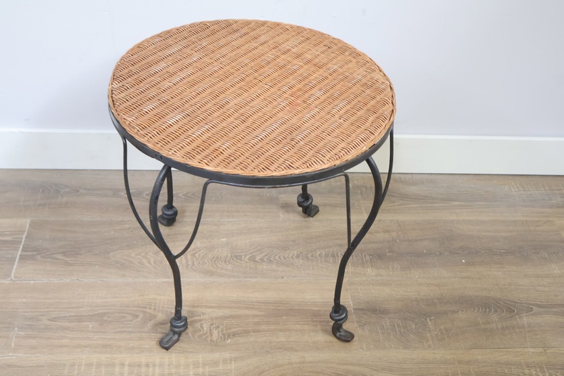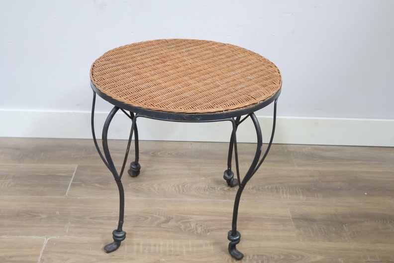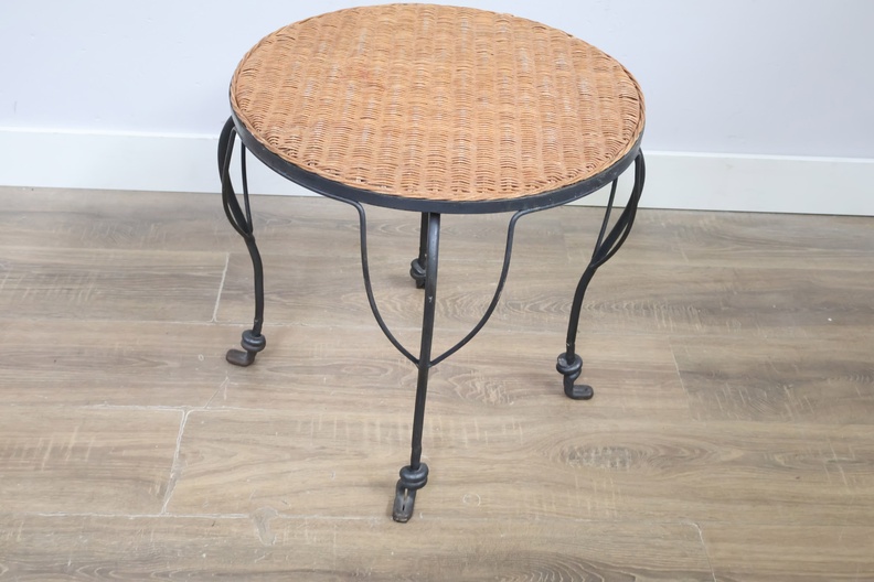 Vintage Smeedijzeren Bijzettafel met Rotan Blad