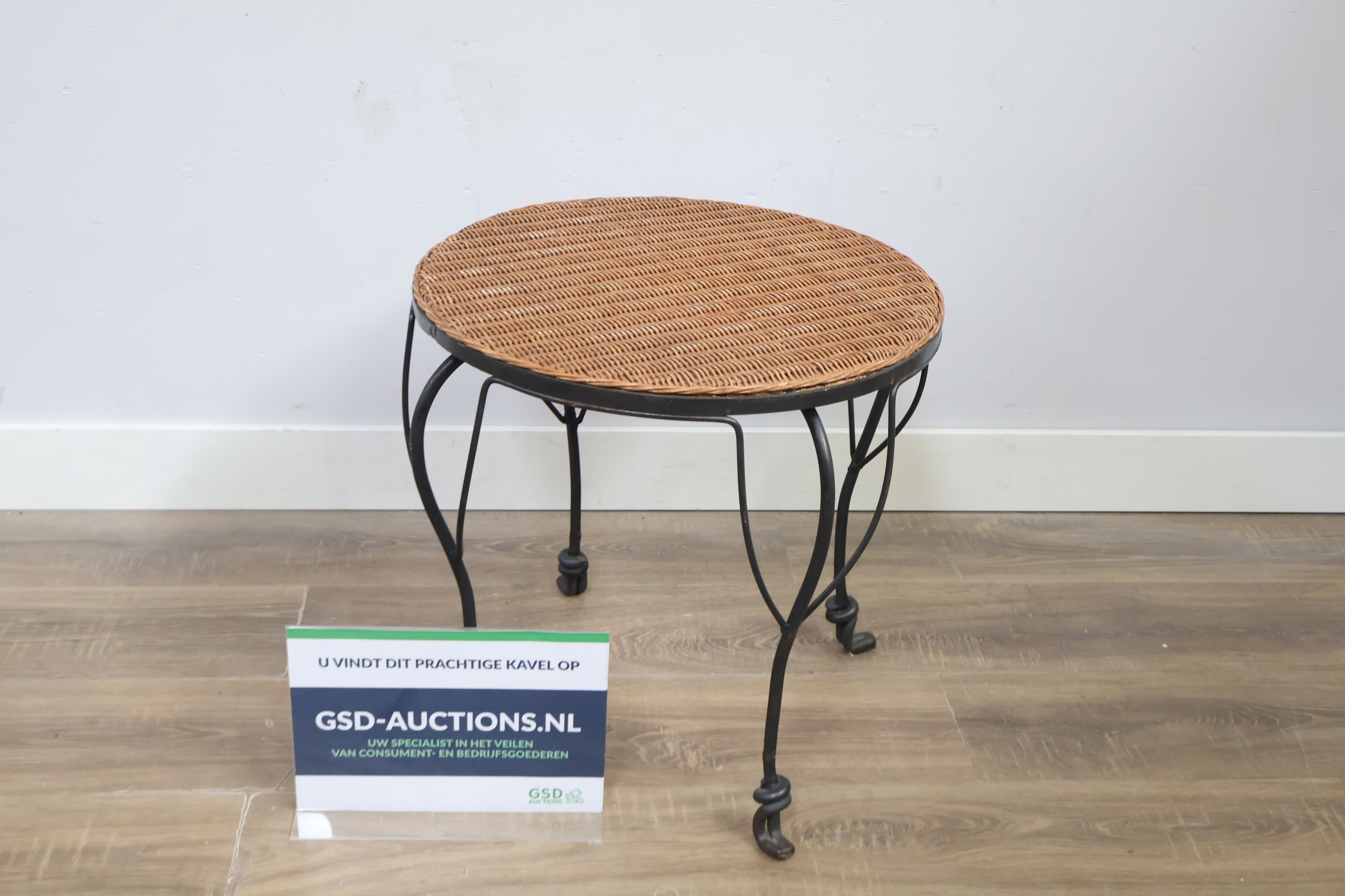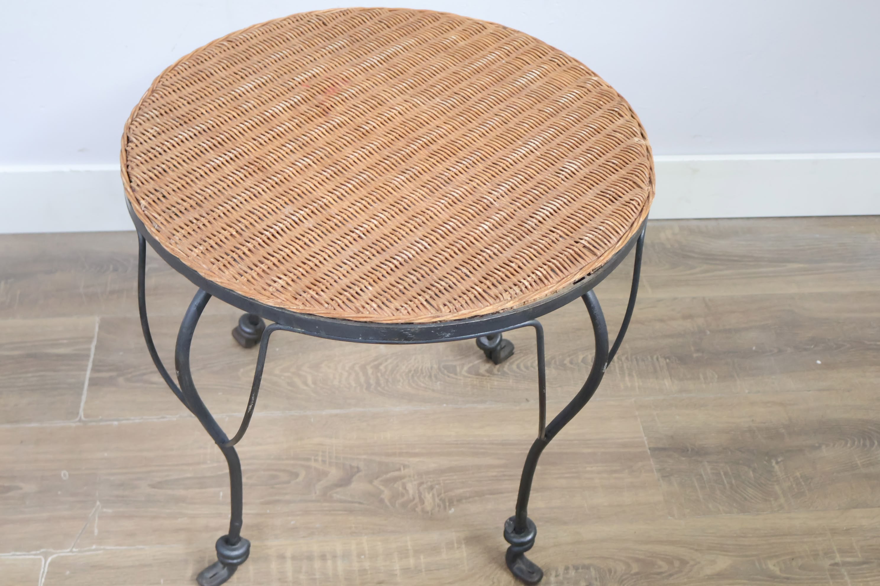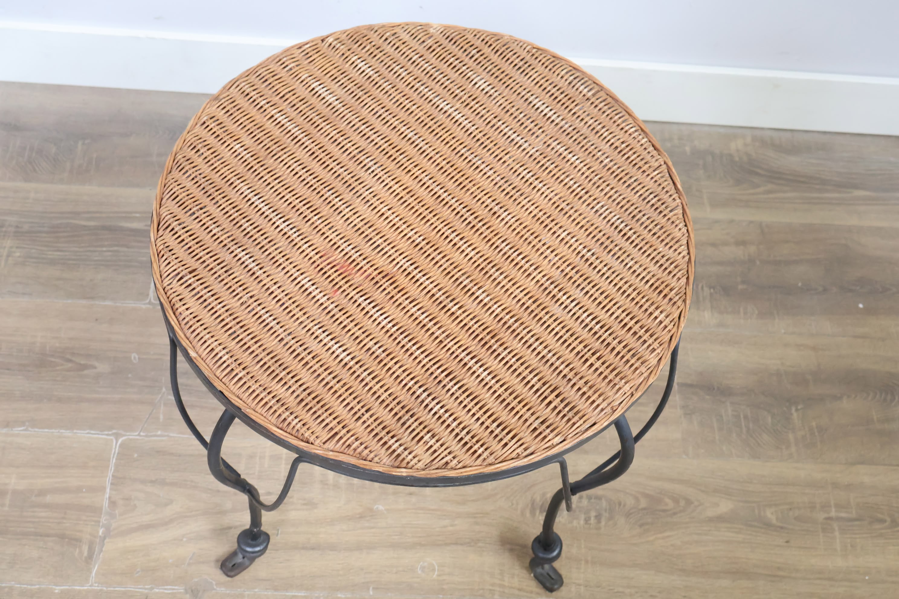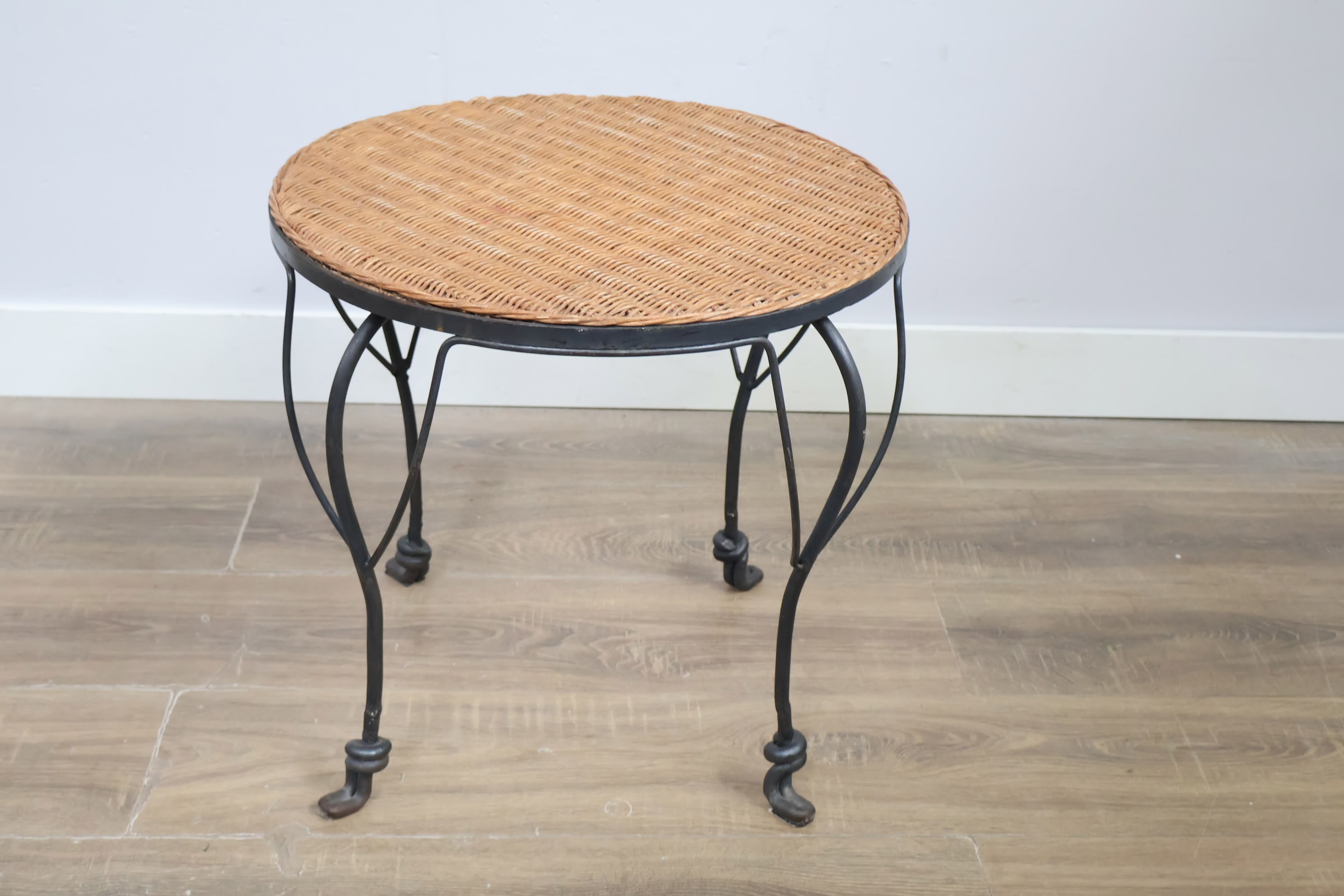 Vintage Smeedijzeren Bijzettafel met Rotan Blad