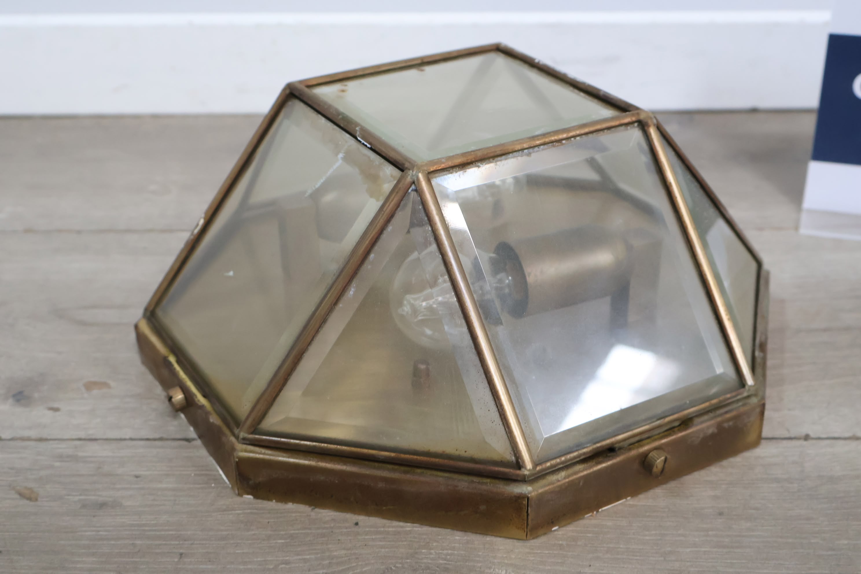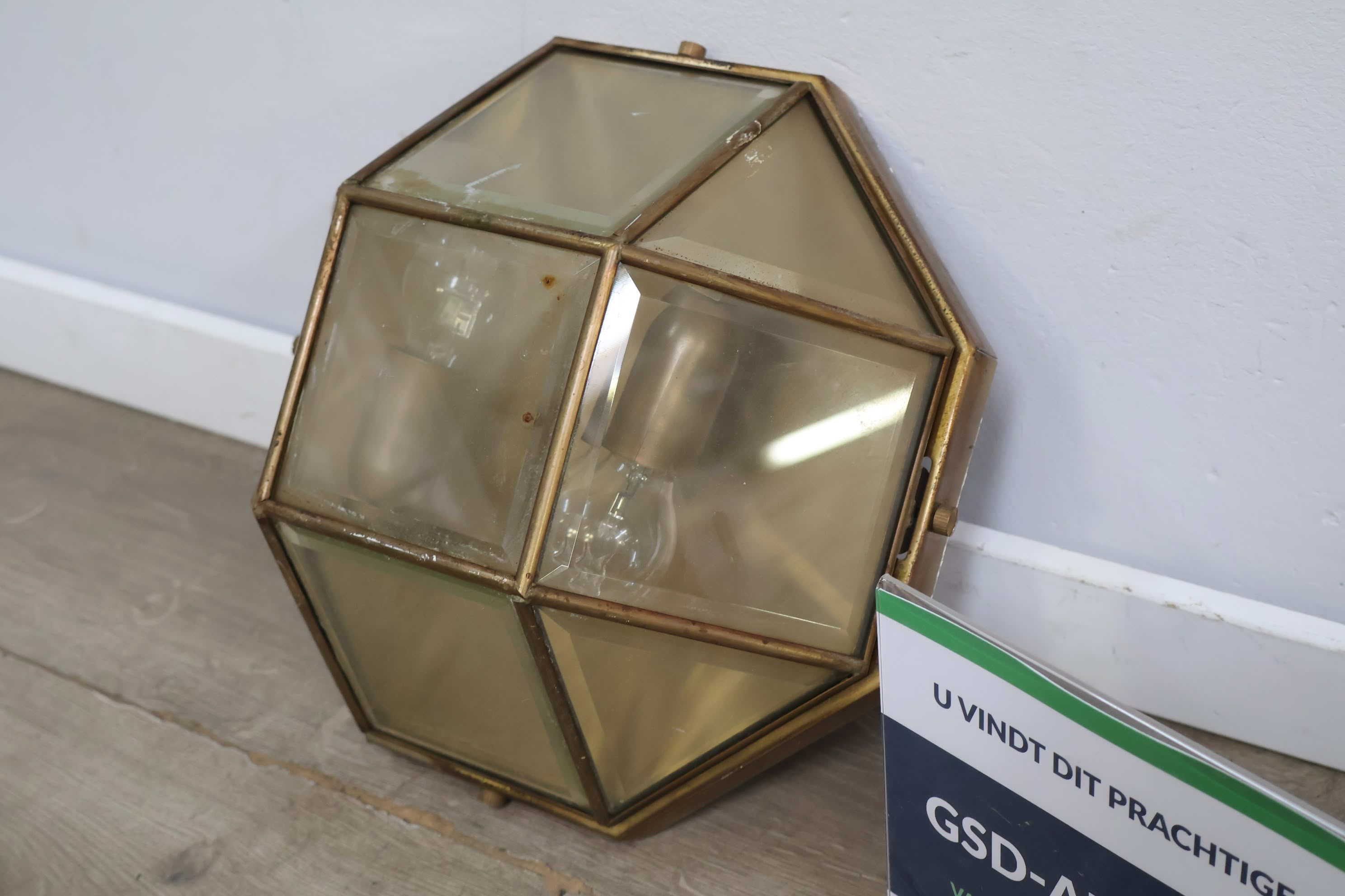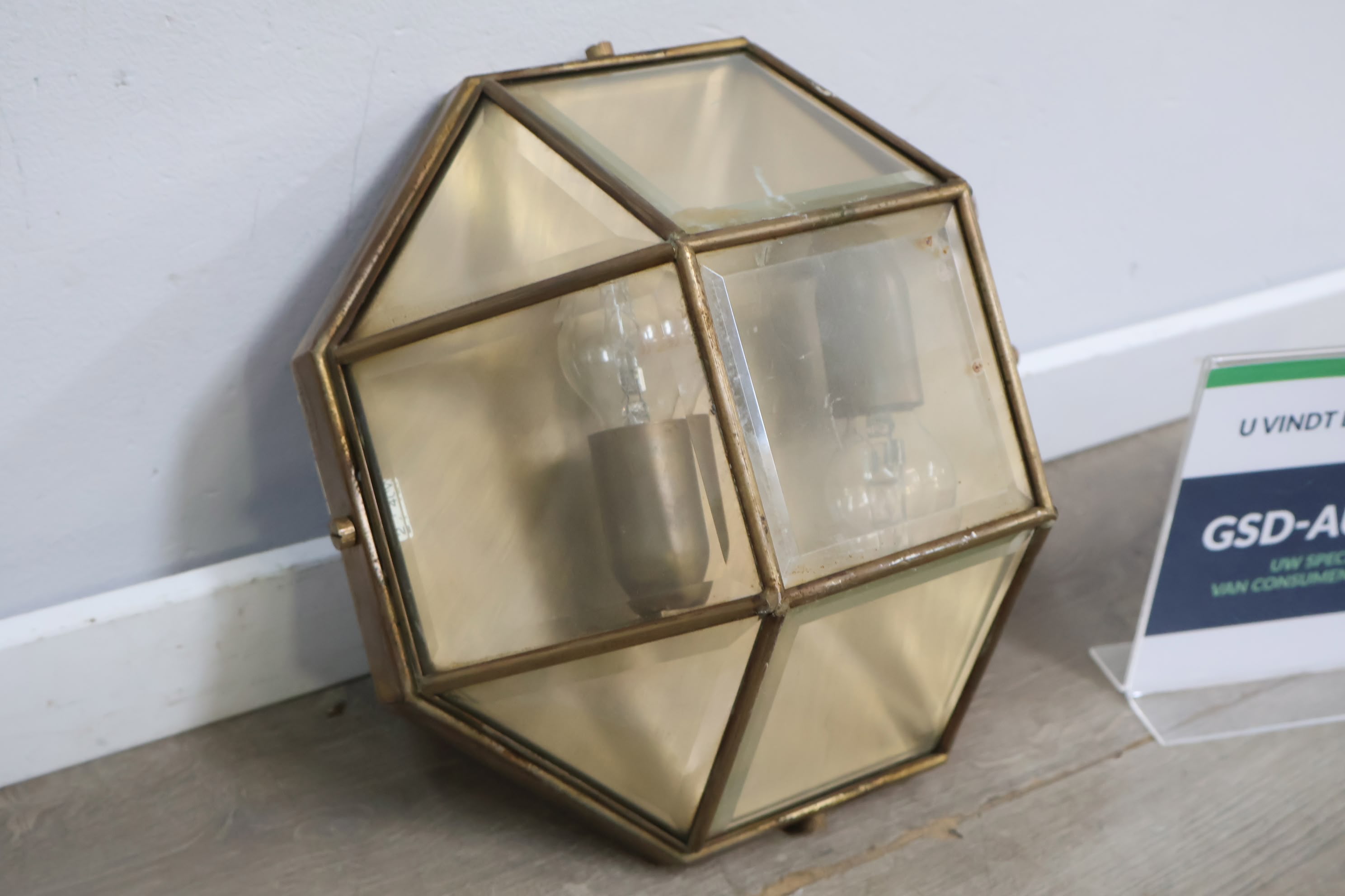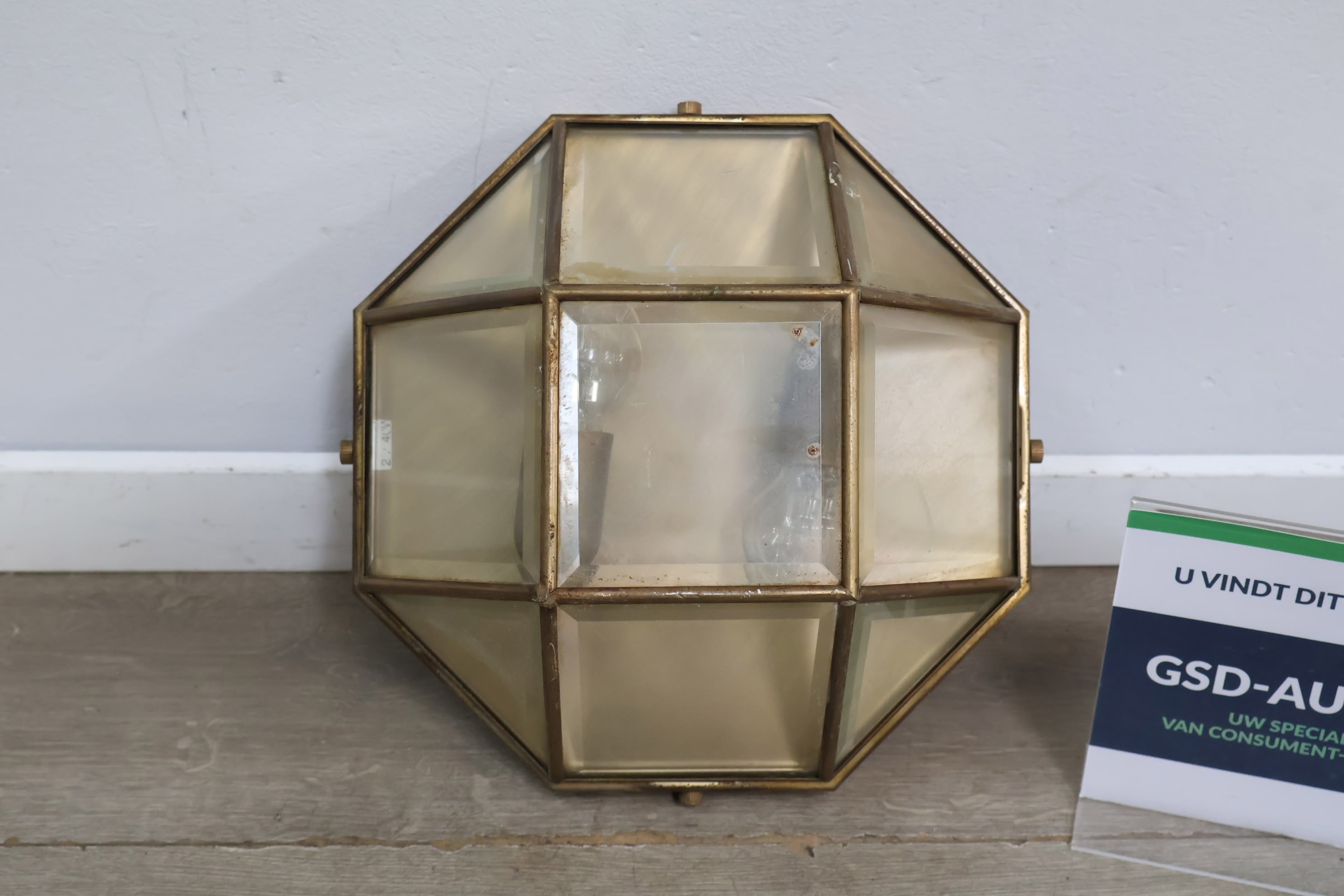 Vintage Art-Deco Wandlamp van Glas & Messing