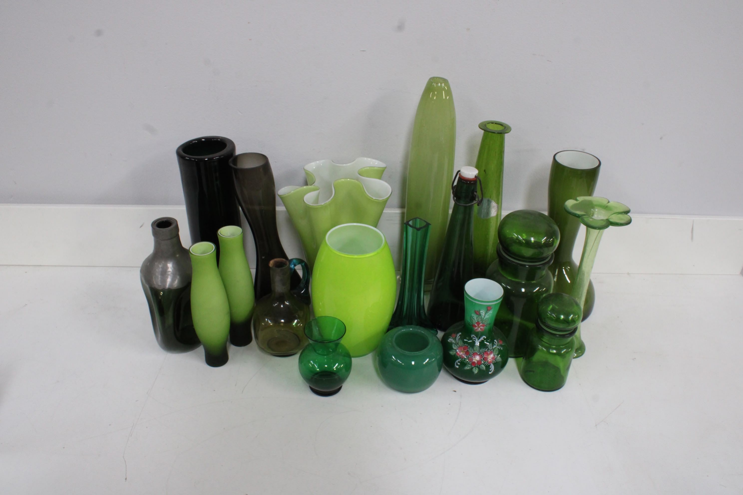 Verzameling van 19-Stuks Decoratief Groen Glaswerk
