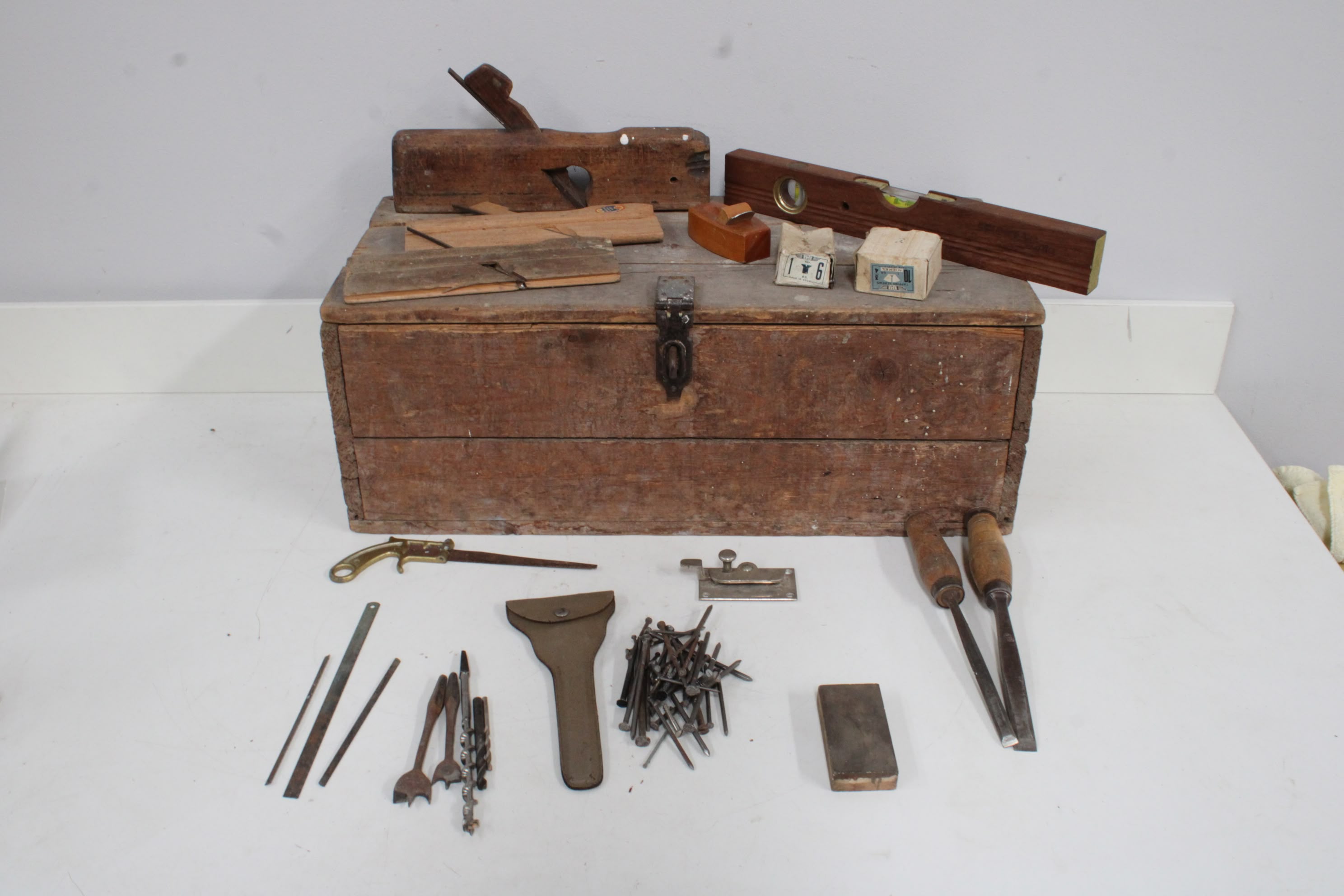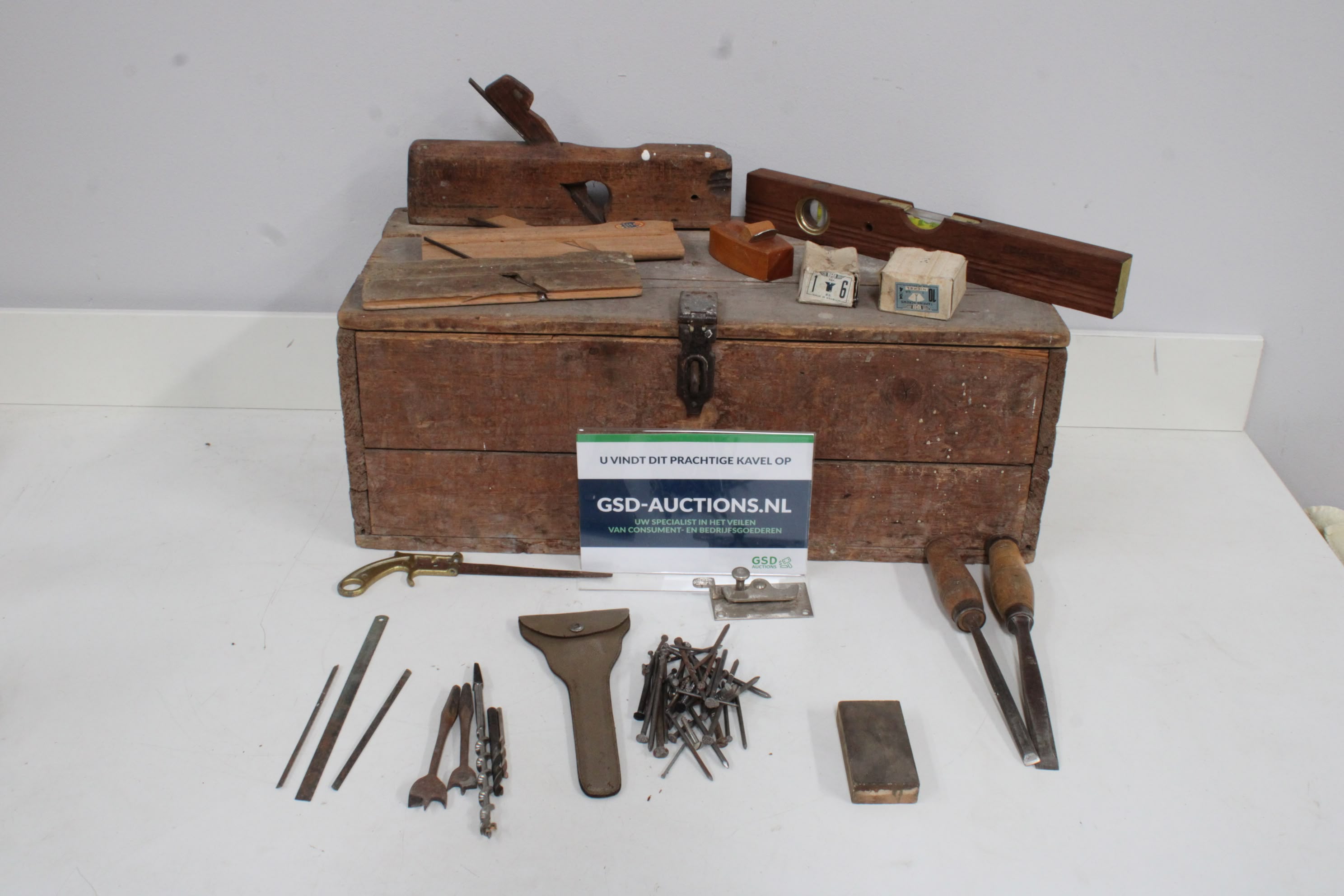 Antiek Houten Gereedschapskist met Inhoud