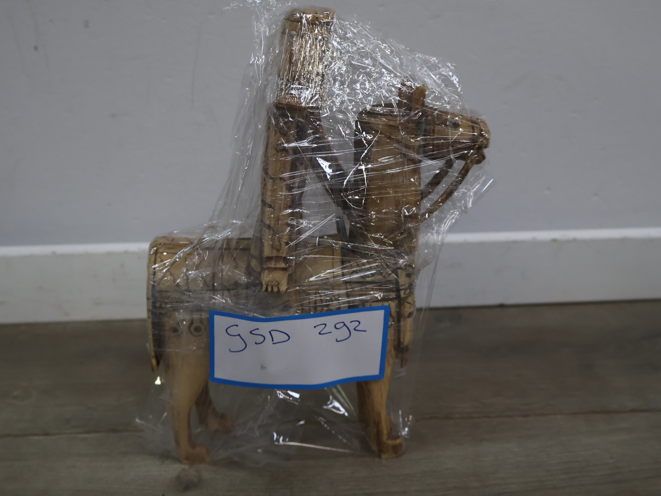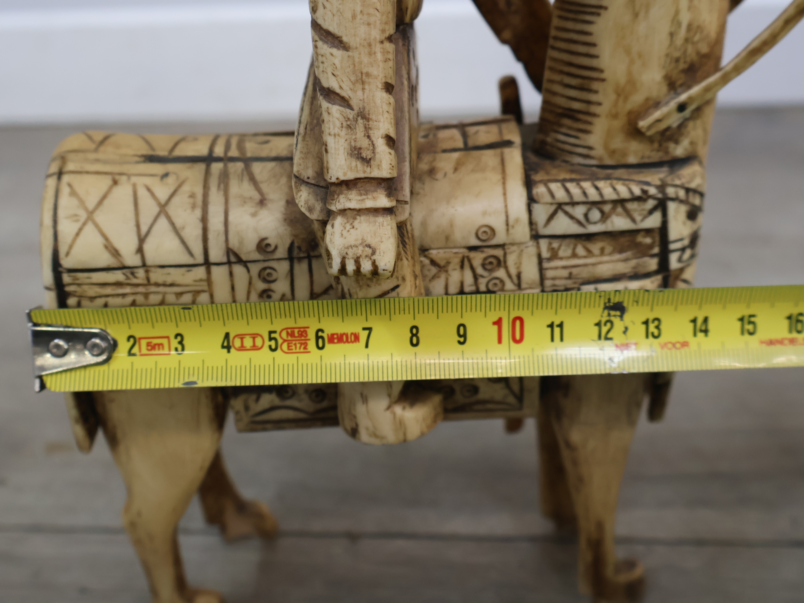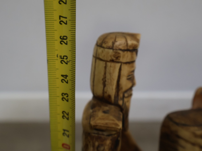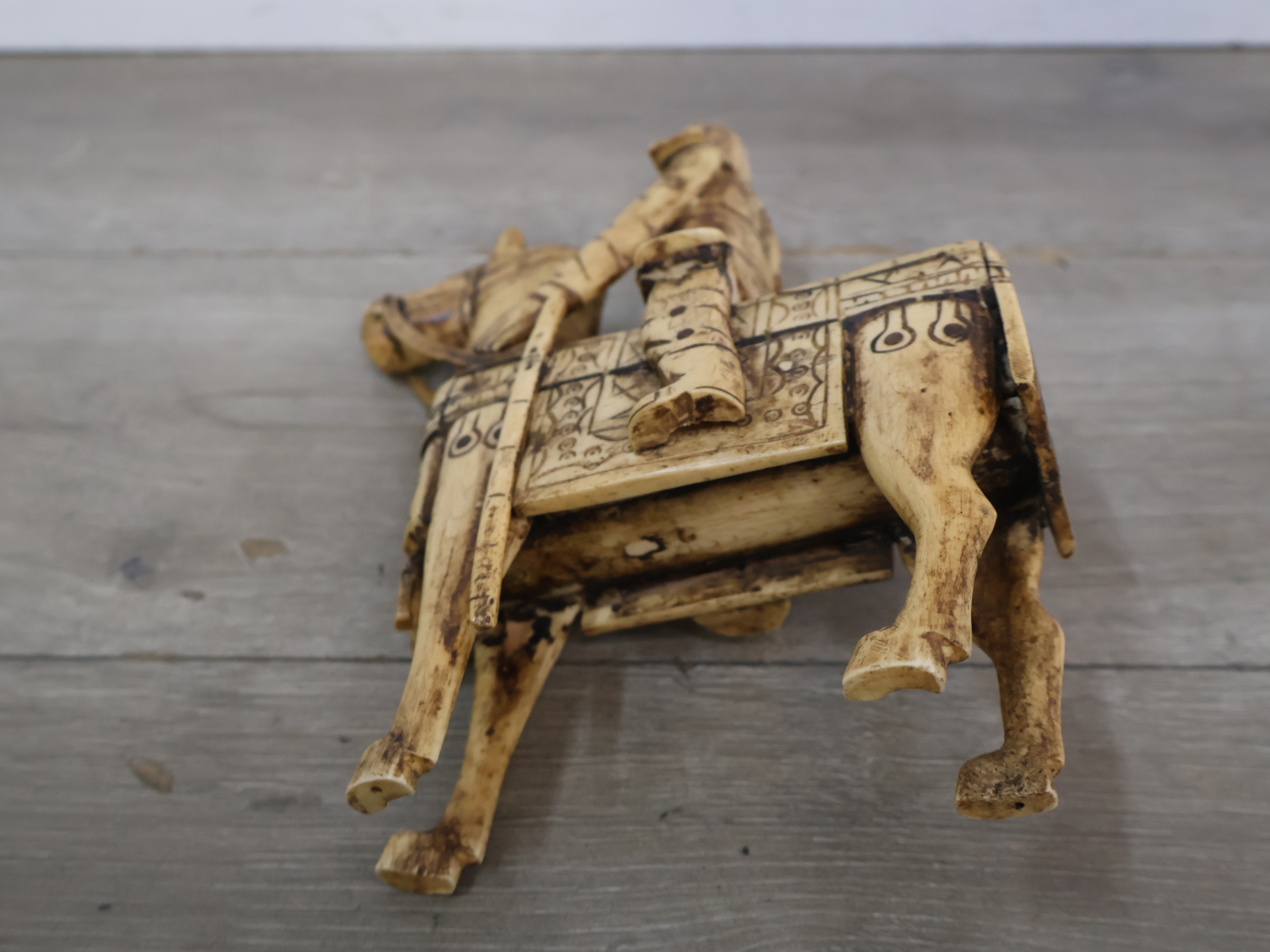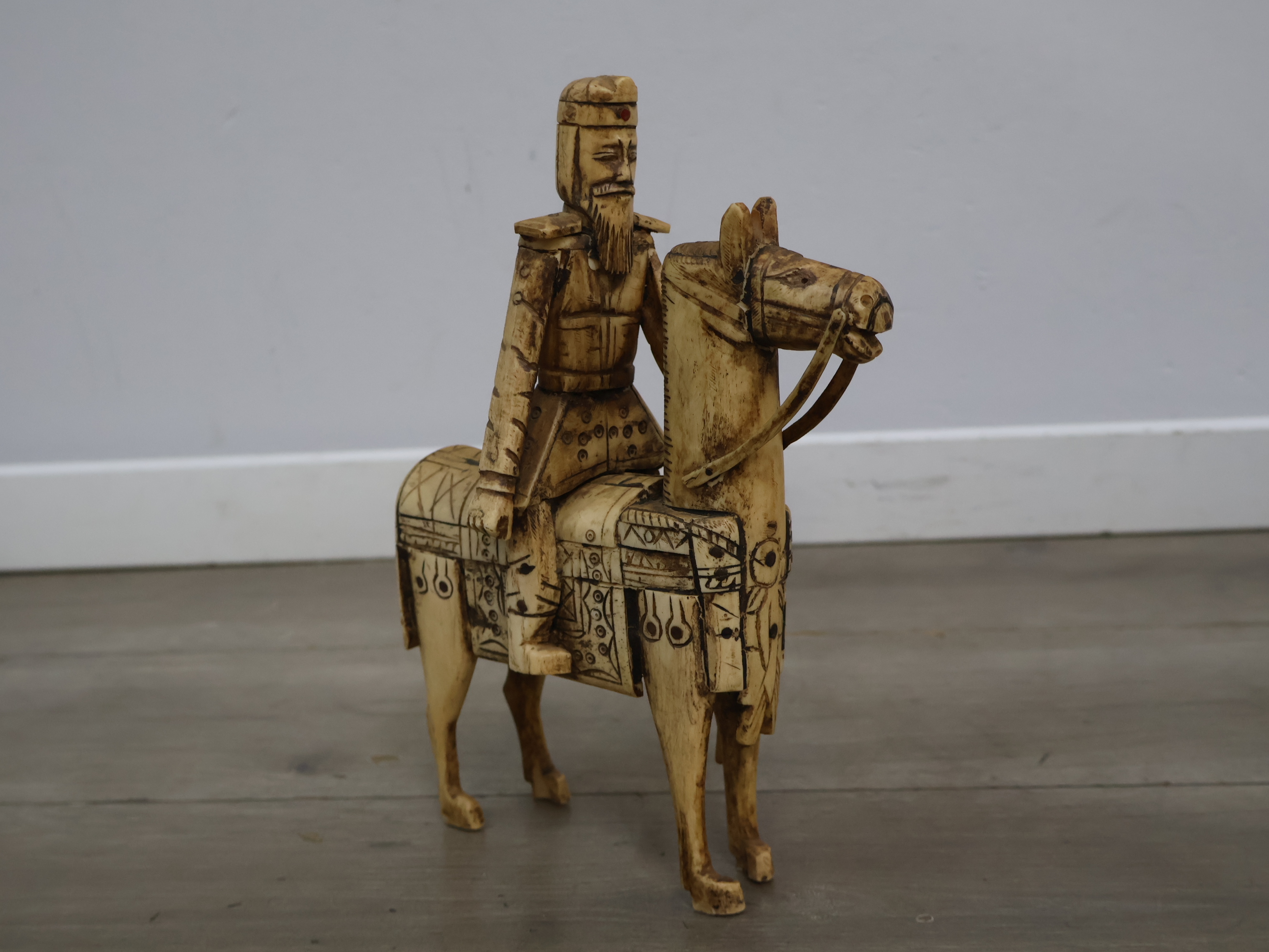 Houten snijkunst beeldje van een ruiter en paard