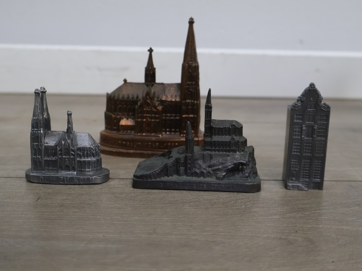 Metalen miniaturen van monumenten en kathedralen 4 stuks