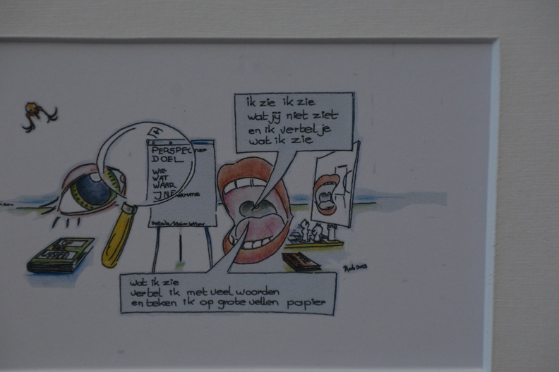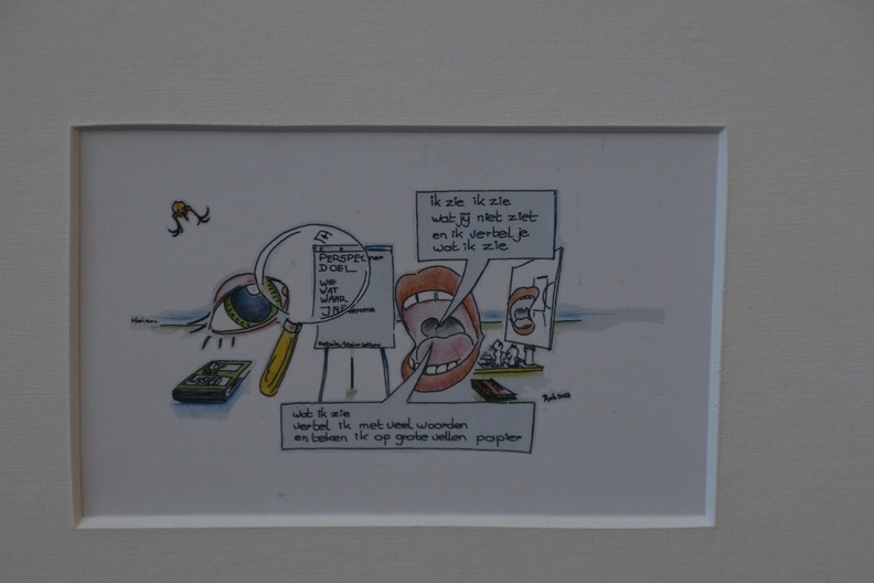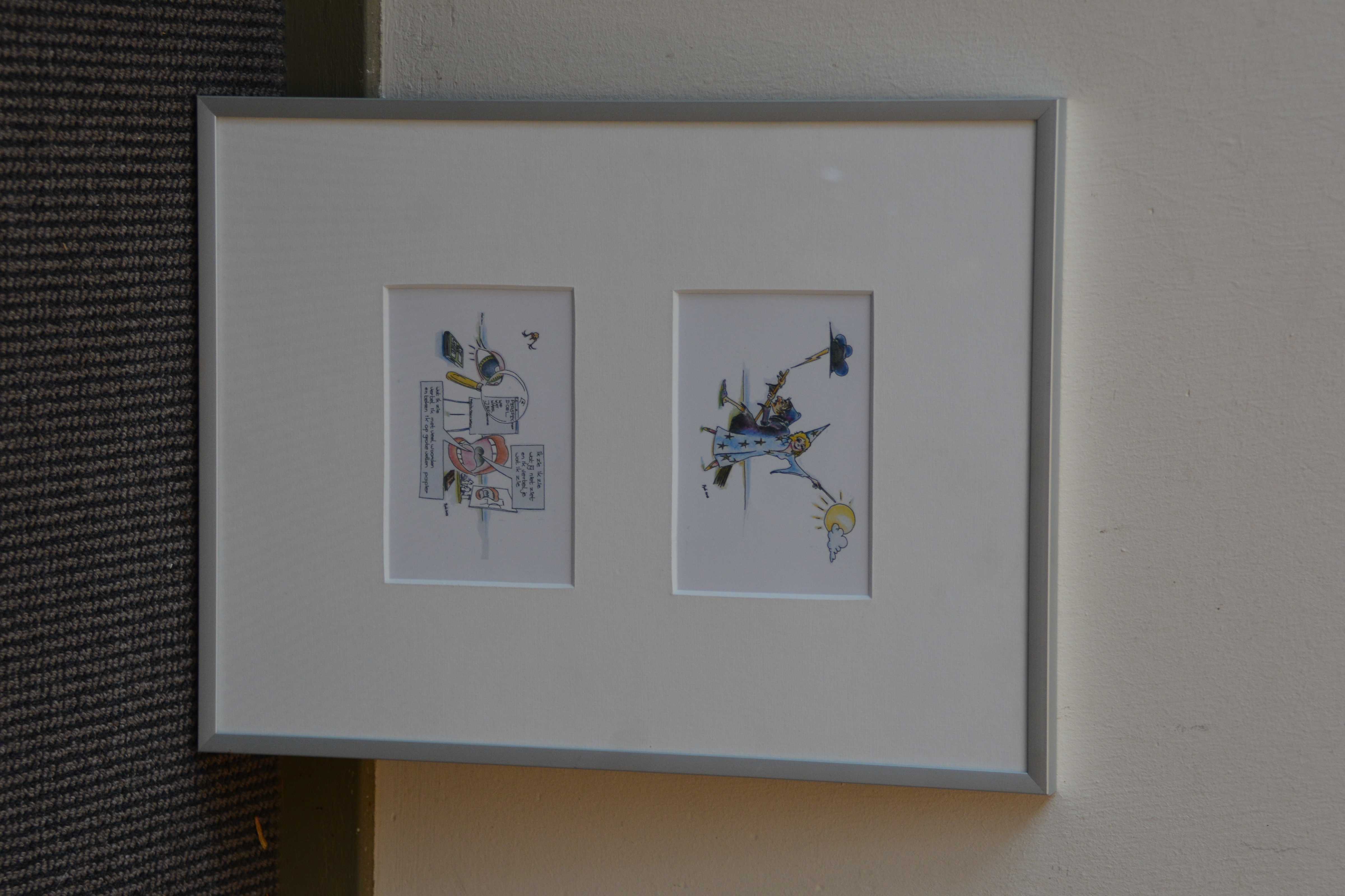 Ingekleurde pentekeningen van Rob '13: twee in één lijst.