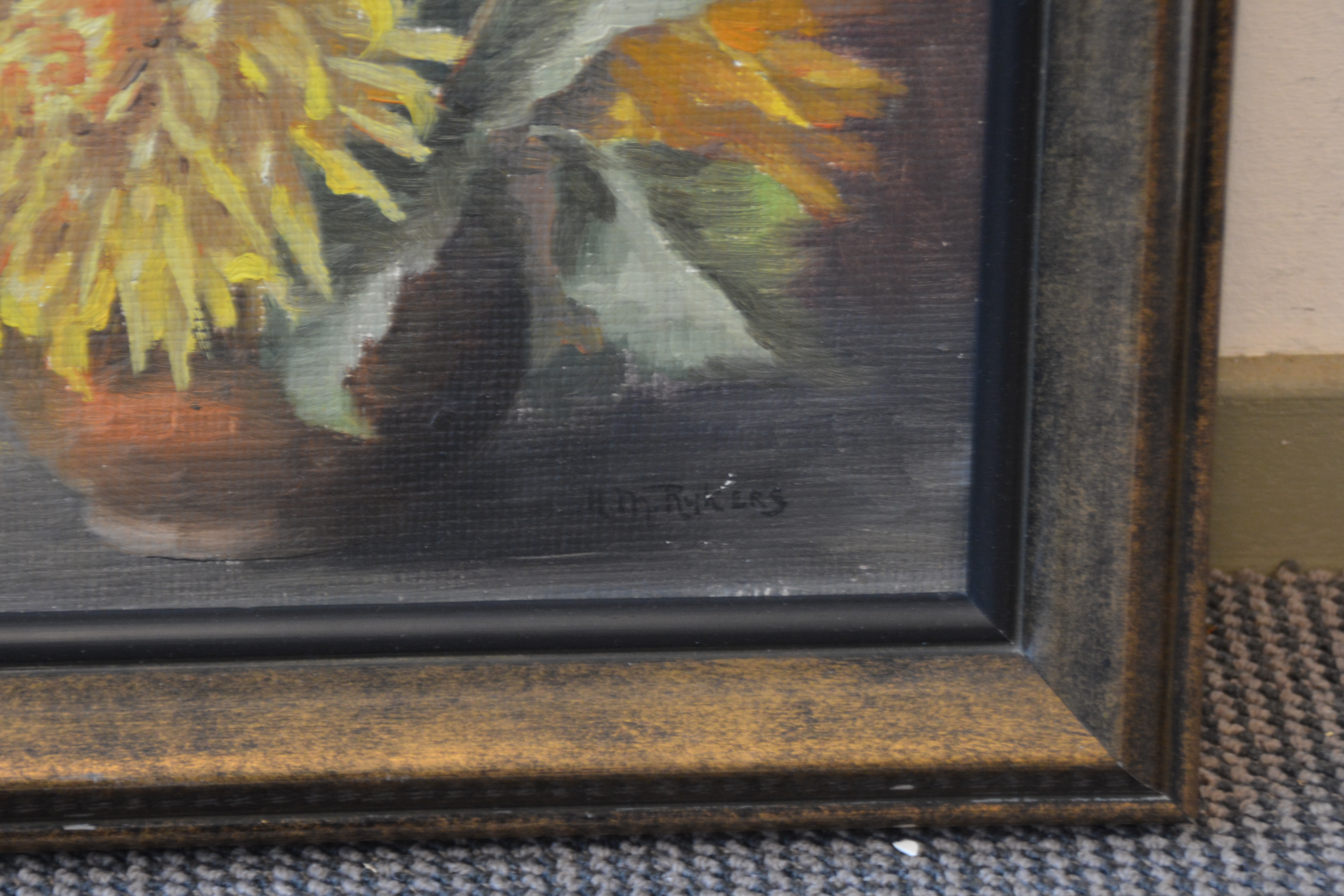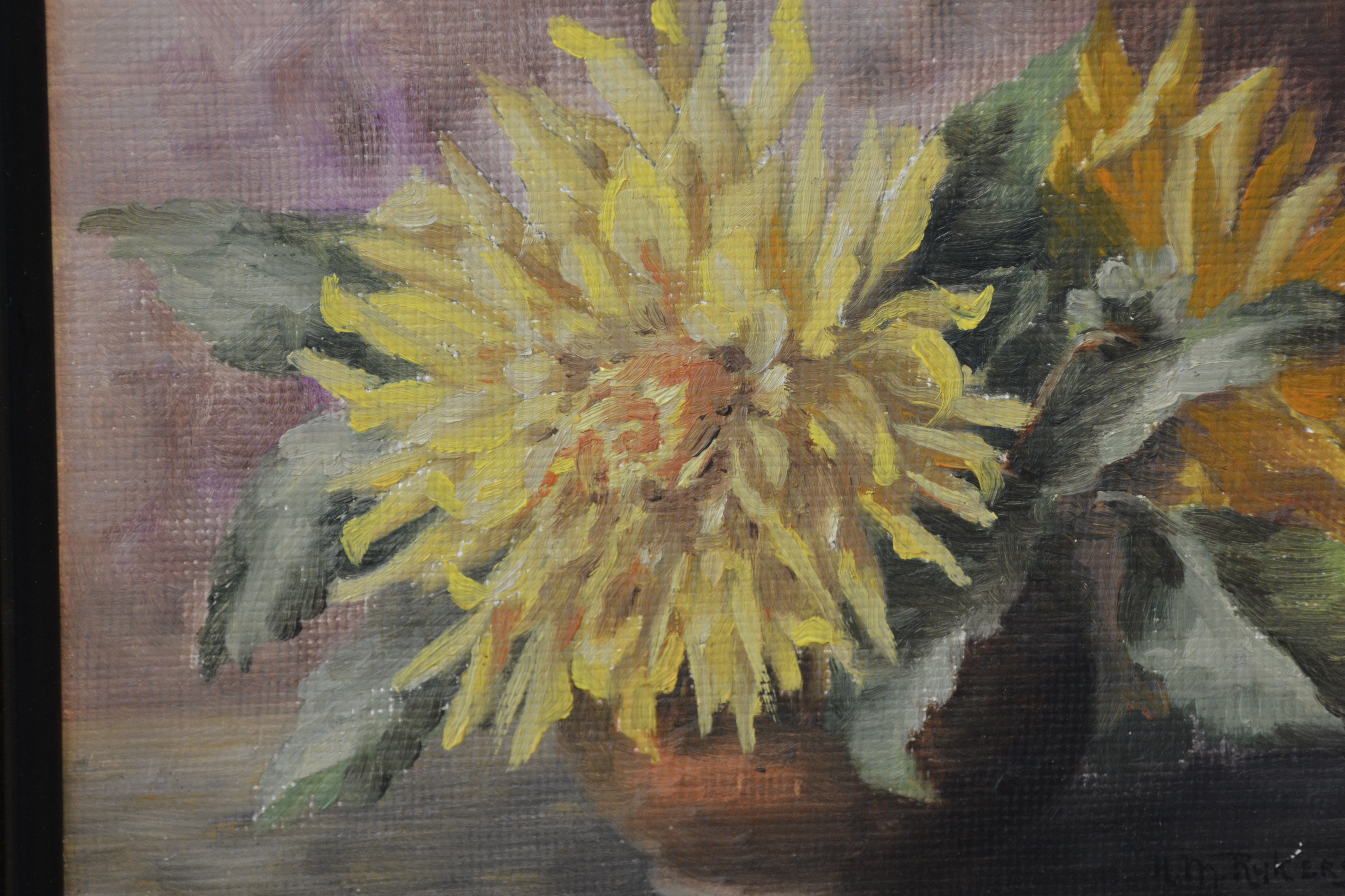 Ingelijst schilderij van H.Rijkers: Stilleven met Chrysanten