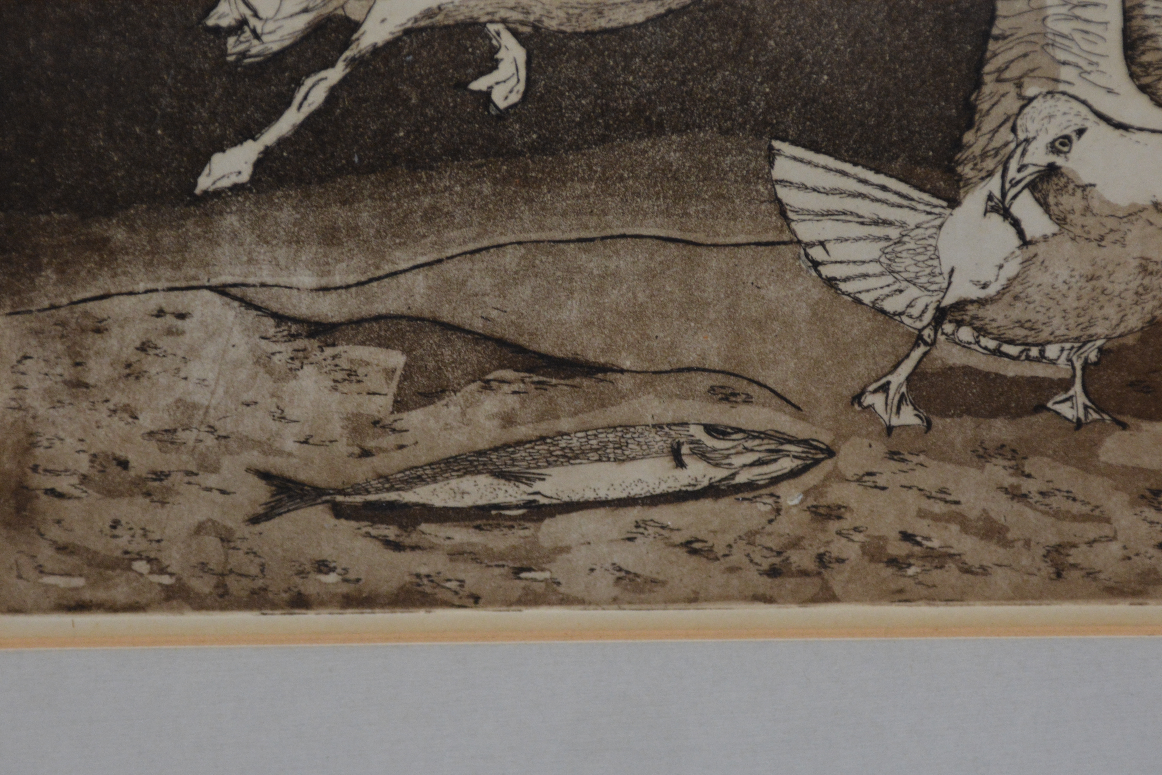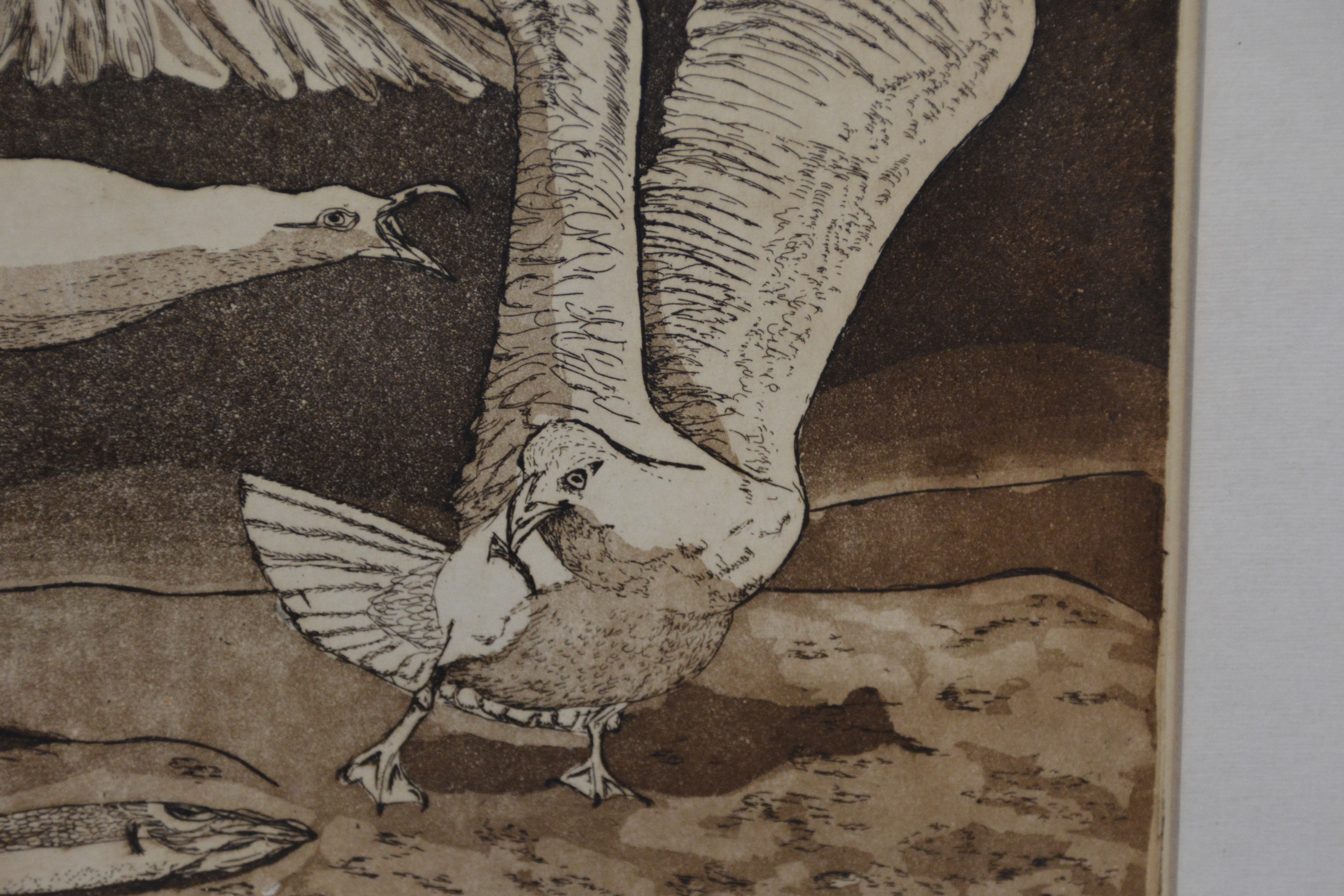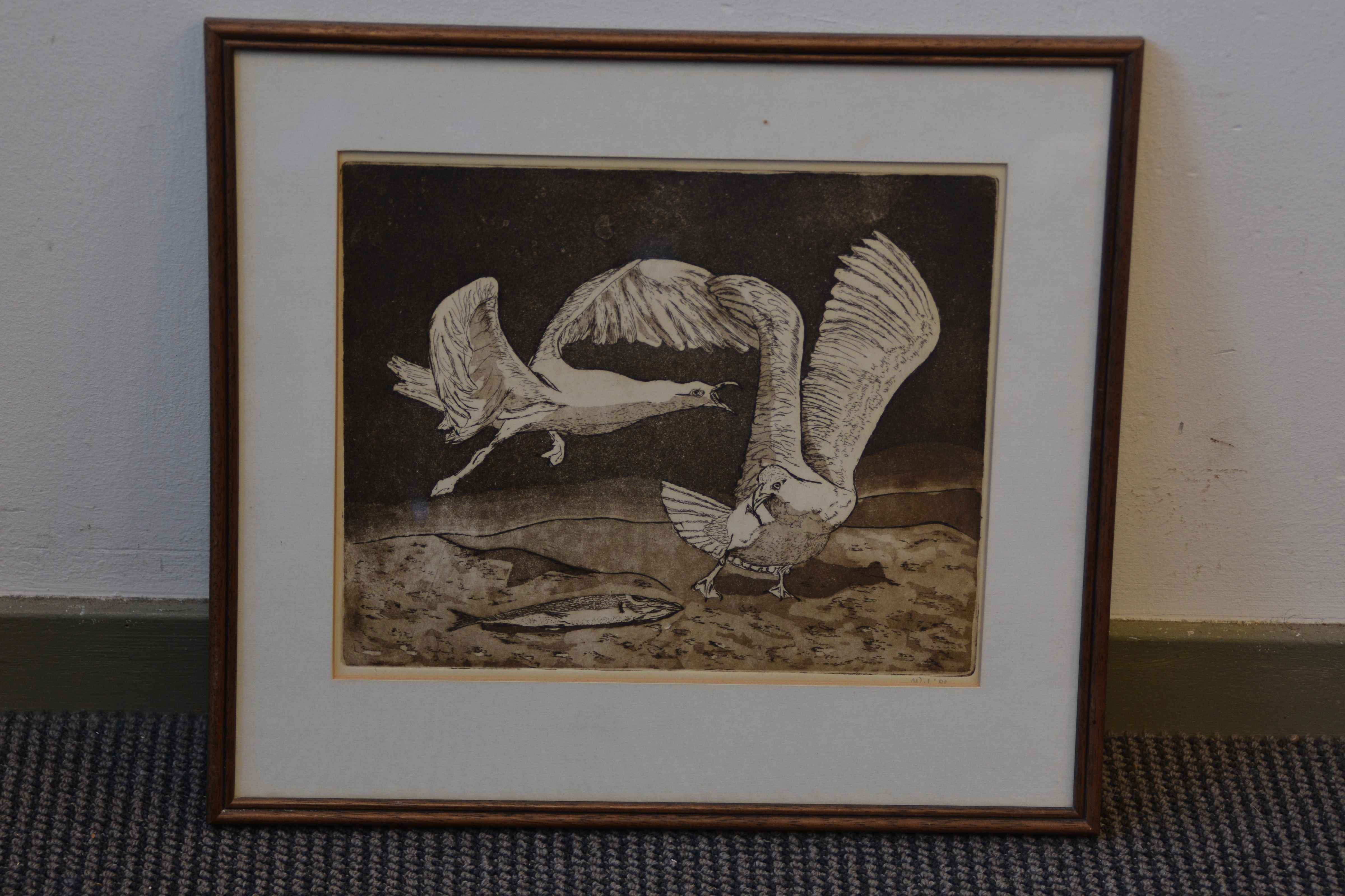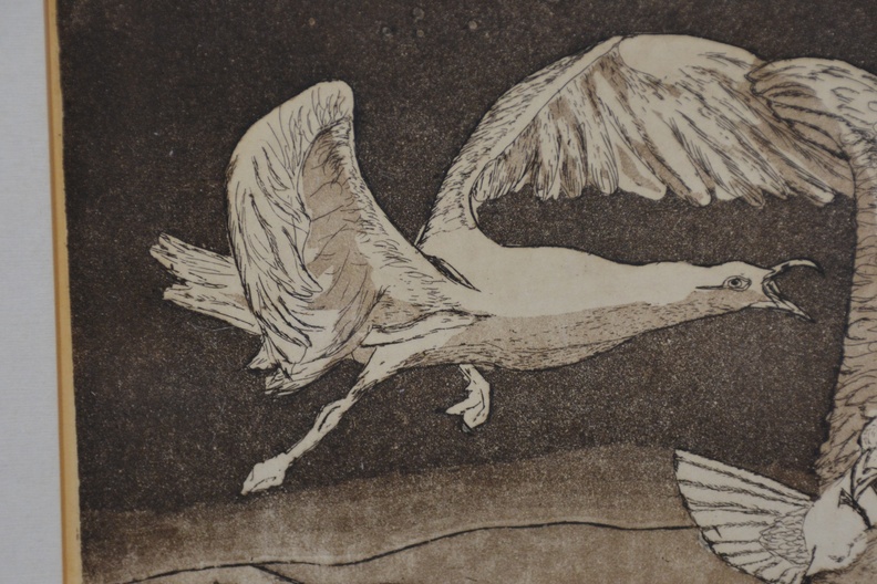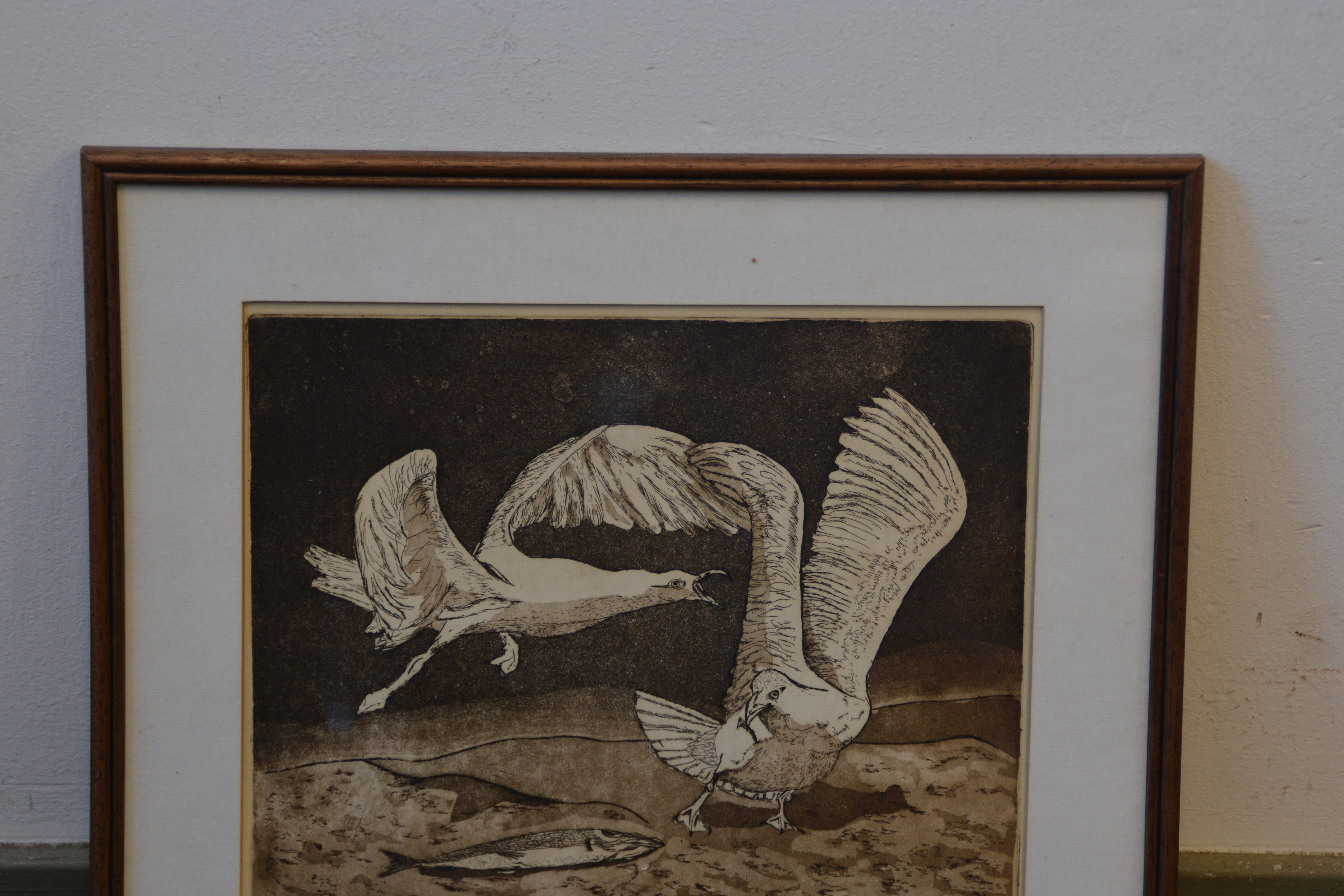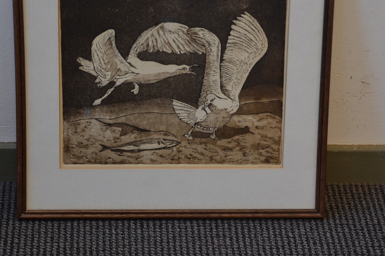 Ingelijste litho: Ruziende zeemeeuwen, door Wil '89.