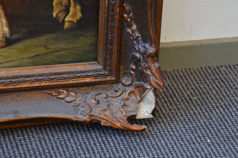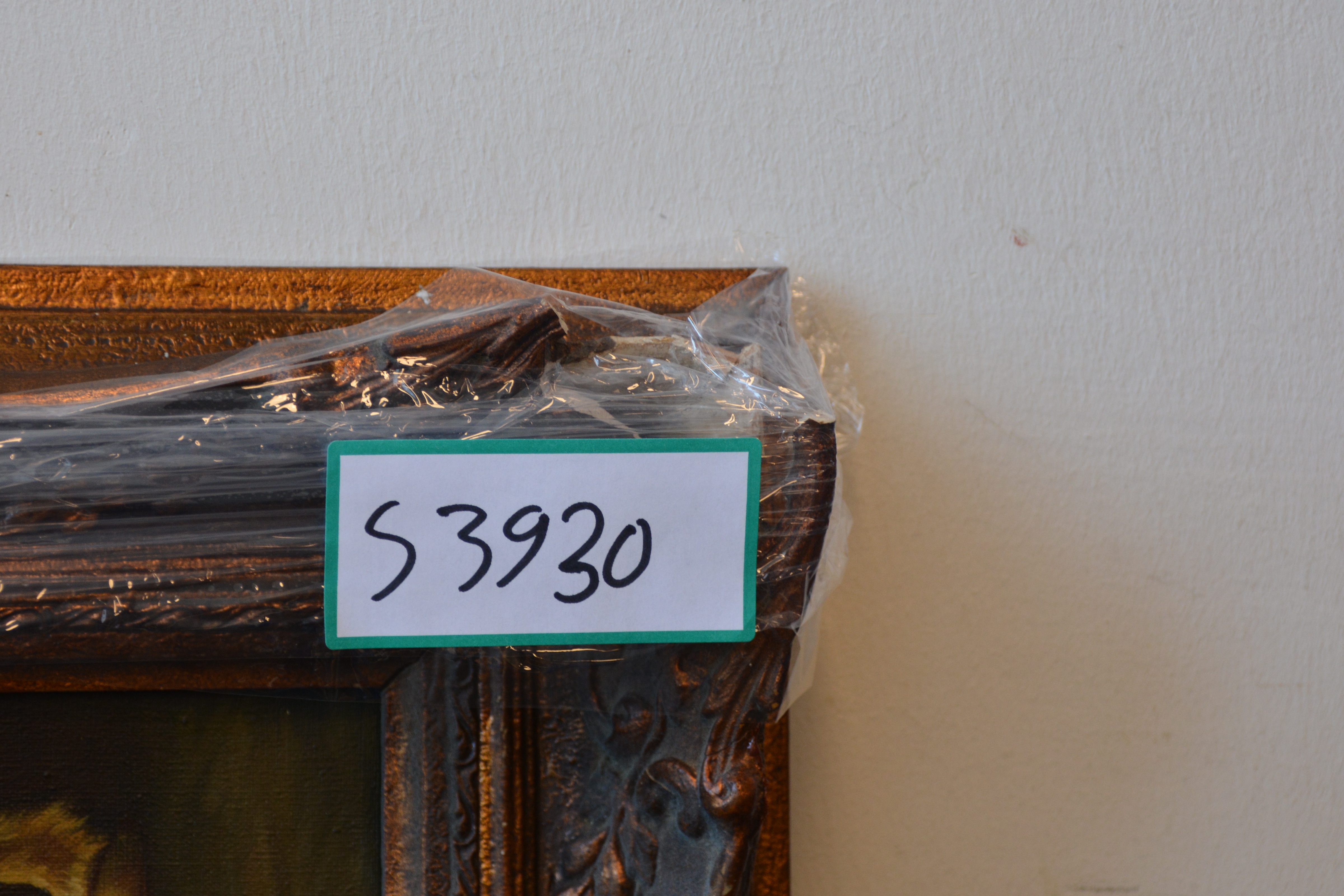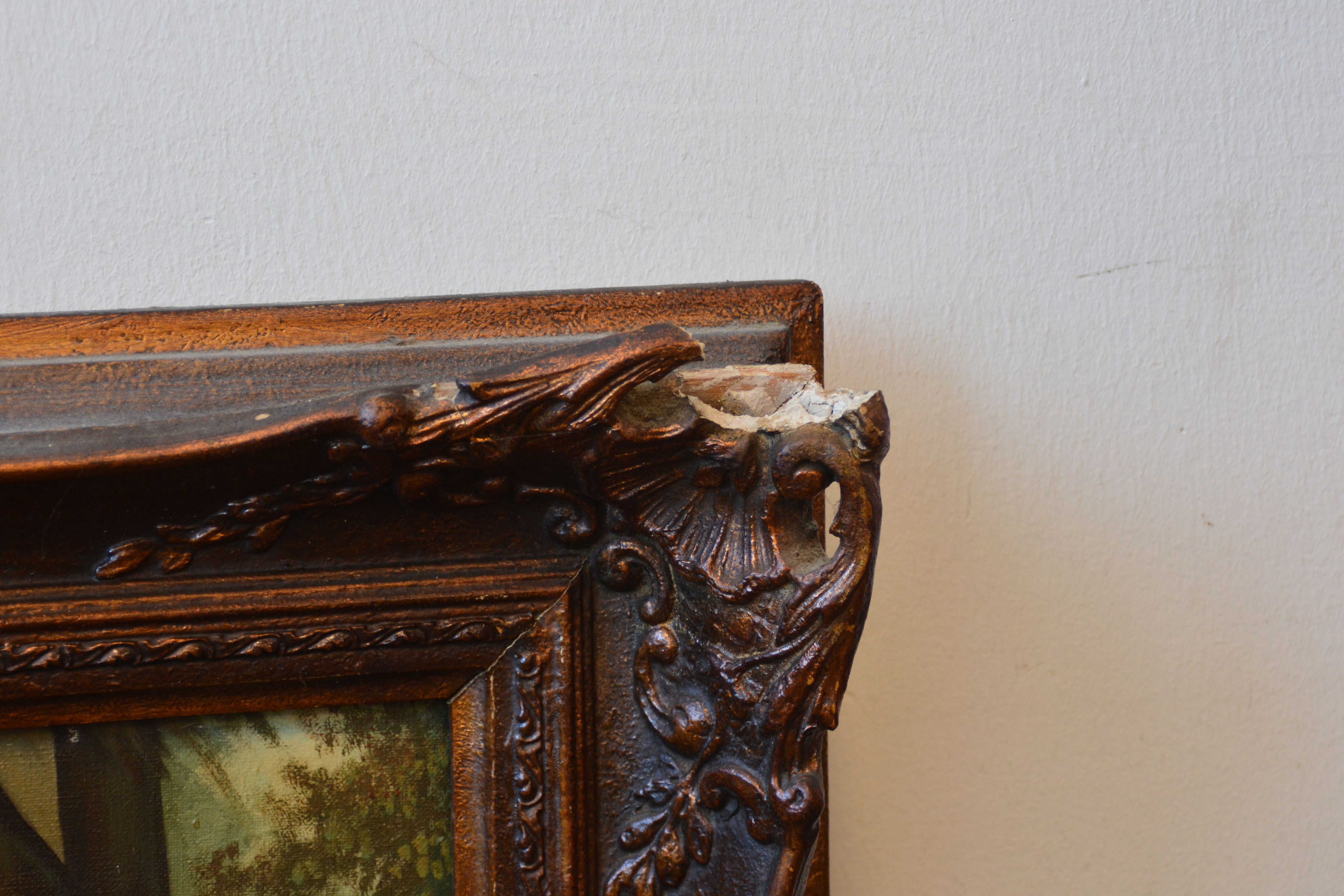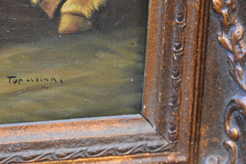 Lastig leesbaar gesigneerd. Top Saleinni??  Olieverf op doek. Lijst rechts boven flink beschadigd.