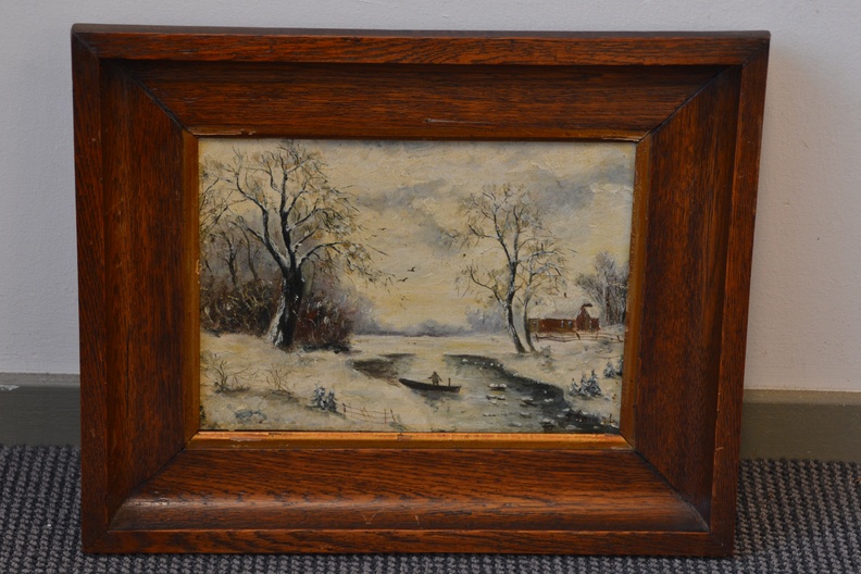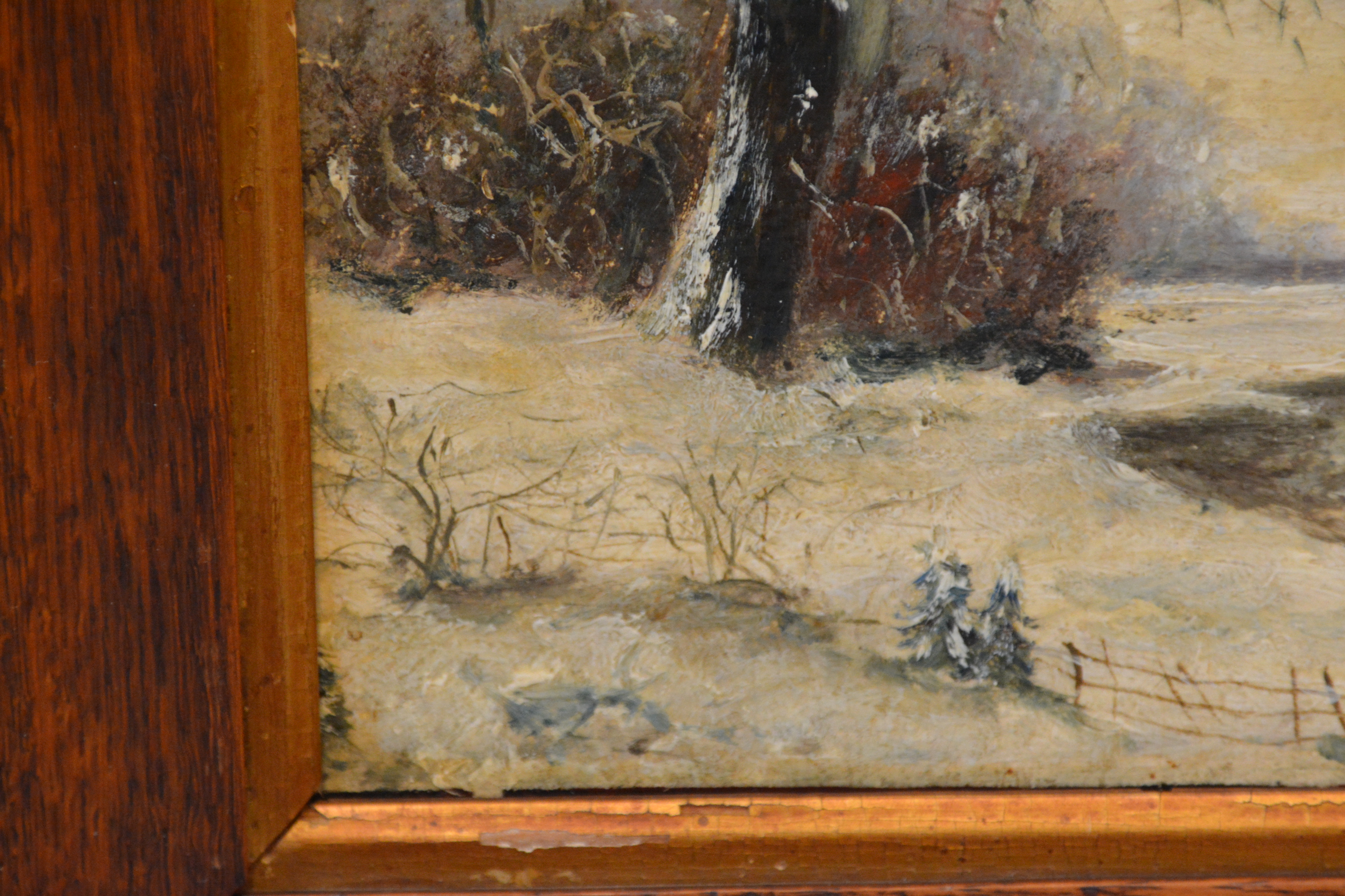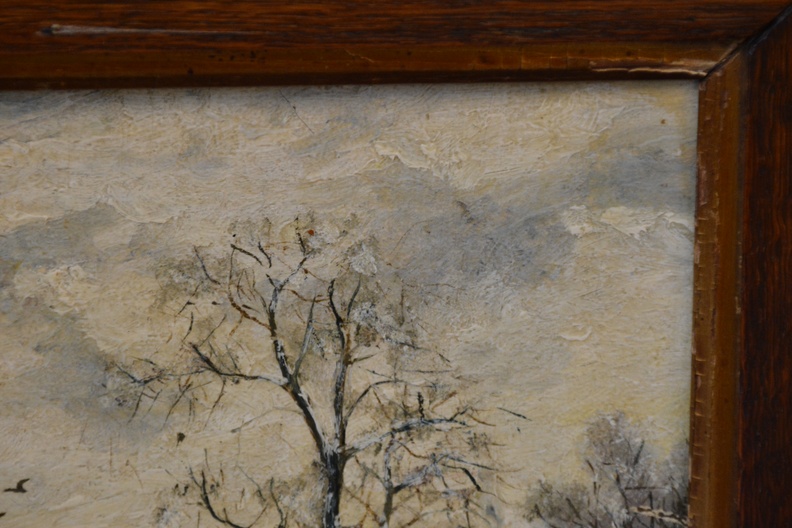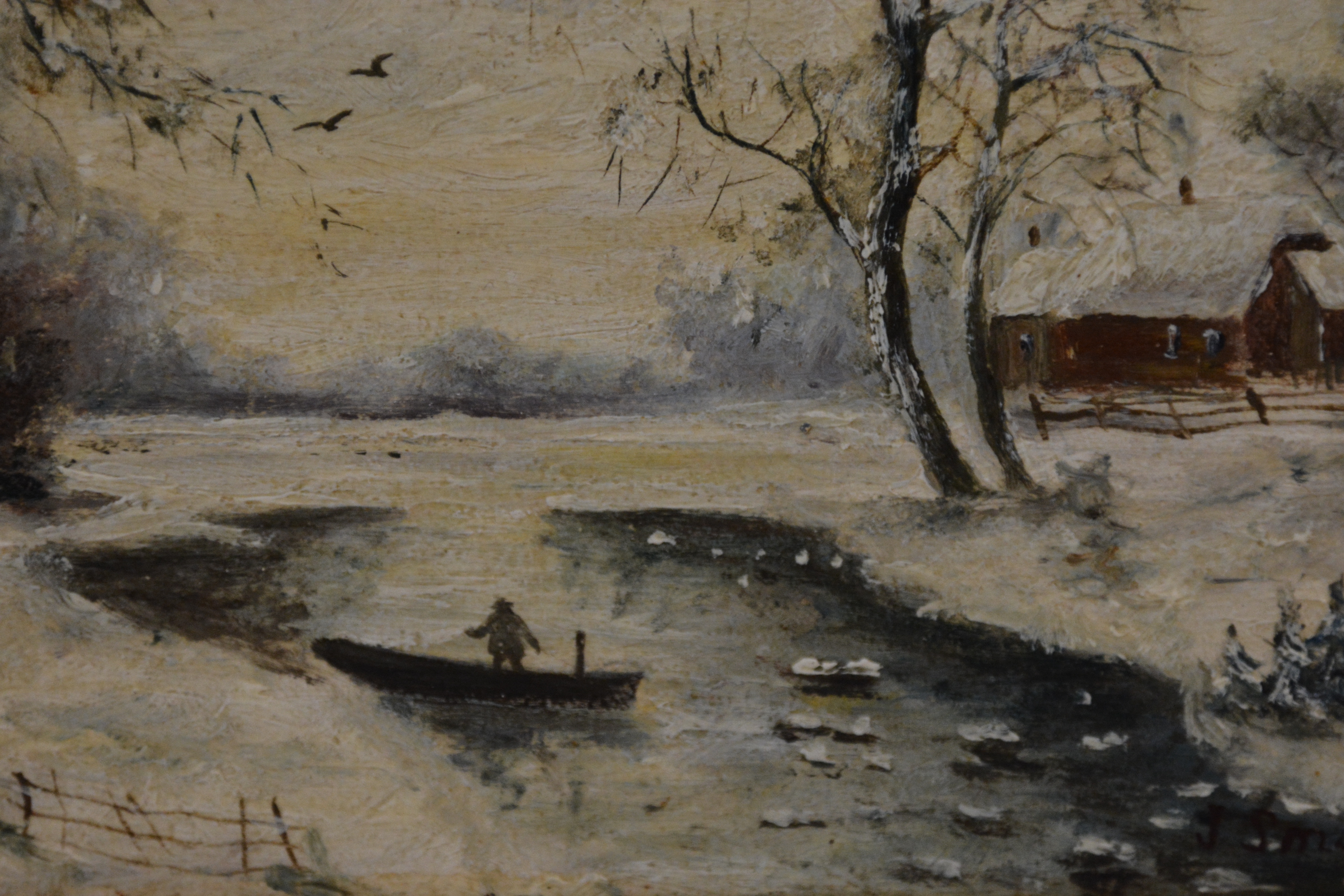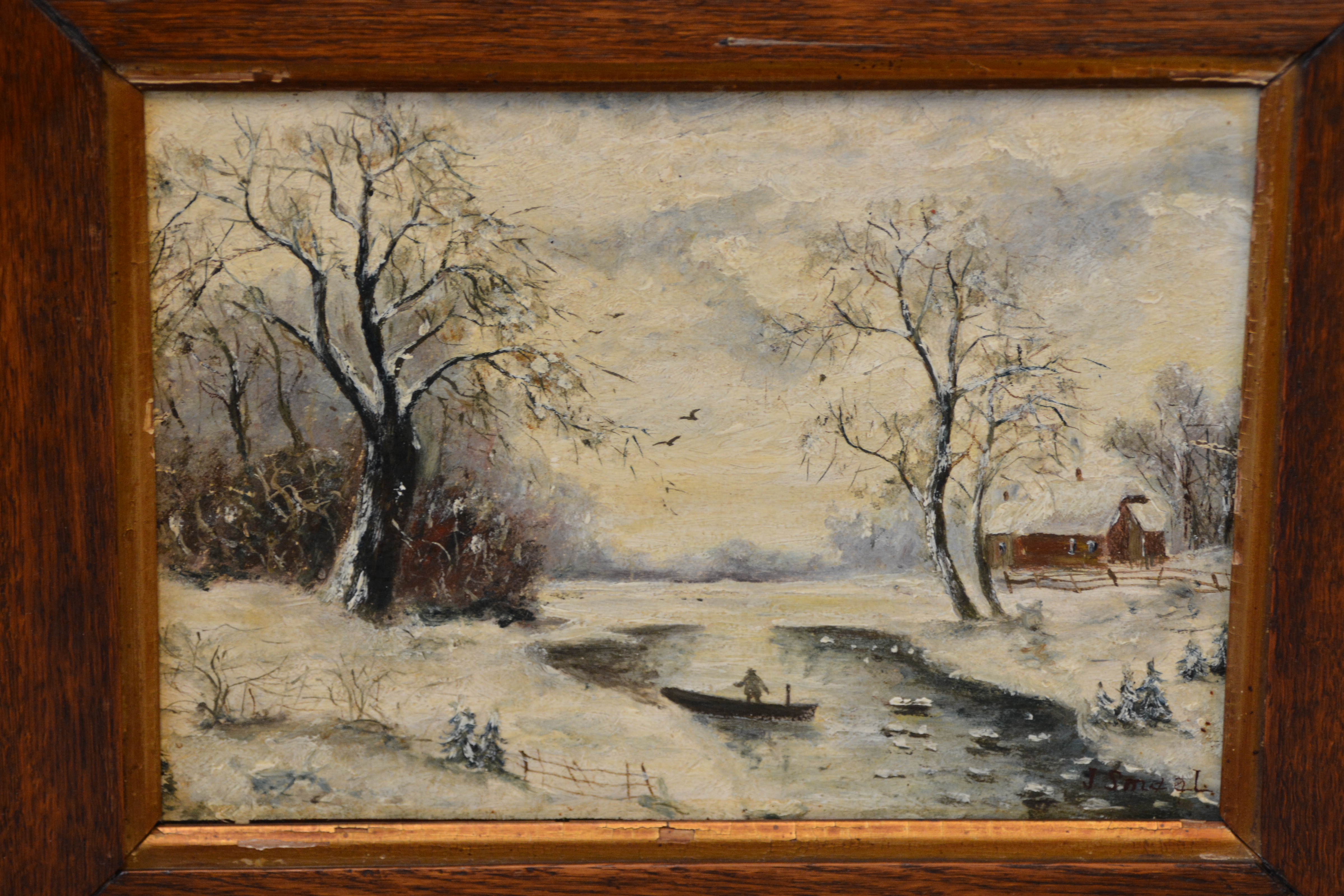 Ingelijst olieverfschilderij van J. Smaal: Winterlandschap.