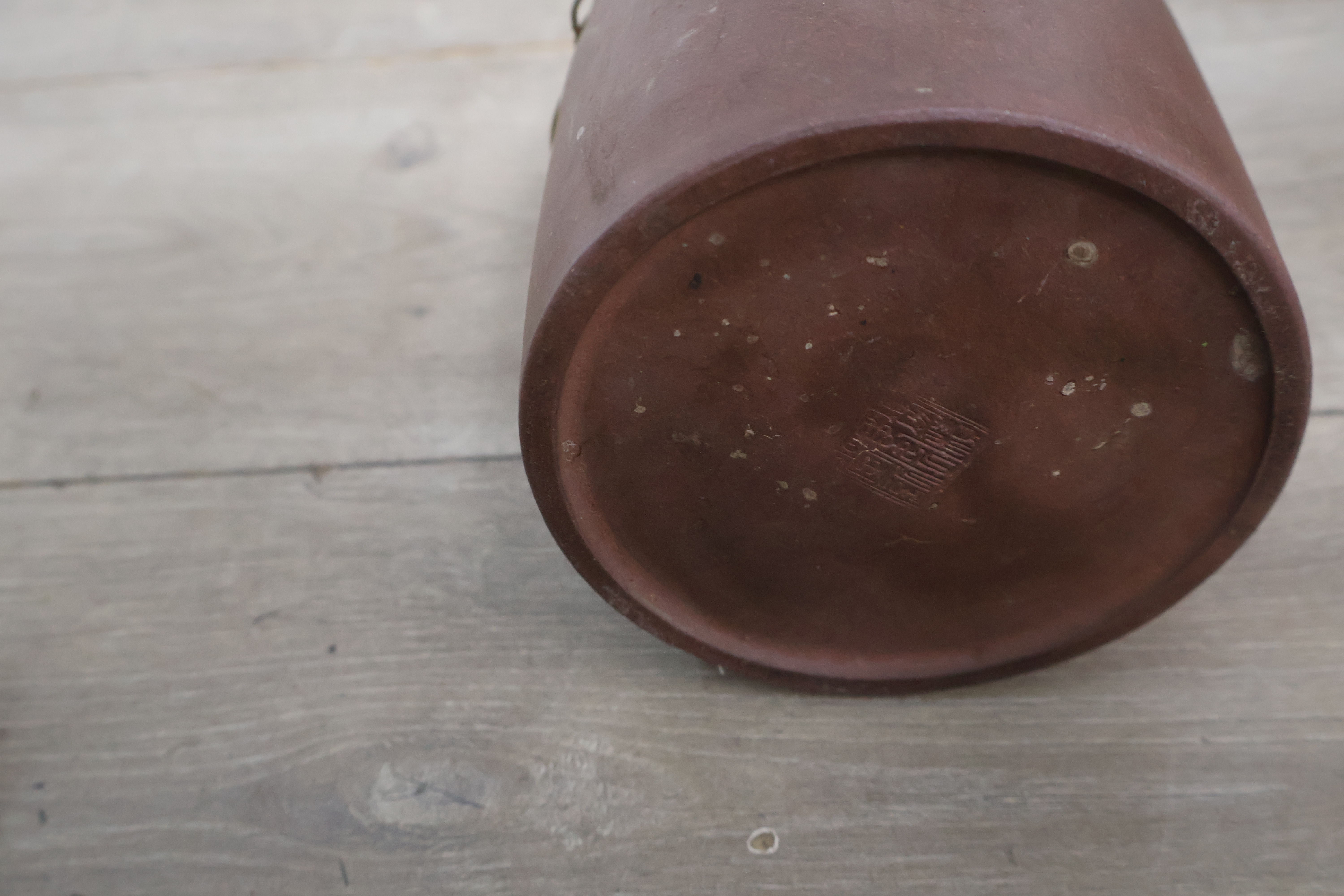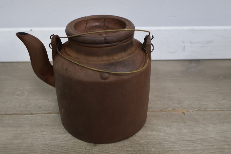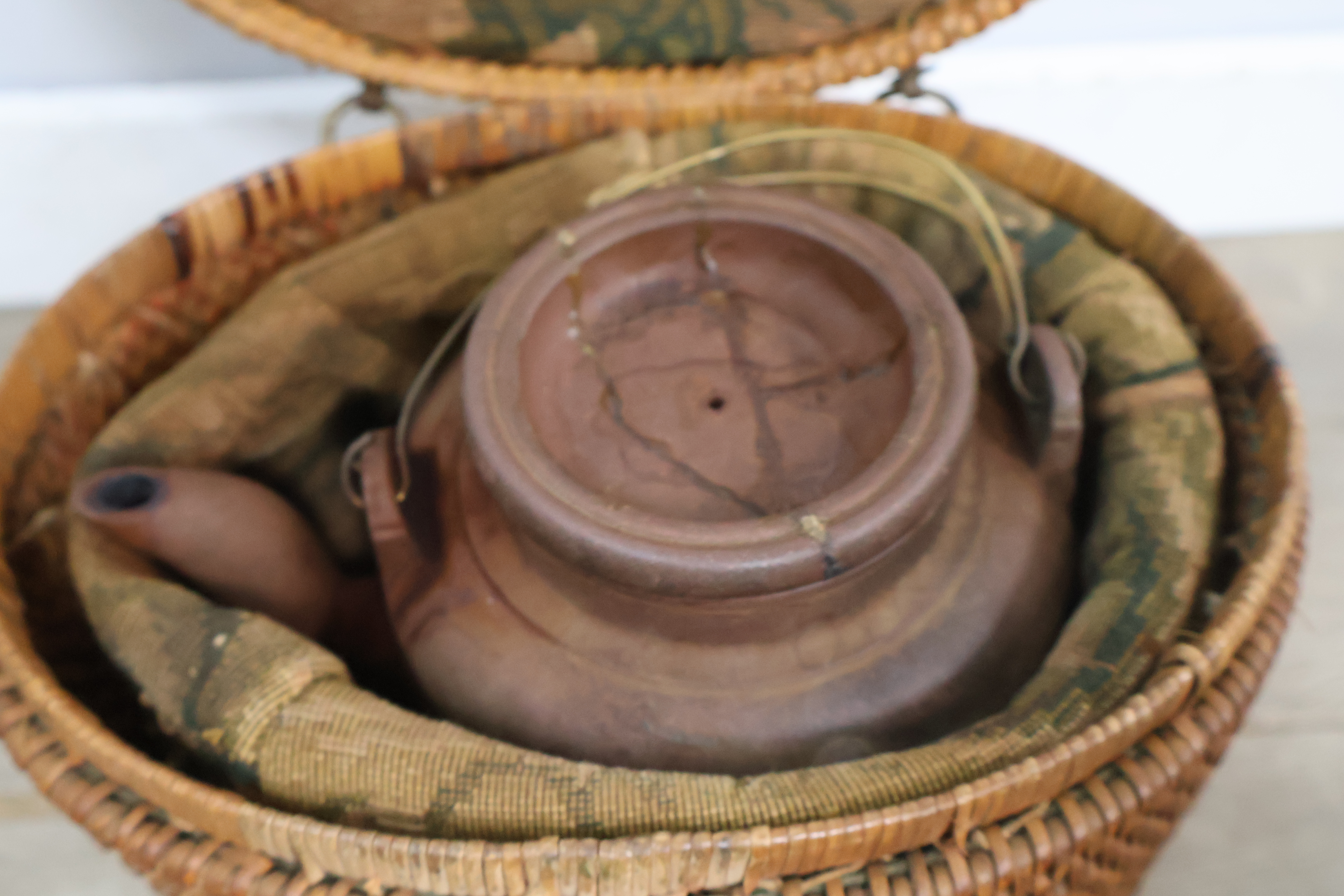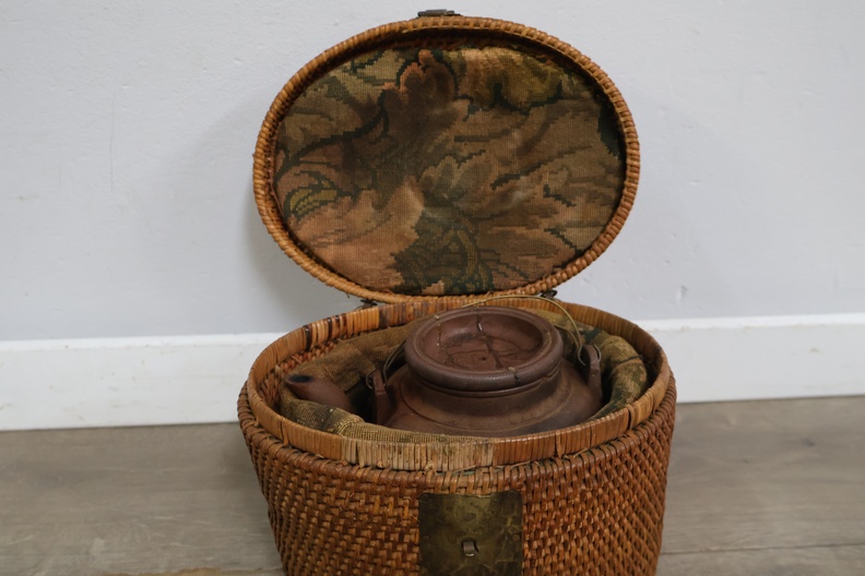 Vintage Yixing-theepot met een rieten mand