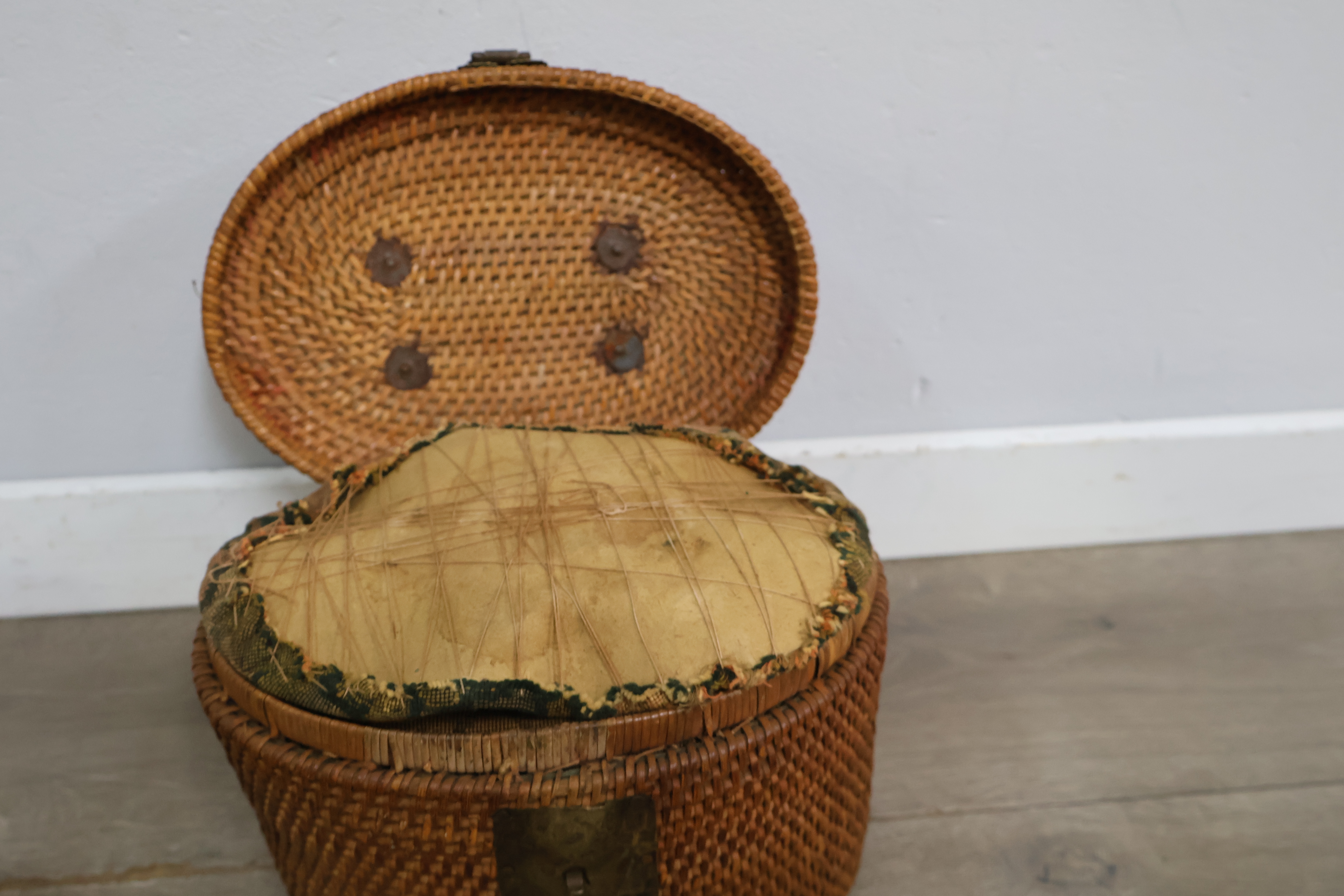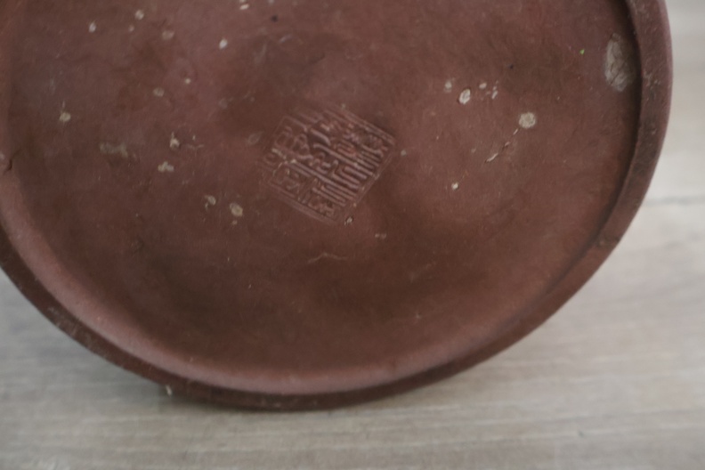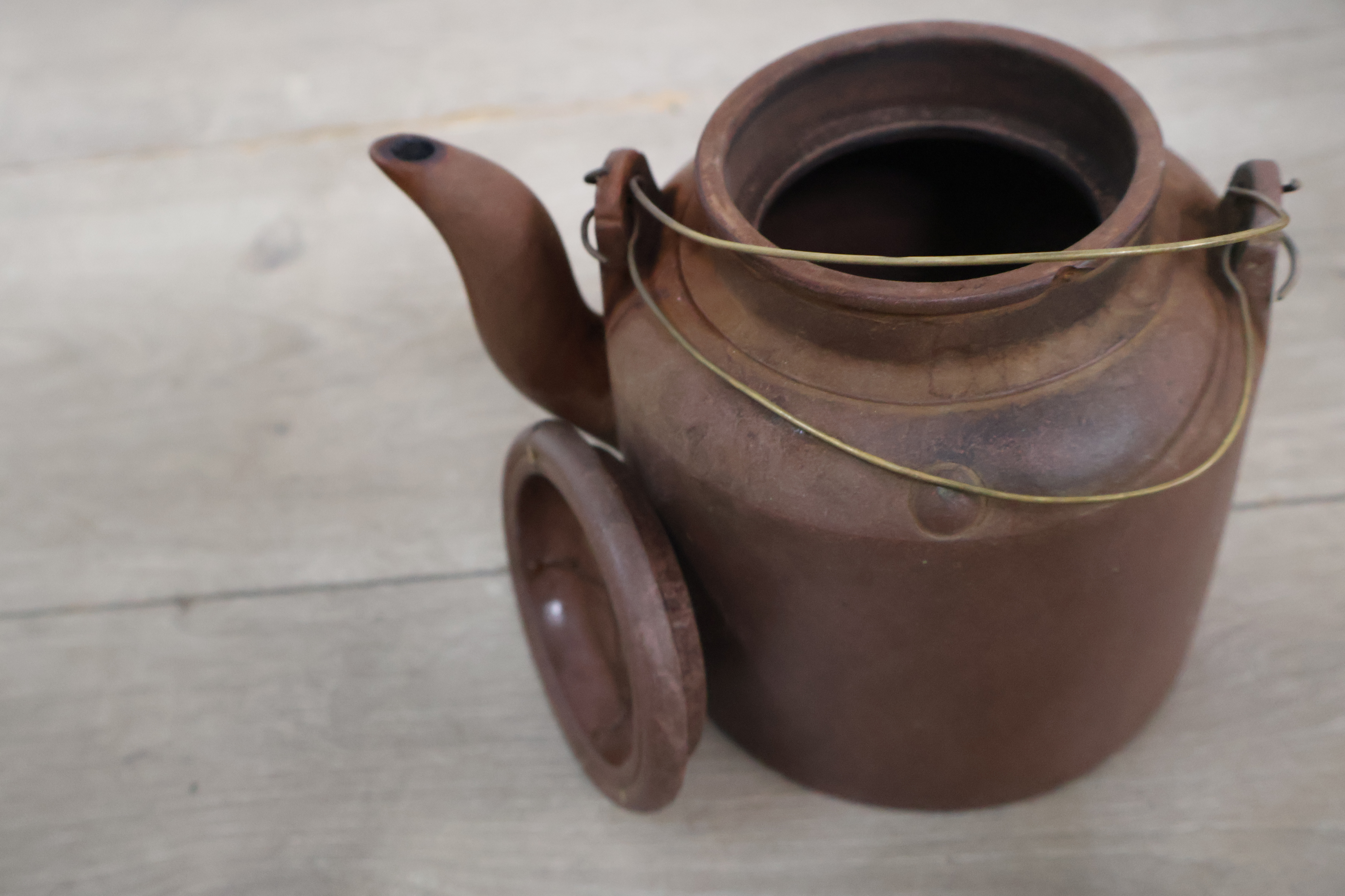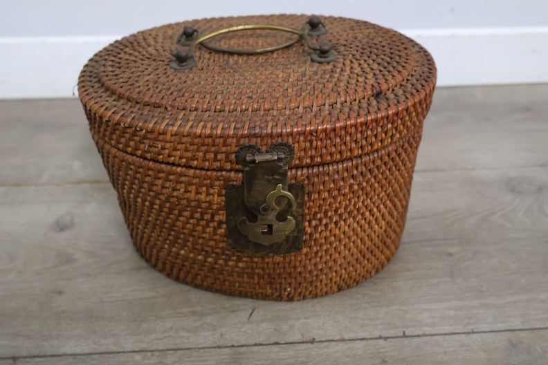 Vintage Yixing-theepot met een rieten mand