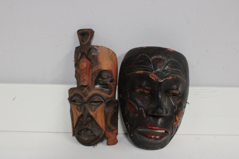 Set van 2 Gekleurde Houten Afrikaanse Maskers